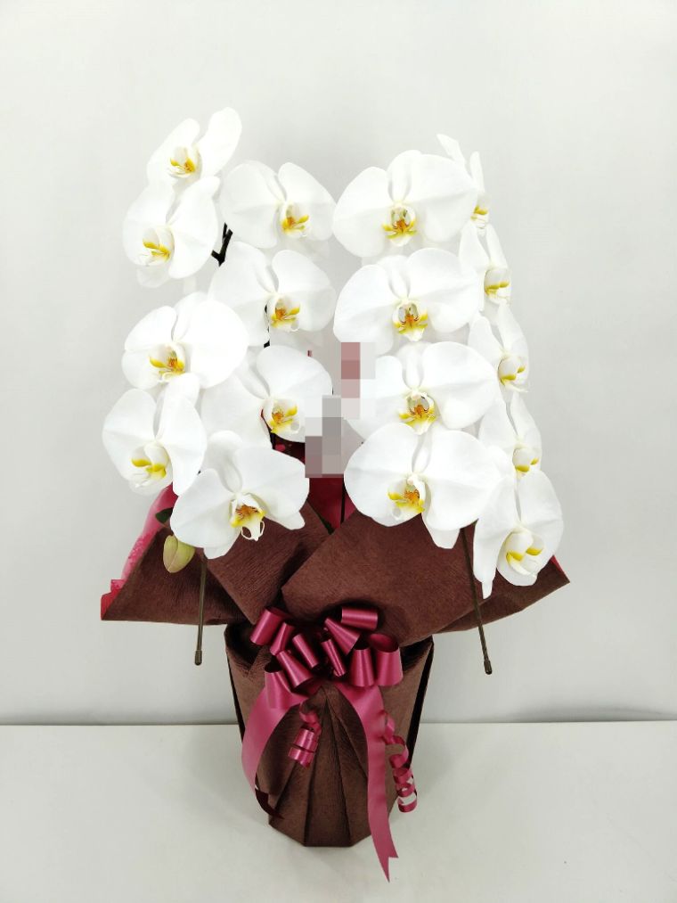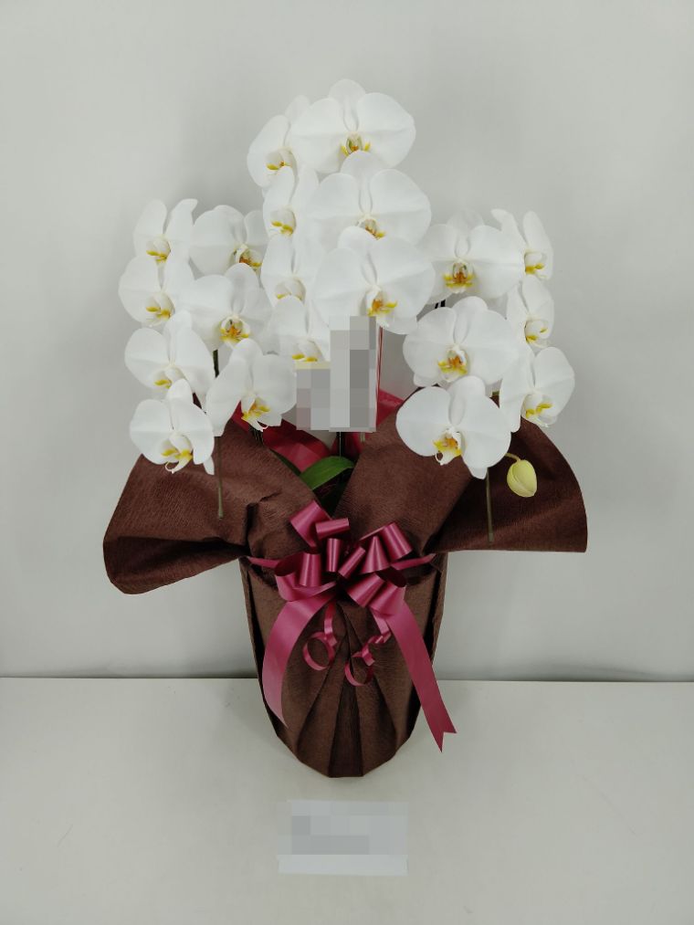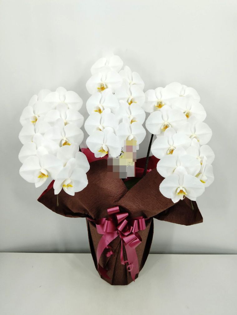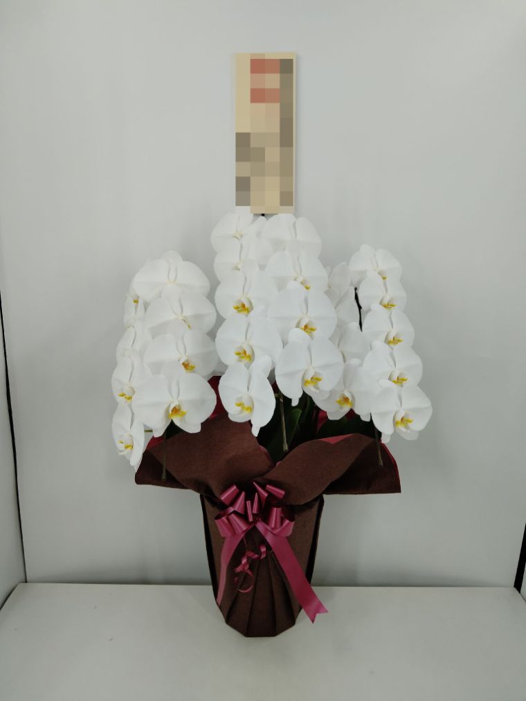 胡蝶蘭の実際にお届けした写真です。花秘書では発送前に写真をメールで送信致しますので安心して大切な顧客や取引様へのギフトにご利用頂けます。