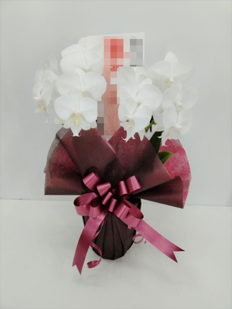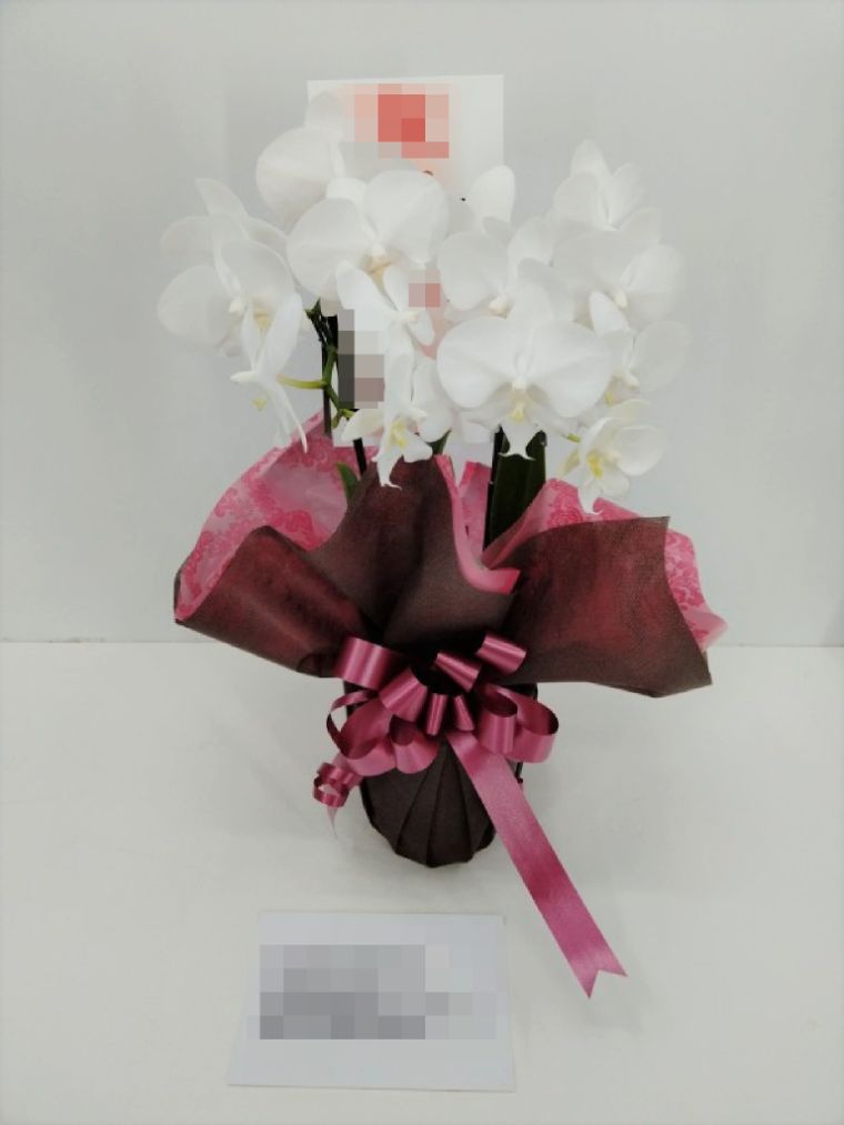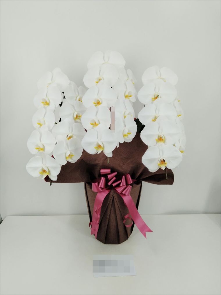 胡蝶蘭の実際にお届けした写真です。花秘書では発送前に写真をメールで送信致しますので安心して大切な顧客や取引様へのギフトにご利用頂けます。
