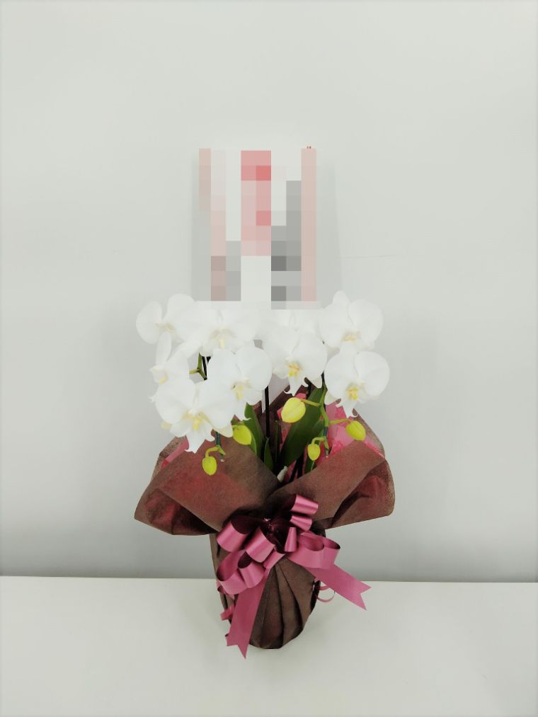 胡蝶蘭の実際にお届けした写真です。花秘書では発送前に写真をメールで送信致しますので安心して大切な顧客や取引様へのギフトにご利用頂けます。
