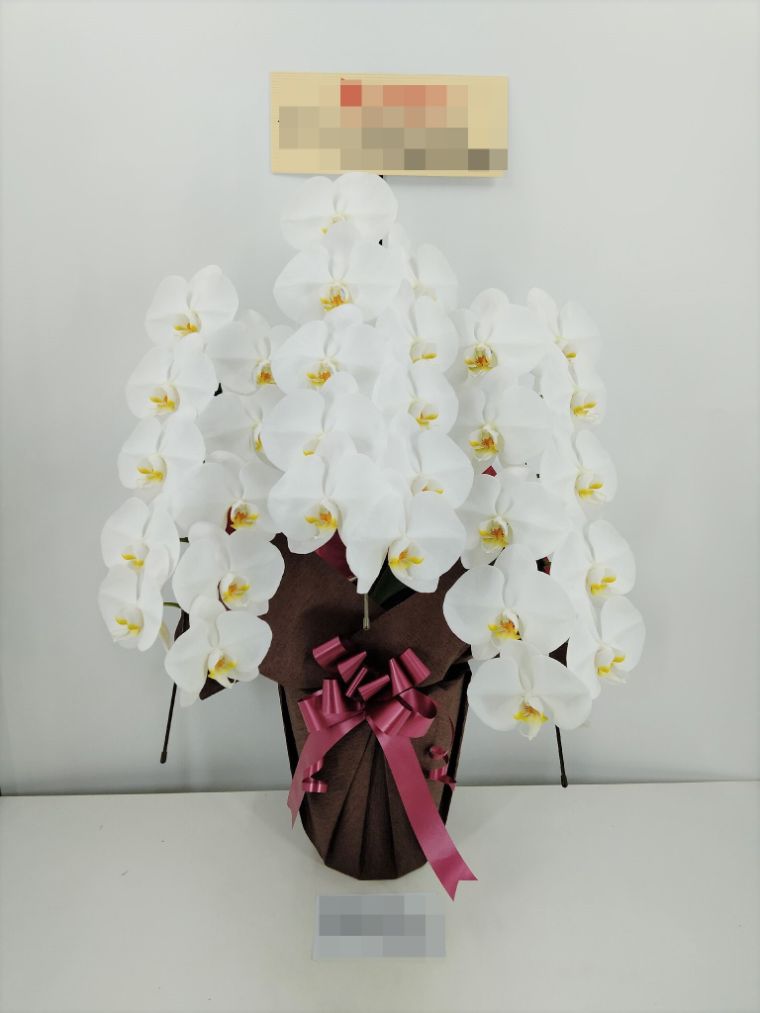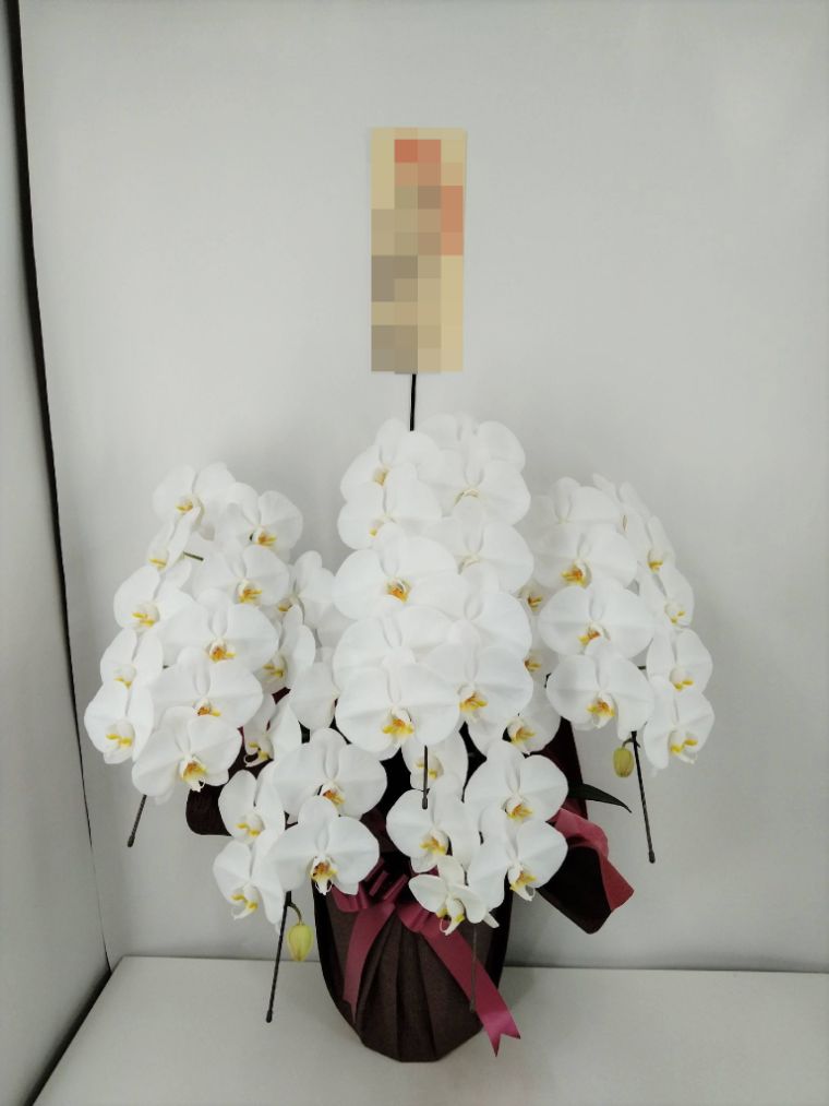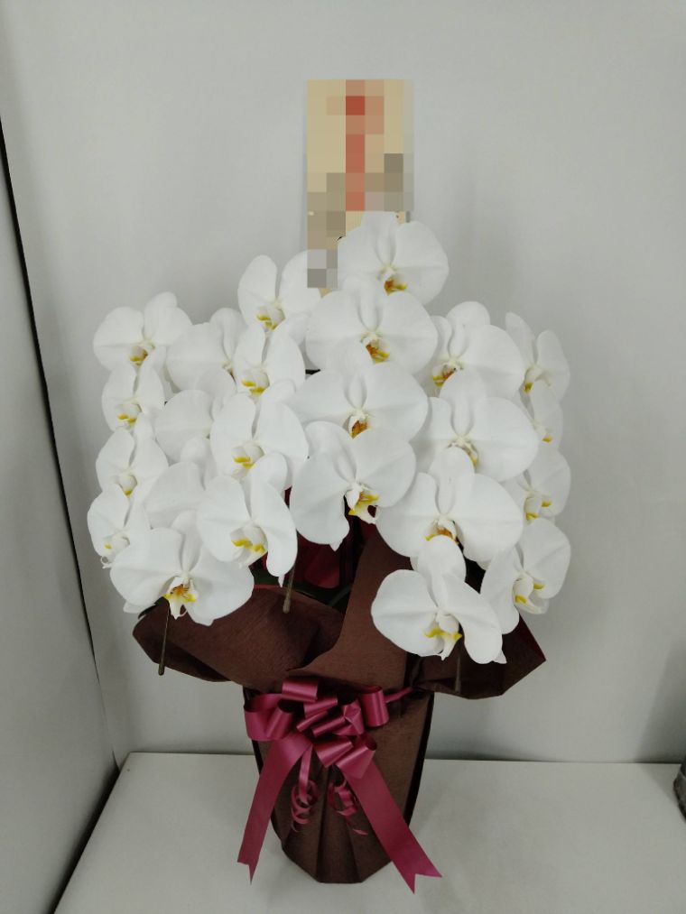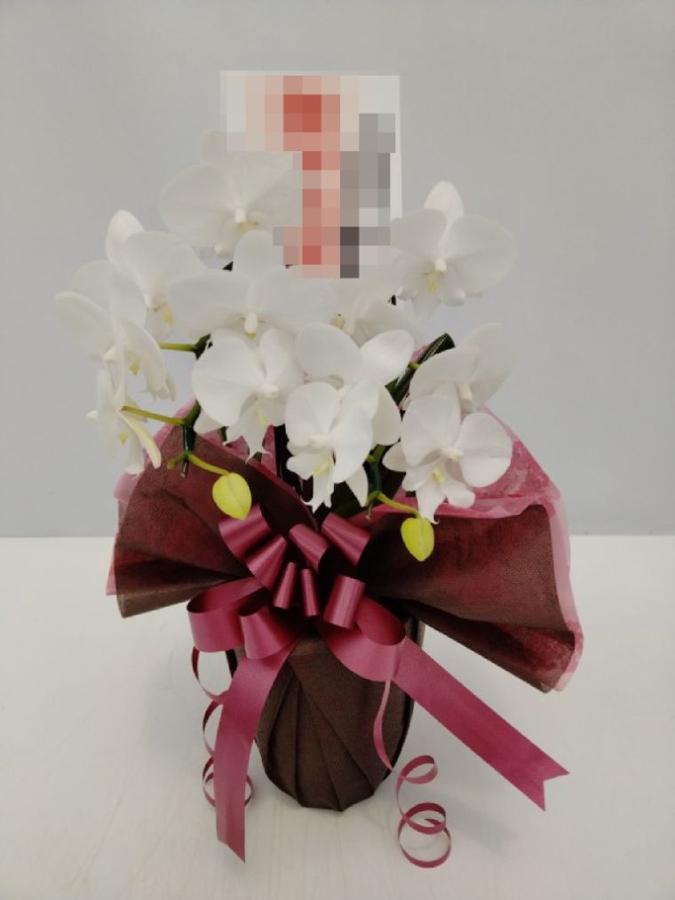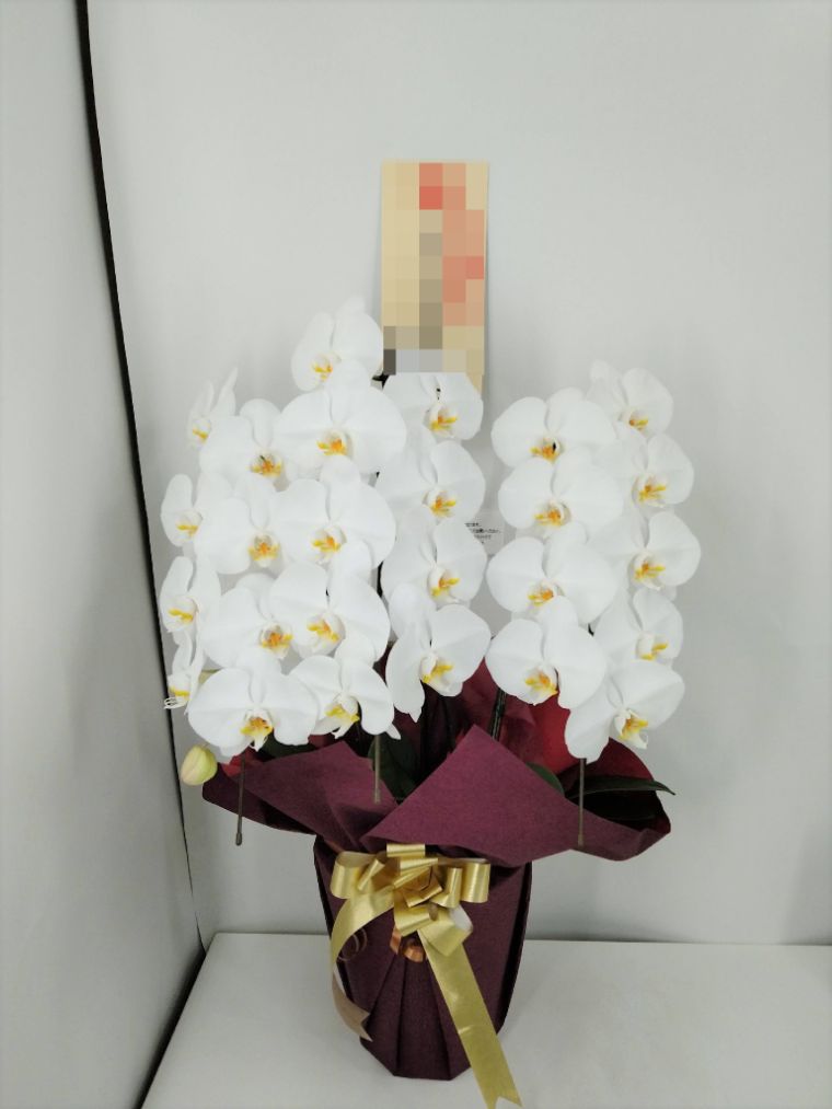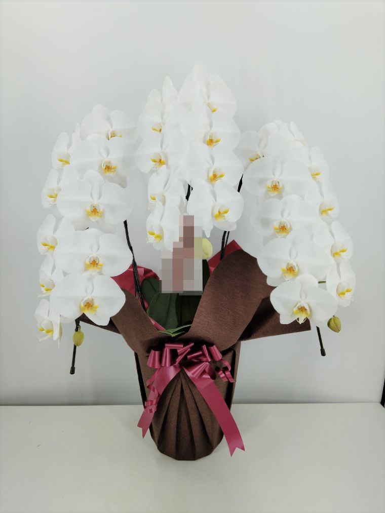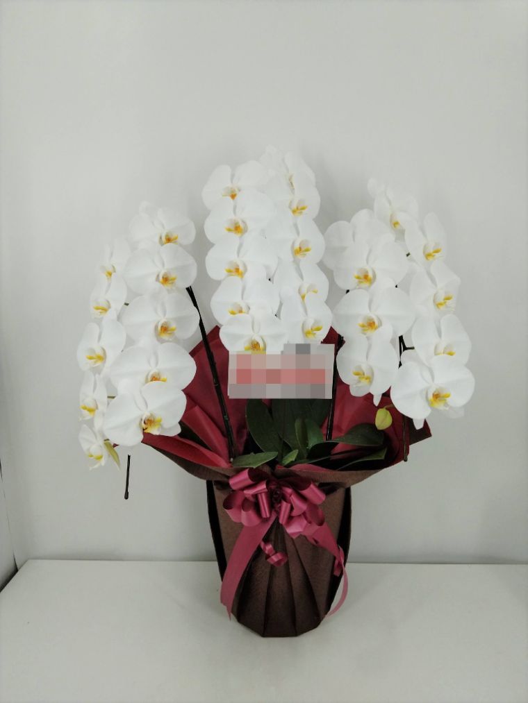 胡蝶蘭の実際にお届けした写真です。花秘書では発送前に写真をメールで送信致しますので安心して大切な顧客や取引様へのギフトにご利用頂けます。