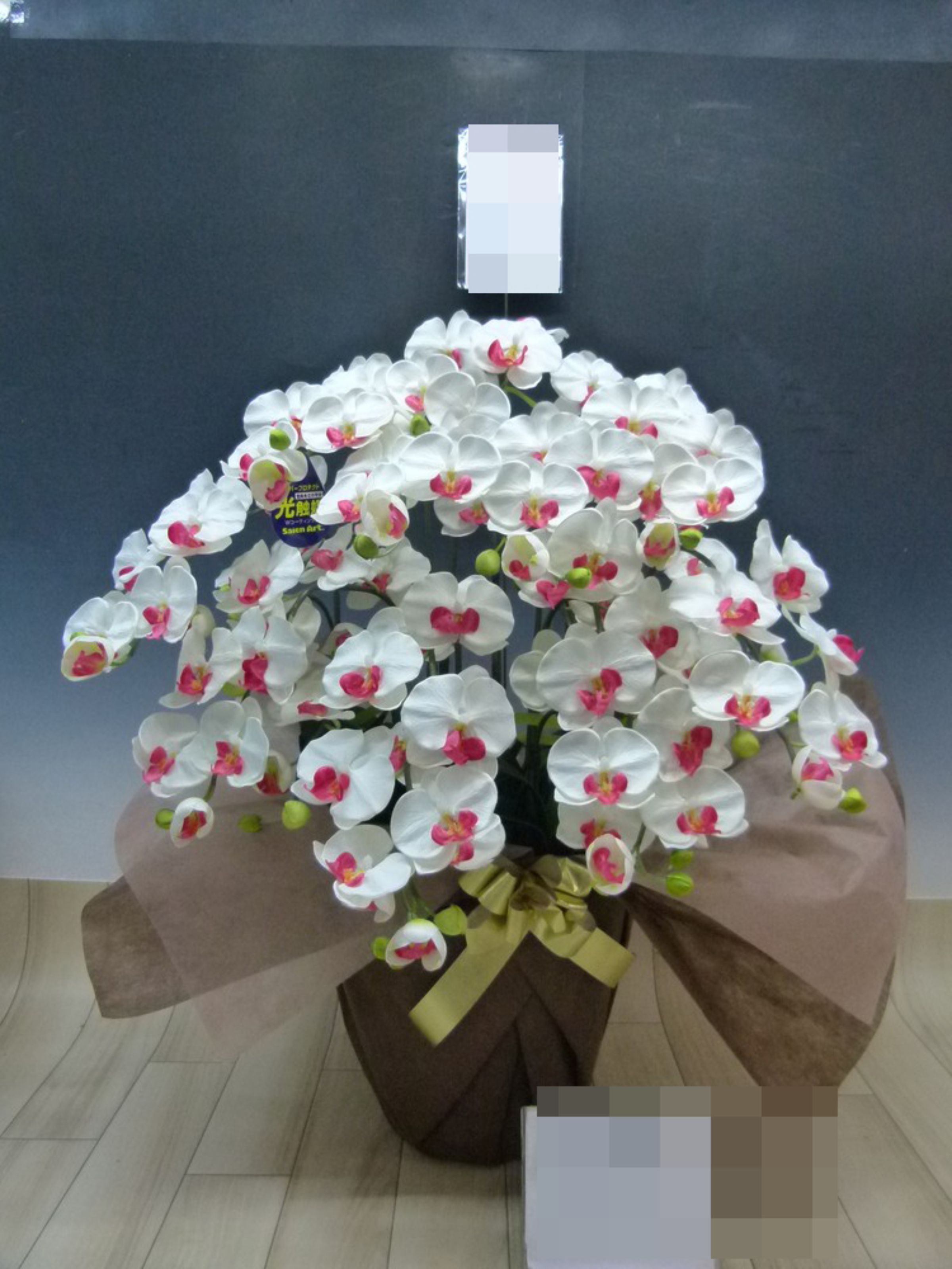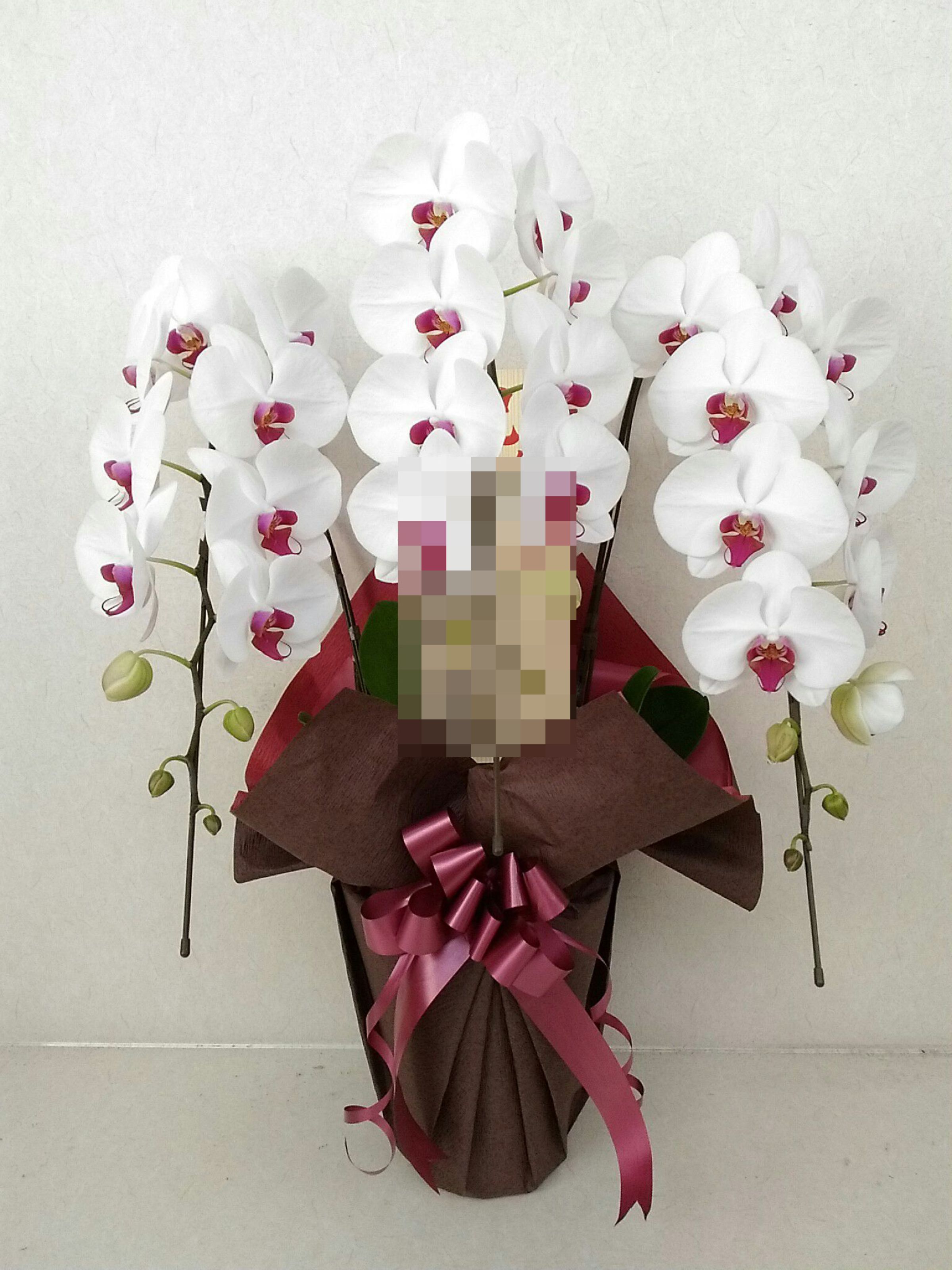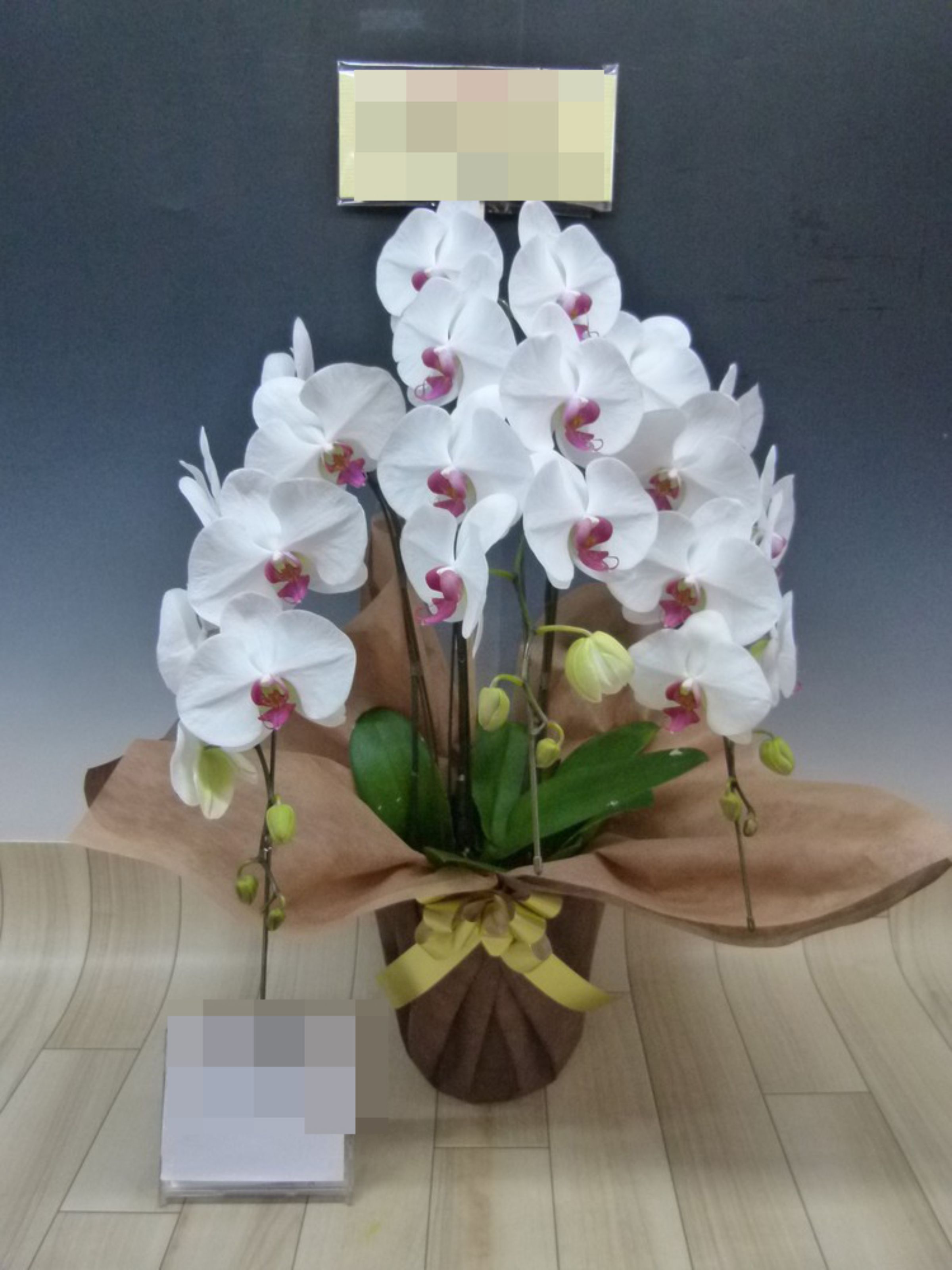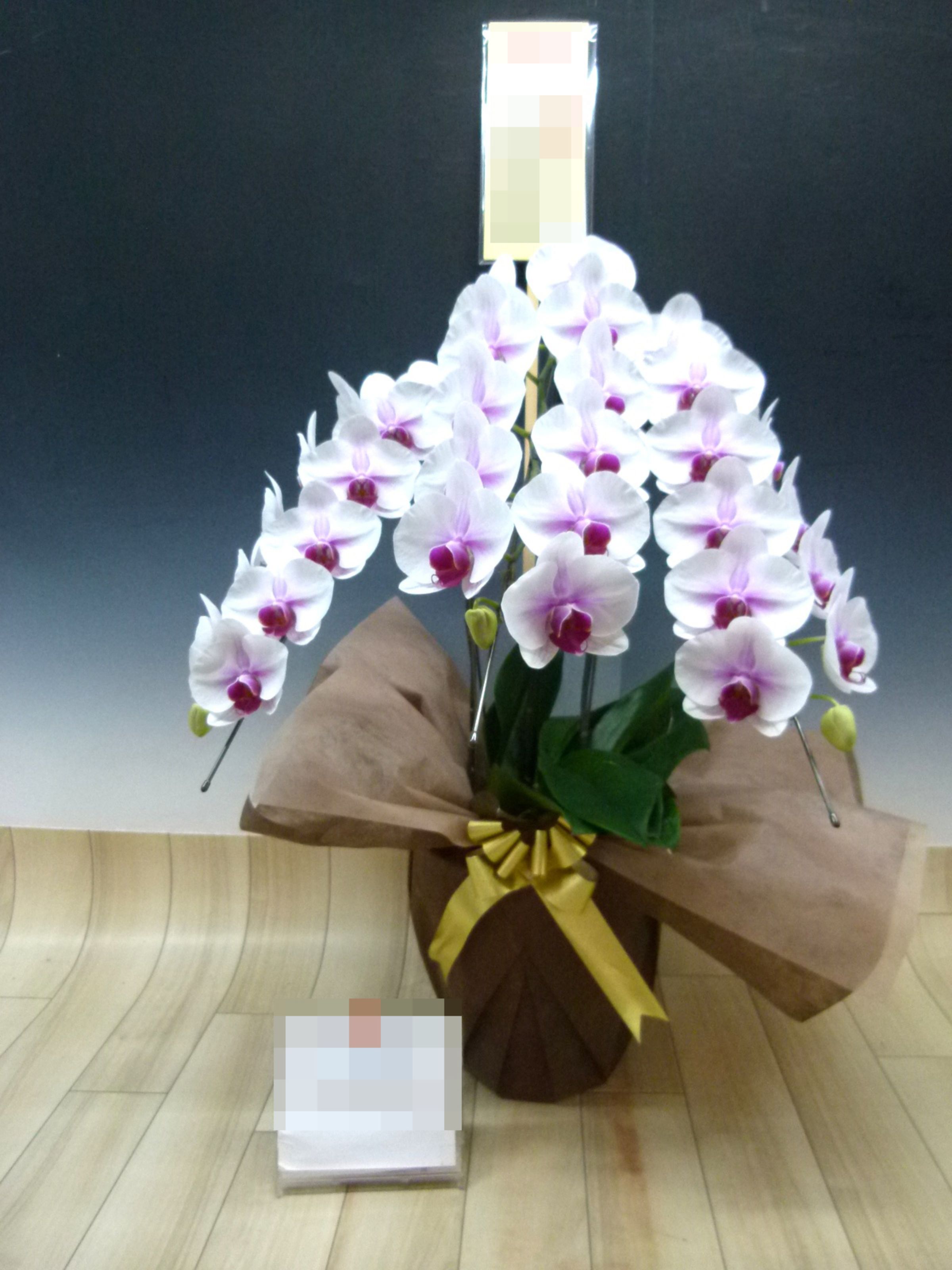 胡蝶蘭の実際にお届けした写真です。花秘書では発送前に写真をメールで送信致しますので安心して大切な顧客や取引様へのギフトにご利用頂けます。