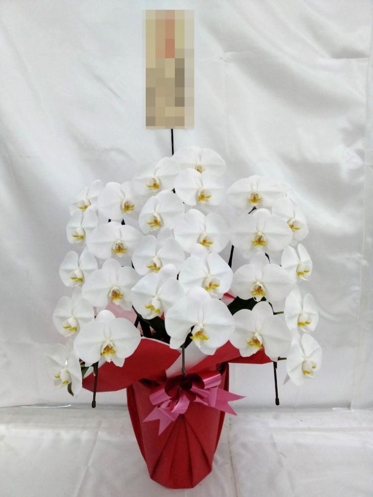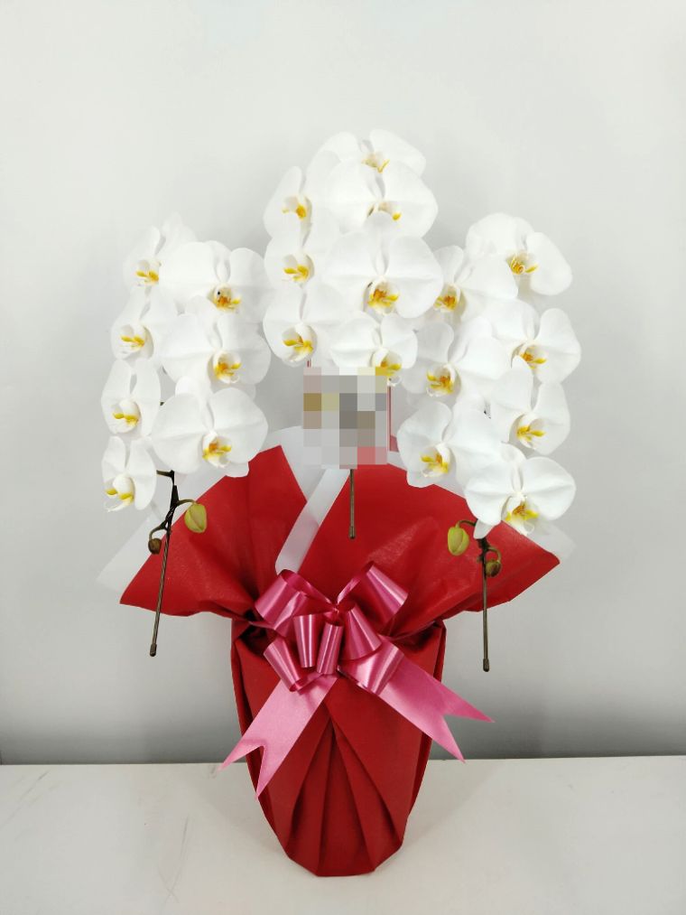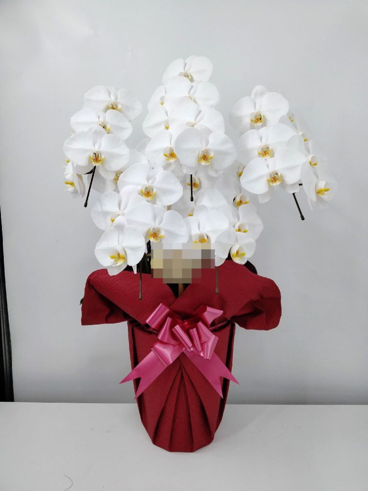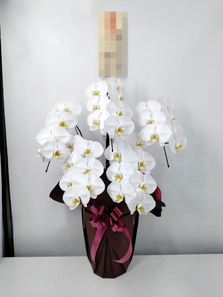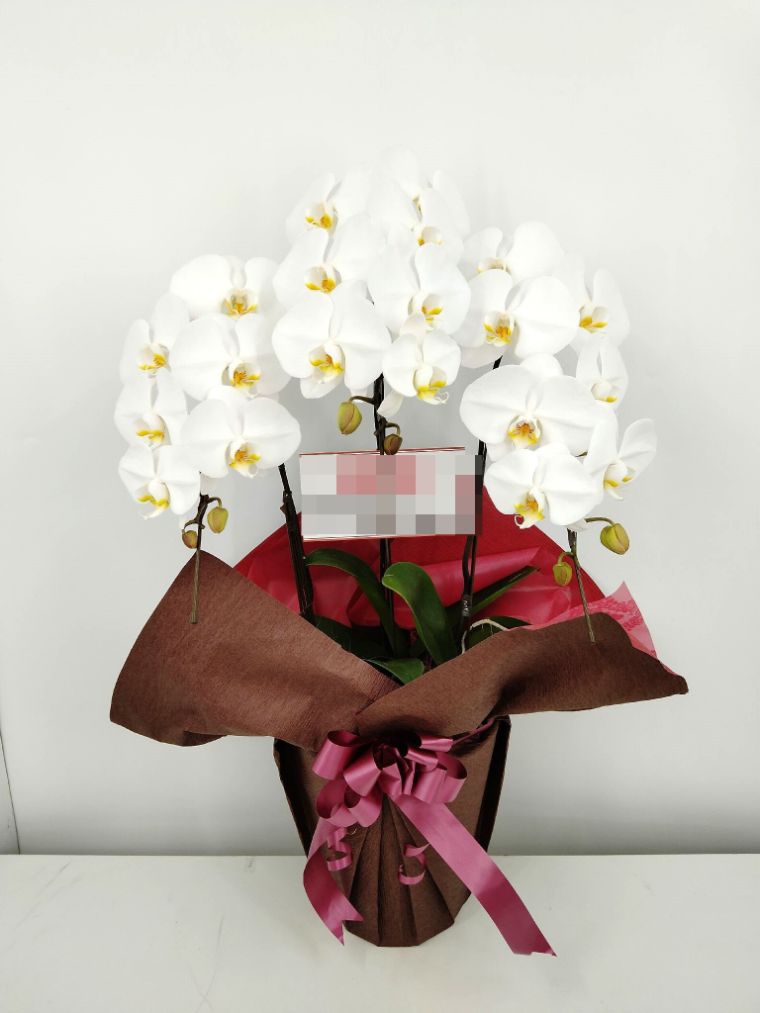 胡蝶蘭の実際にお届けした写真です。花秘書では発送前に写真をメールで送信致しますので安心して大切な顧客や取引様へのギフトにご利用頂けます。