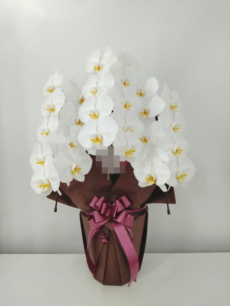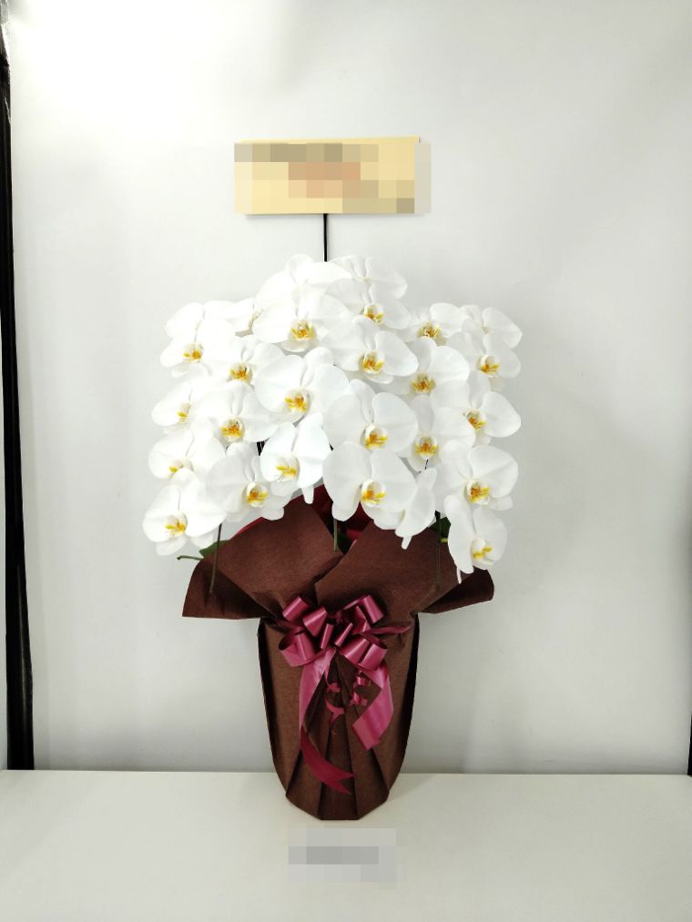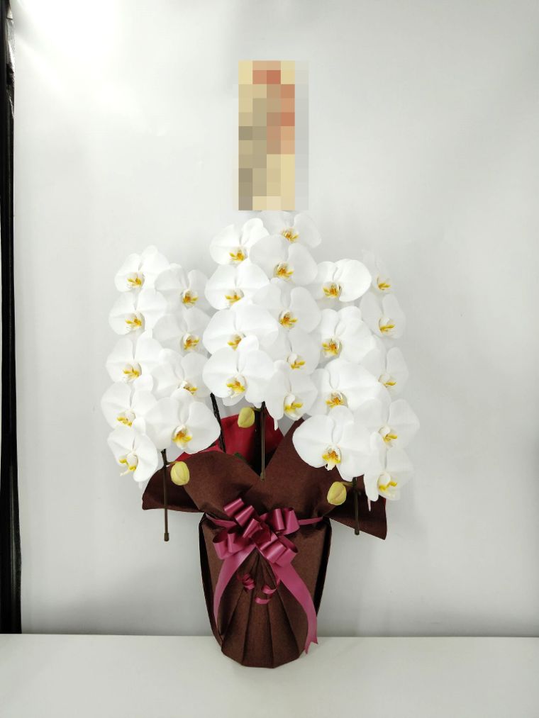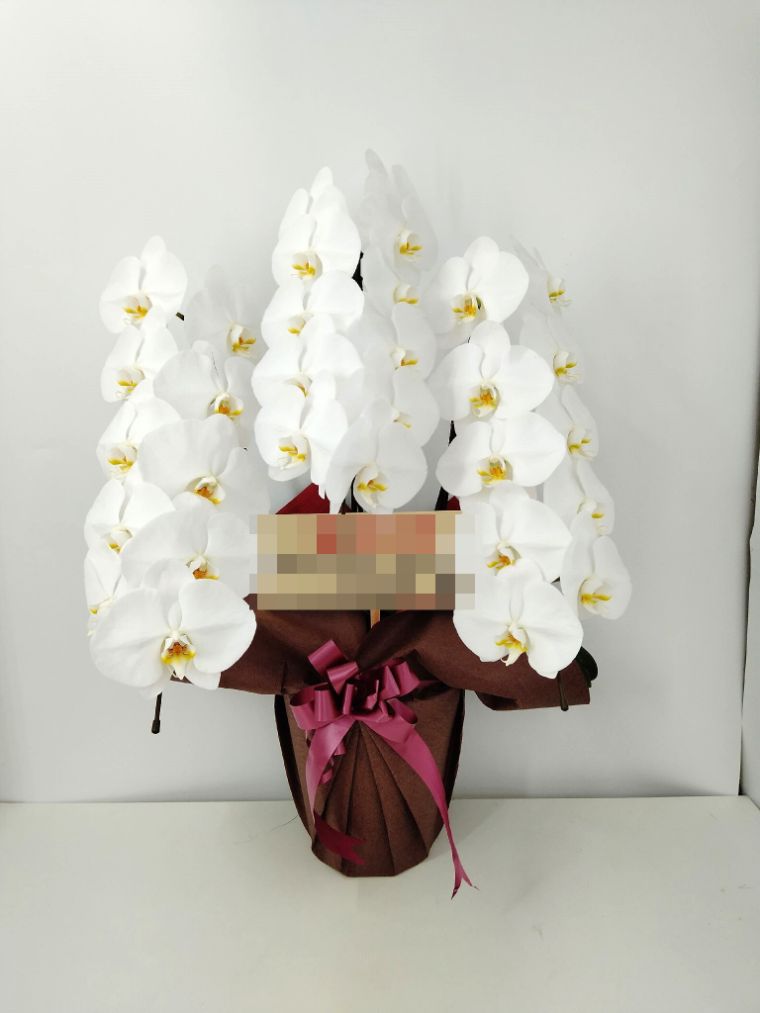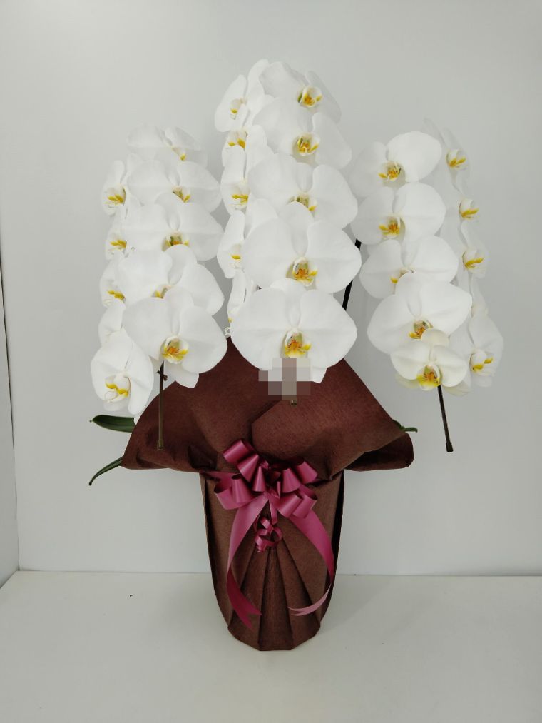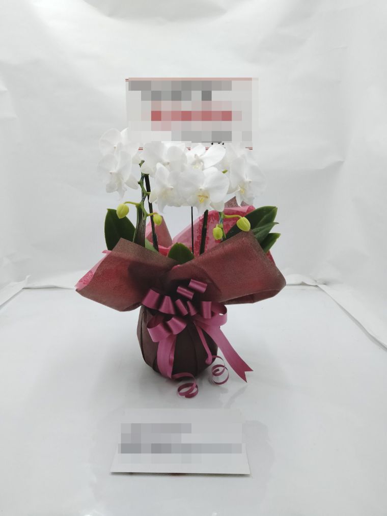 胡蝶蘭の実際にお届けした写真です。花秘書では発送前に写真をメールで送信致しますので安心して大切な顧客や取引様へのギフトにご利用頂けます。
