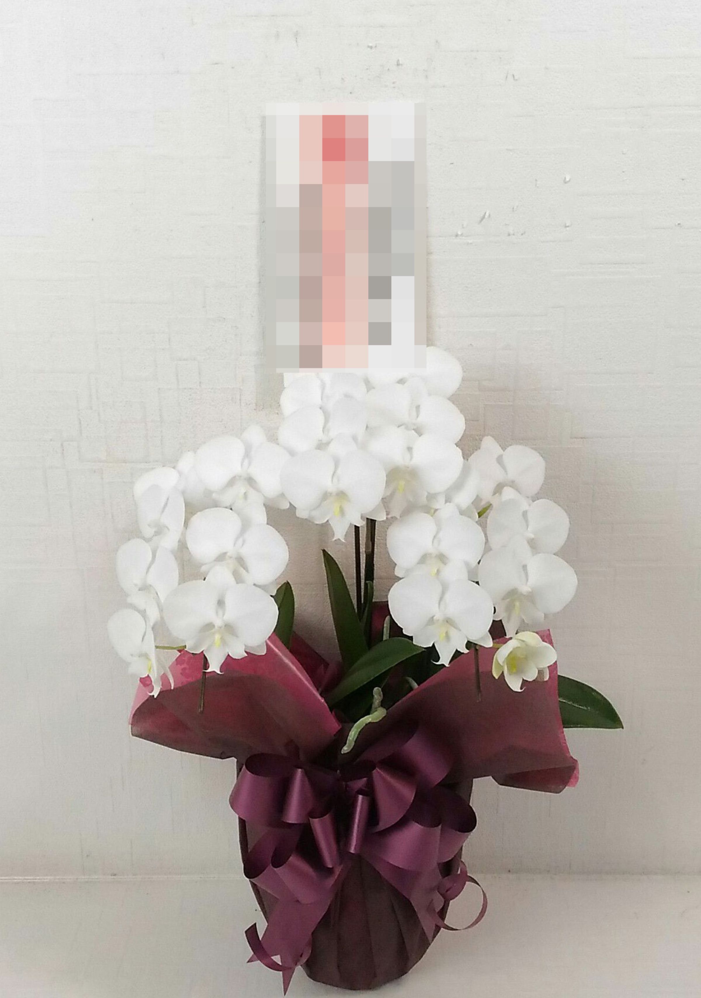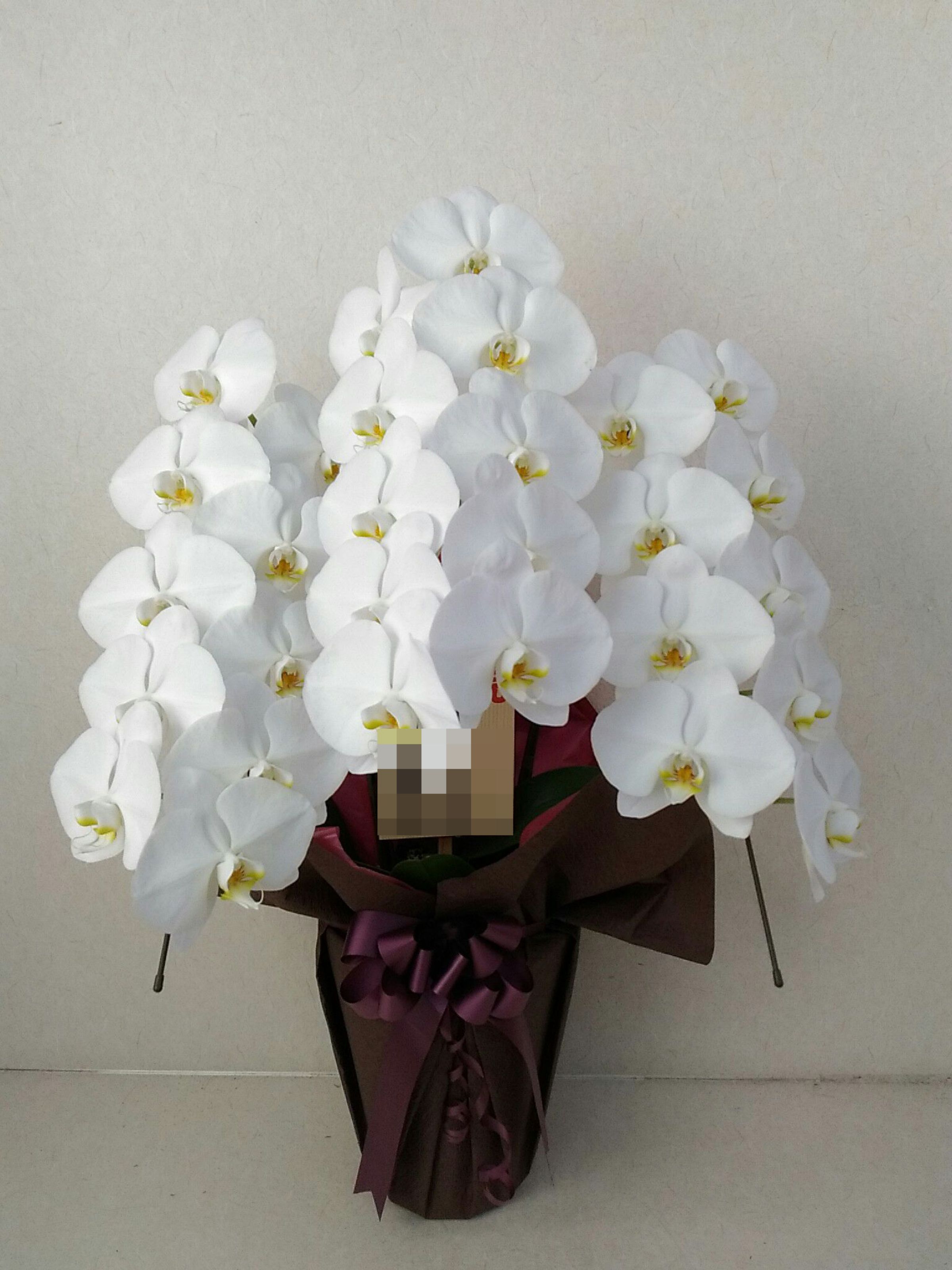 胡蝶蘭の実際にお届けした写真です。花秘書では発送前に写真をメールで送信致しますので安心して大切な顧客や取引様へのギフトにご利用頂けます。