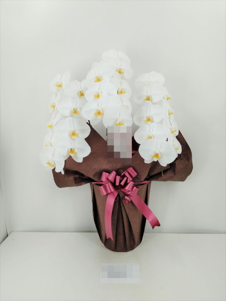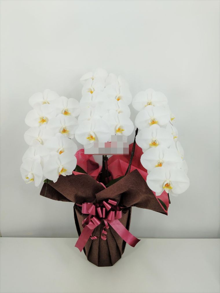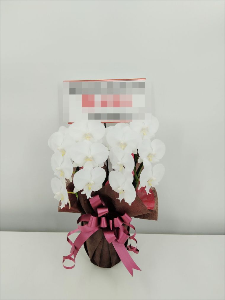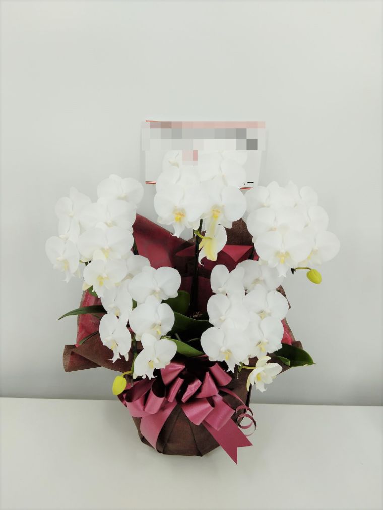 胡蝶蘭の実際にお届けした写真です。花秘書では発送前に写真をメールで送信致しますので安心して大切な顧客や取引様へのギフトにご利用頂けます。