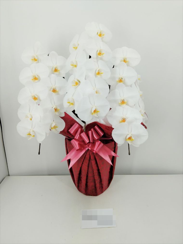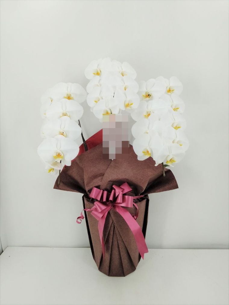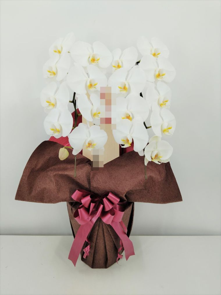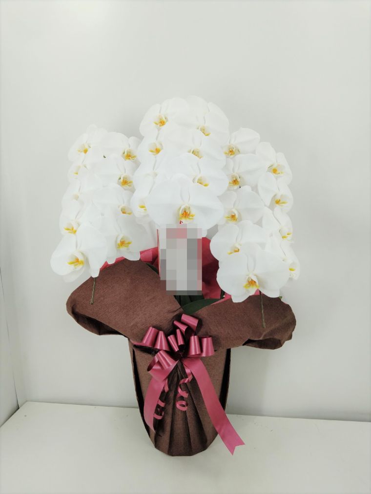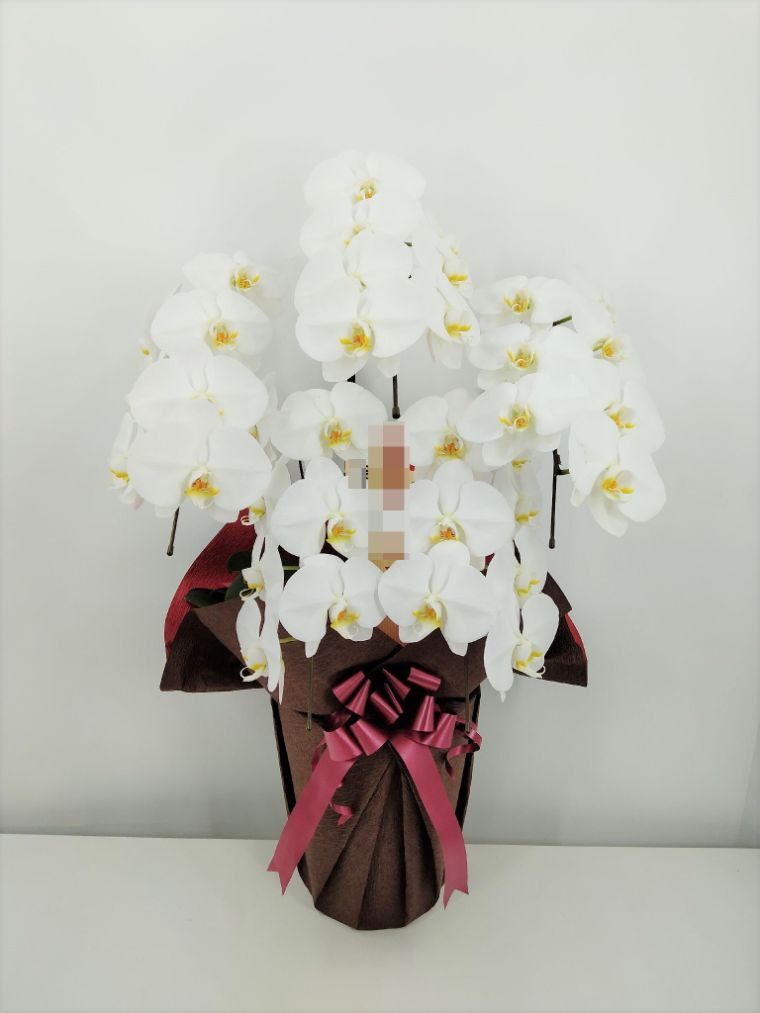 胡蝶蘭の実際にお届けした写真です。花秘書では発送前に写真をメールで送信致しますので安心して大切な顧客や取引様へのギフトにご利用頂けます。