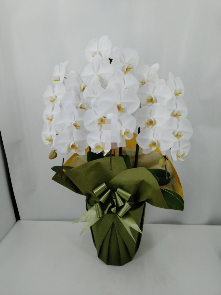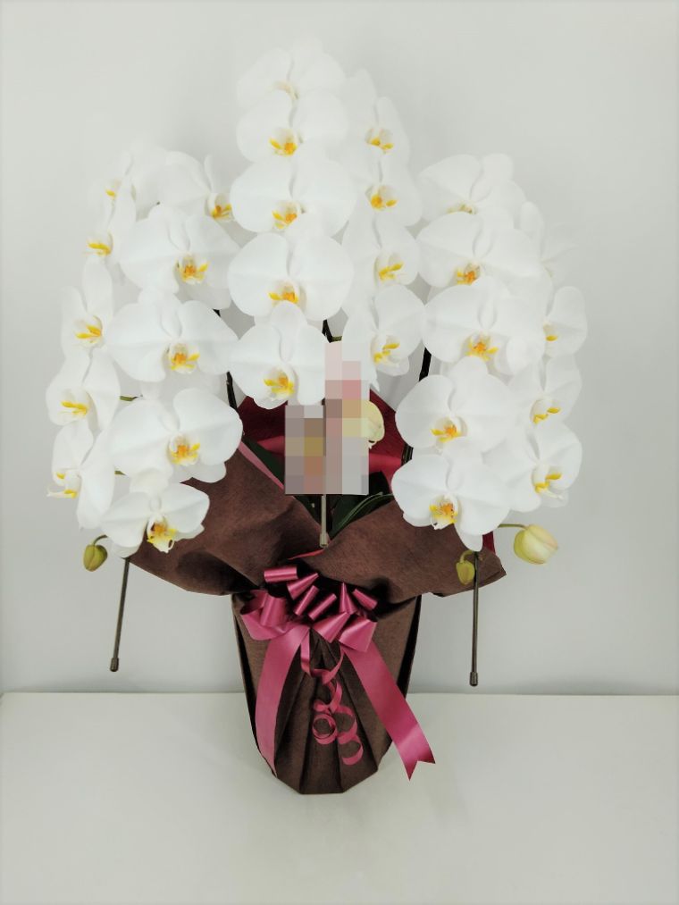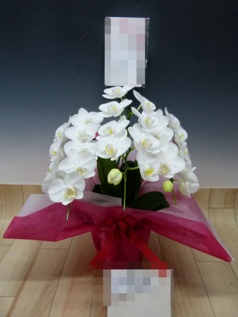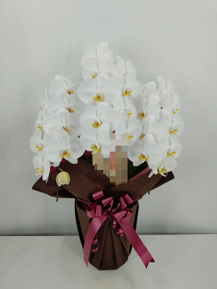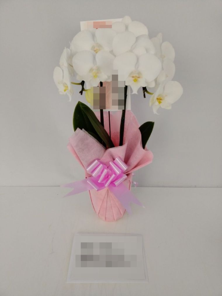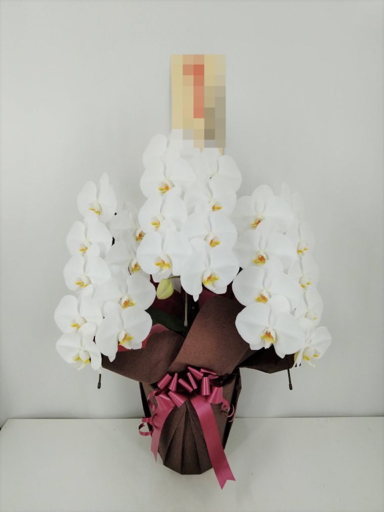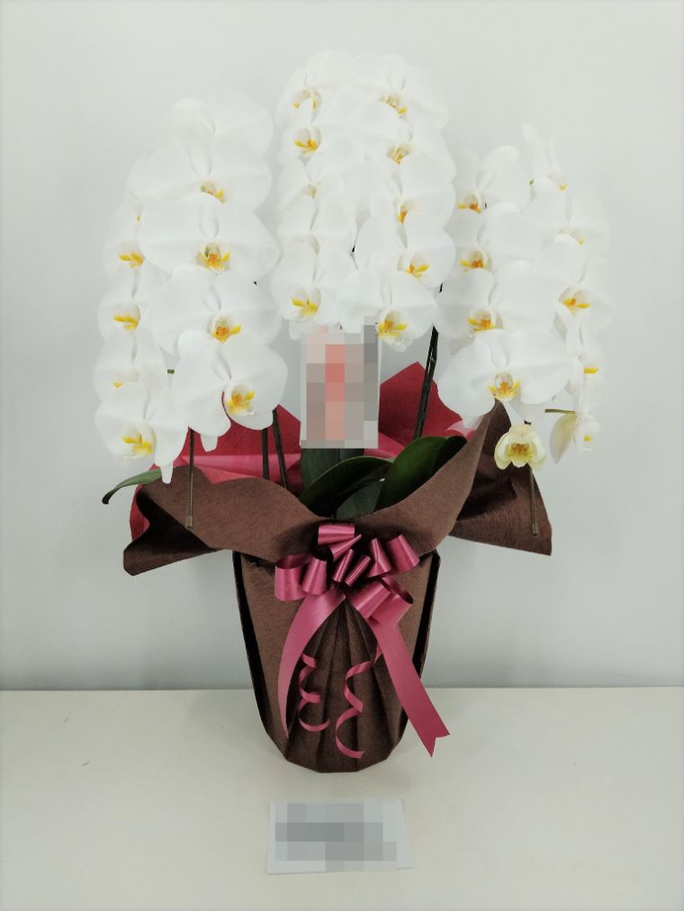 胡蝶蘭の実際にお届けした写真です。花秘書では発送前に写真をメールで送信致しますので安心して大切な顧客や取引様へのギフトにご利用頂けます。