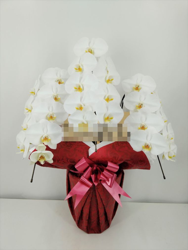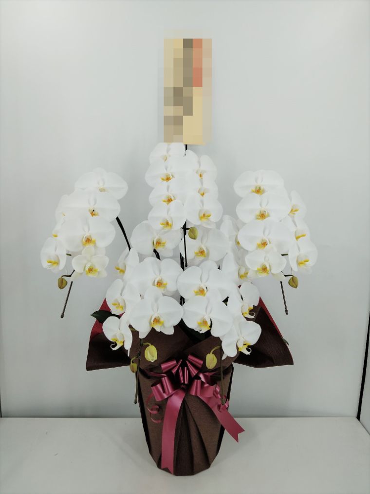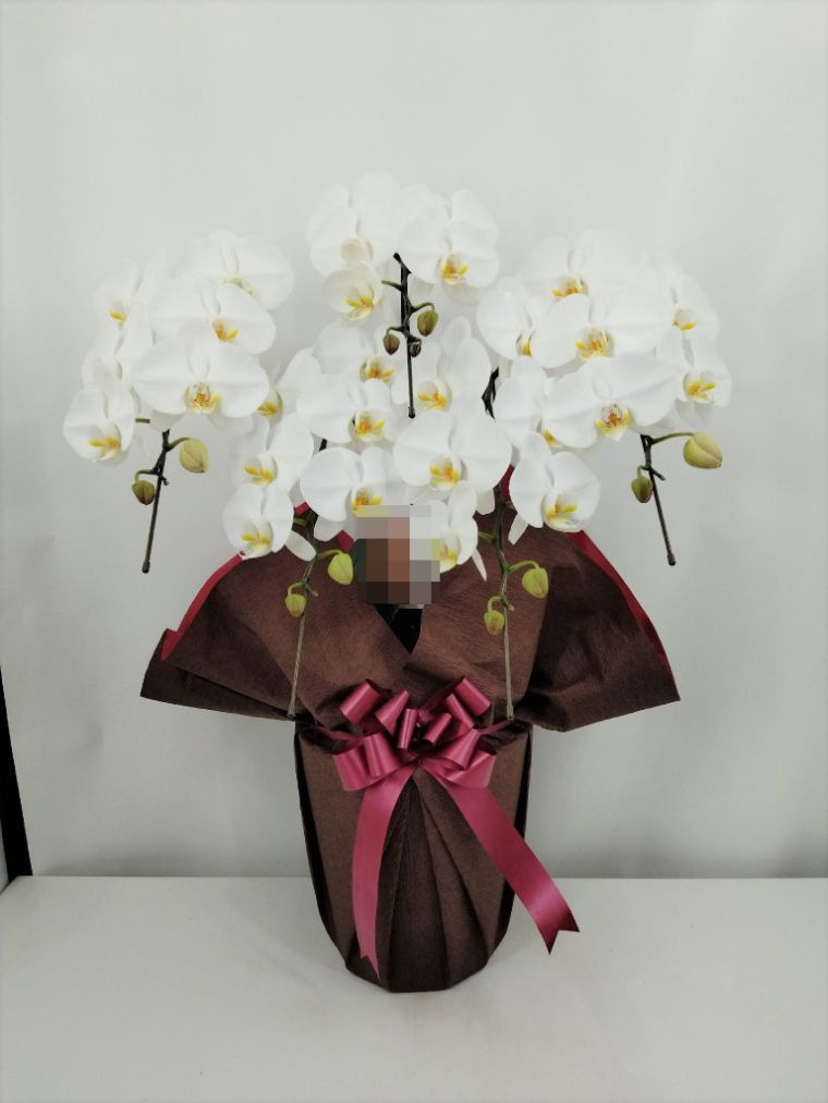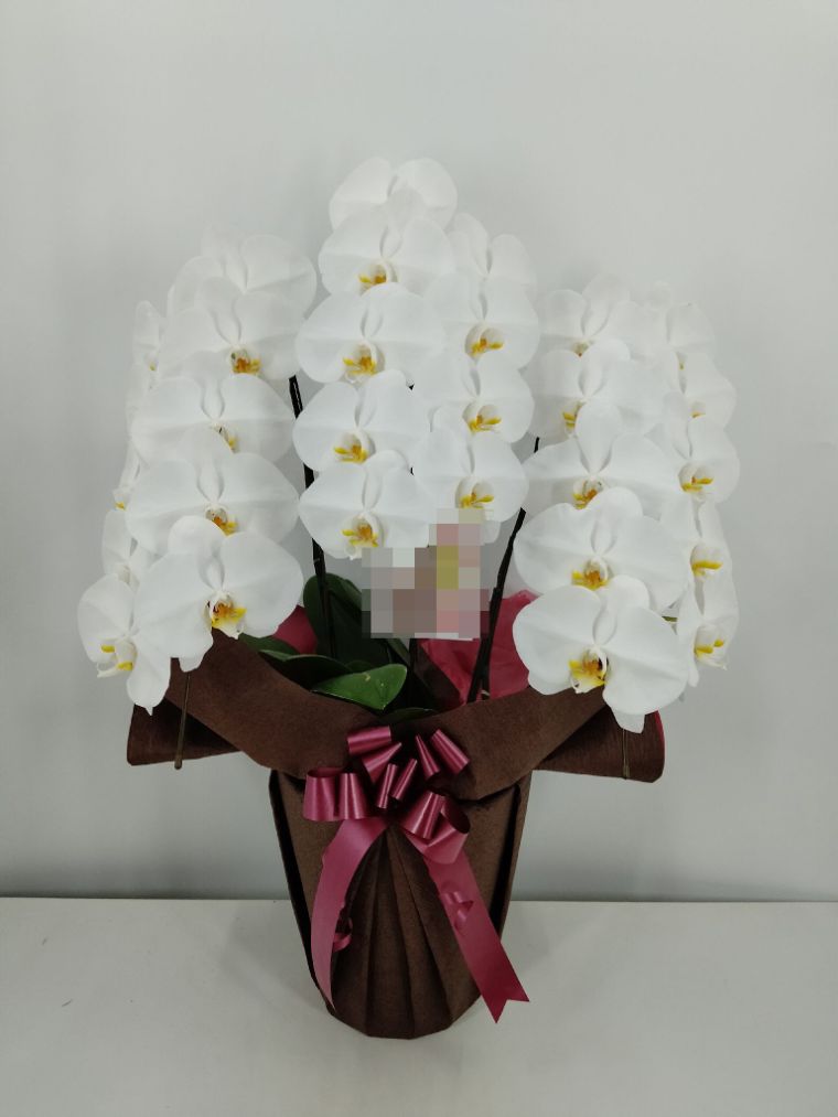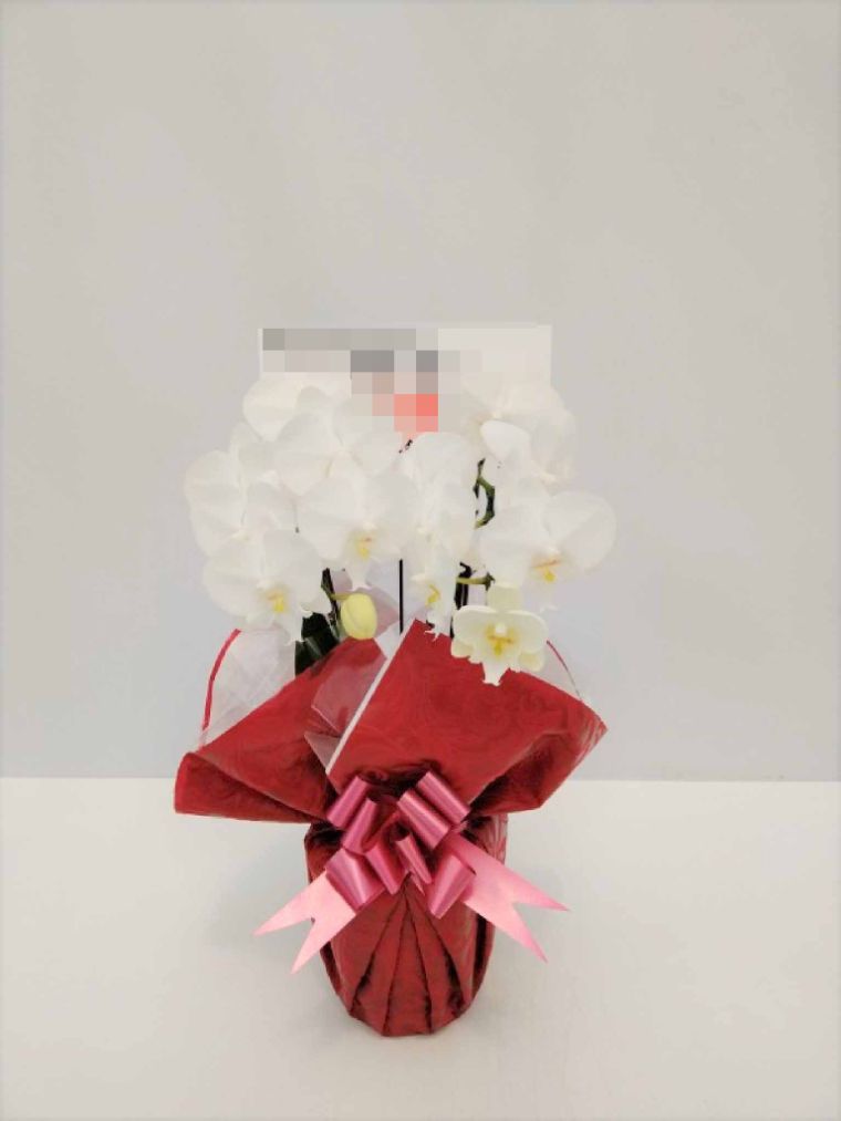 胡蝶蘭の実際にお届けした写真です。花秘書では発送前に写真をメールで送信致しますので安心して大切な顧客や取引様へのギフトにご利用頂けます。