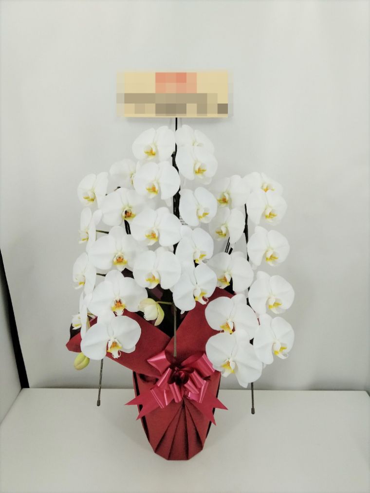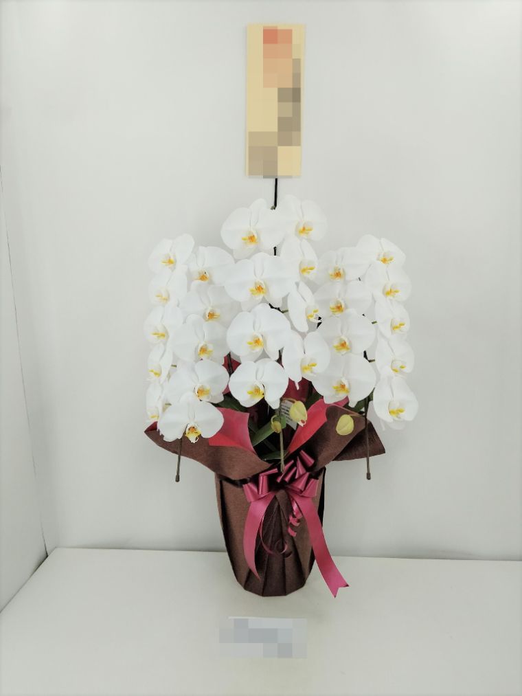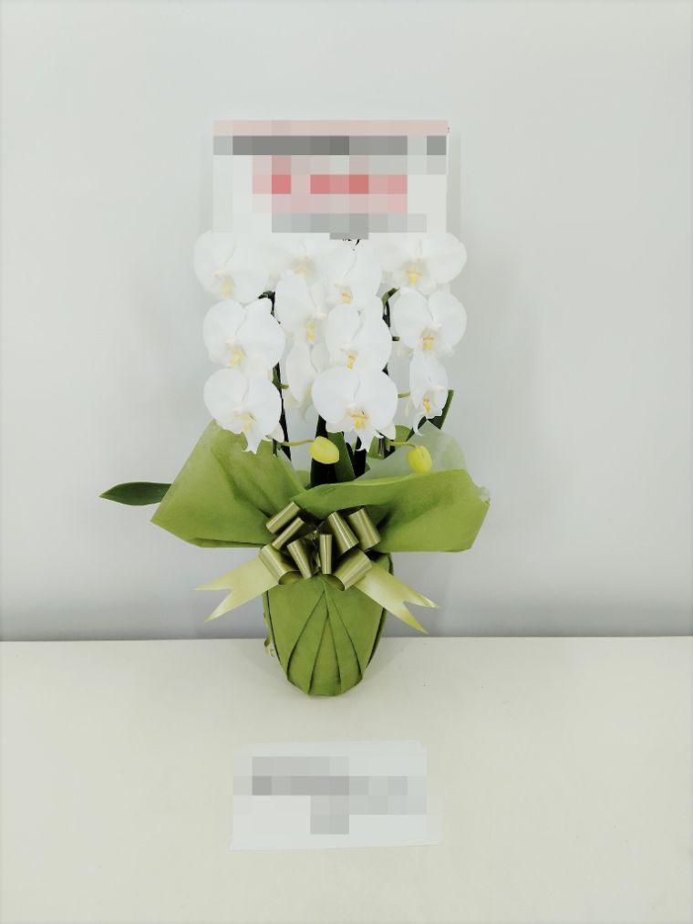 胡蝶蘭の実際にお届けした写真です。花秘書では発送前に写真をメールで送信致しますので安心して大切な顧客や取引様へのギフトにご利用頂けます。