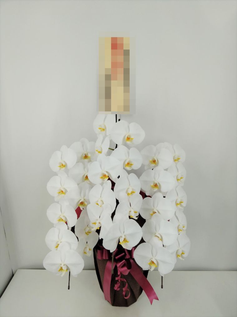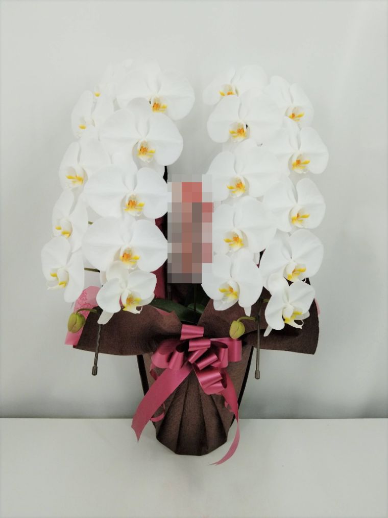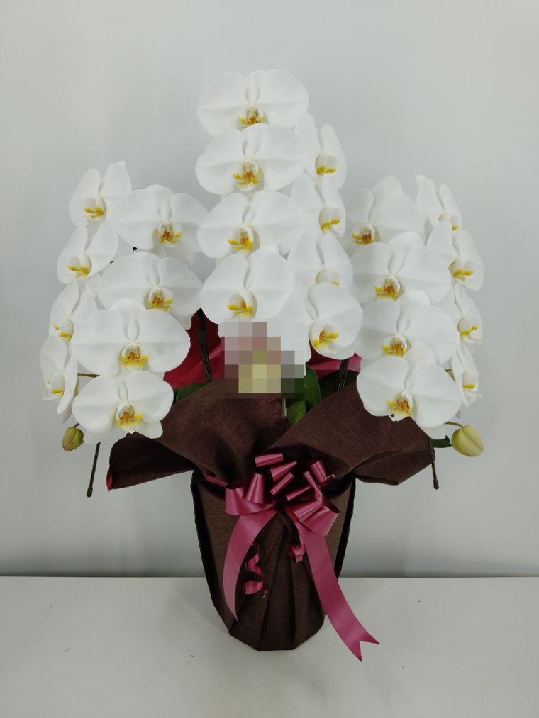 胡蝶蘭の実際にお届けした写真です。花秘書では発送前に写真をメールで送信致しますので安心して大切な顧客や取引様へのギフトにご利用頂けます。