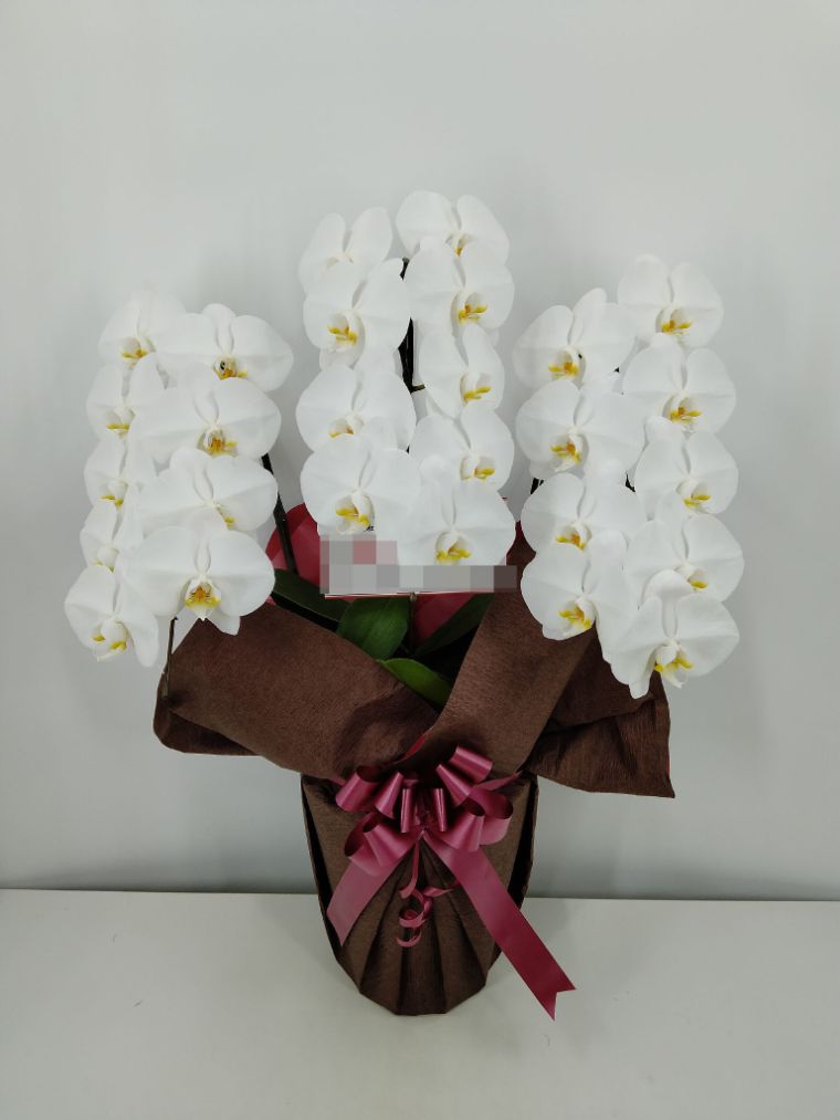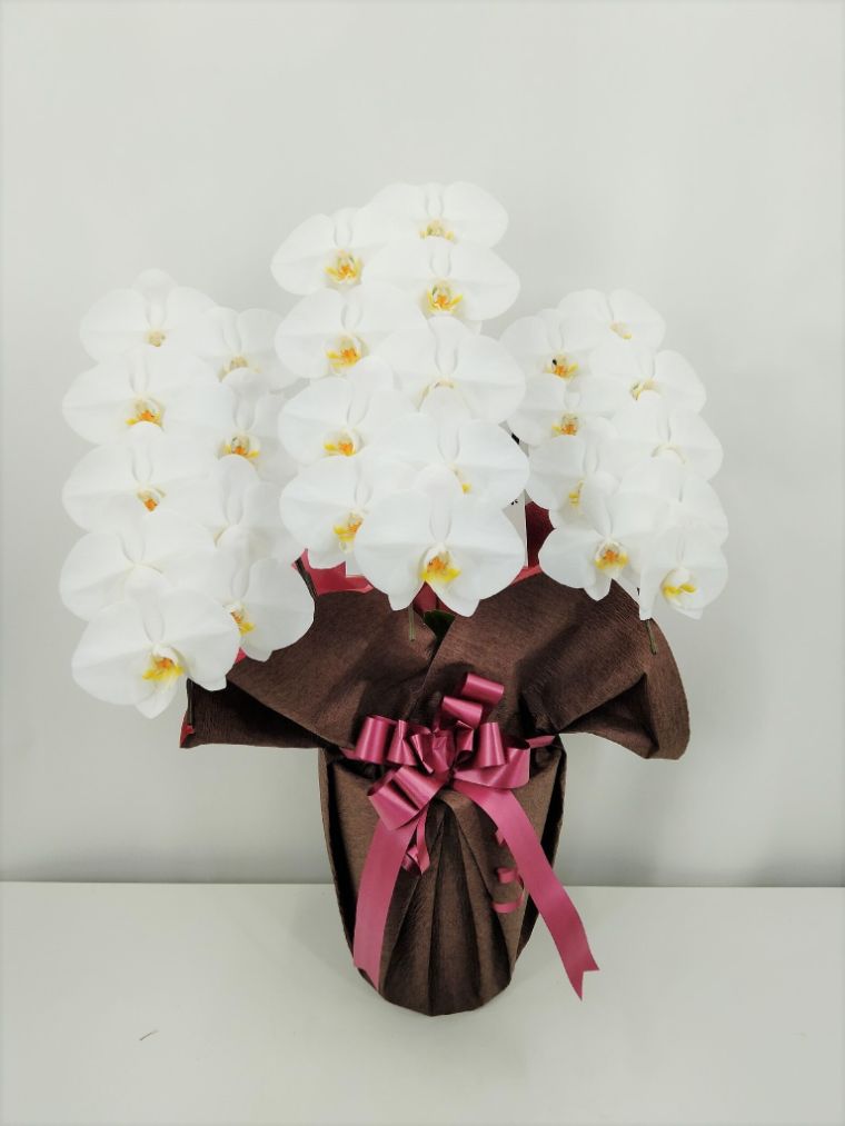 胡蝶蘭の実際にお届けした写真です。花秘書では発送前に写真をメールで送信致しますので安心して大切な顧客や取引様へのギフトにご利用頂けます。