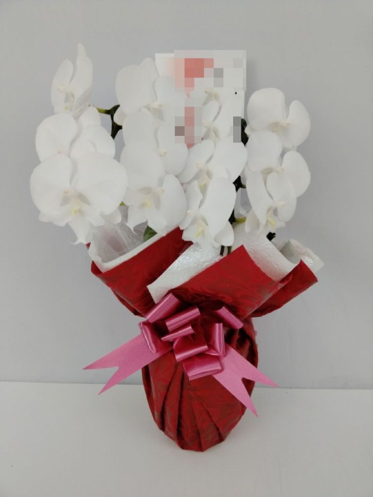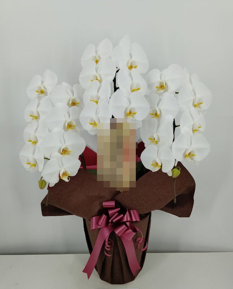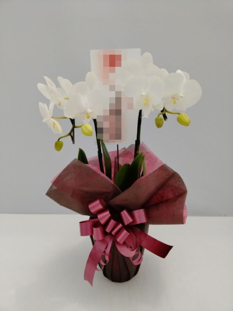 胡蝶蘭の実際にお届けした写真です。花秘書では発送前に写真をメールで送信致しますので安心して大切な顧客や取引様へのギフトにご利用頂けます。