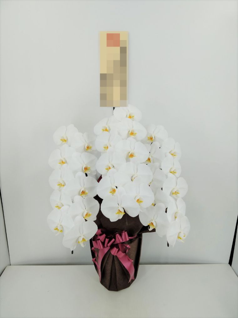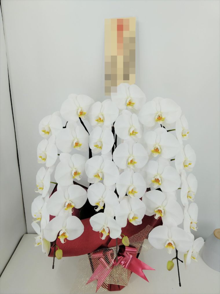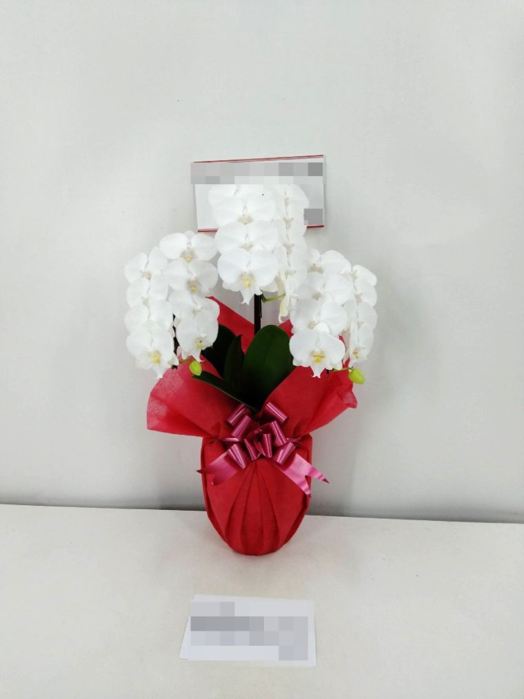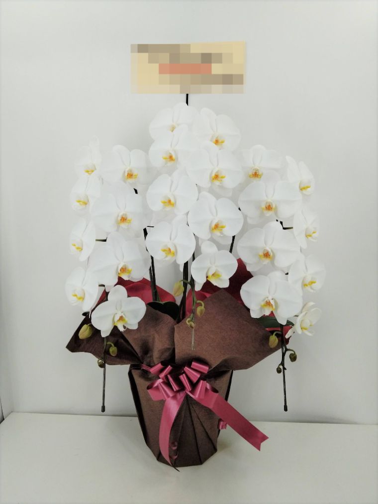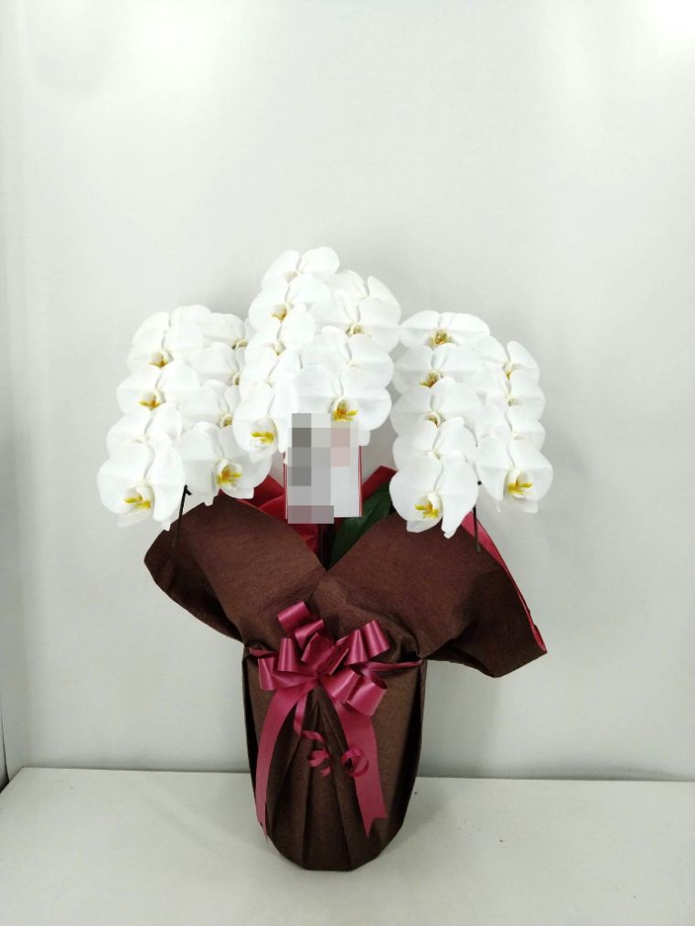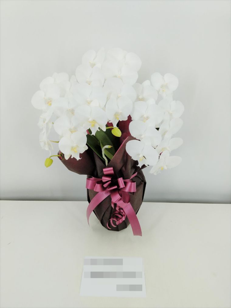 胡蝶蘭の実際にお届けした写真です。花秘書では発送前に写真をメールで送信致しますので安心して大切な顧客や取引様へのギフトにご利用頂けます。