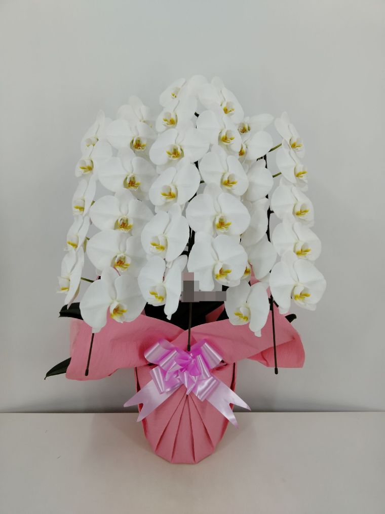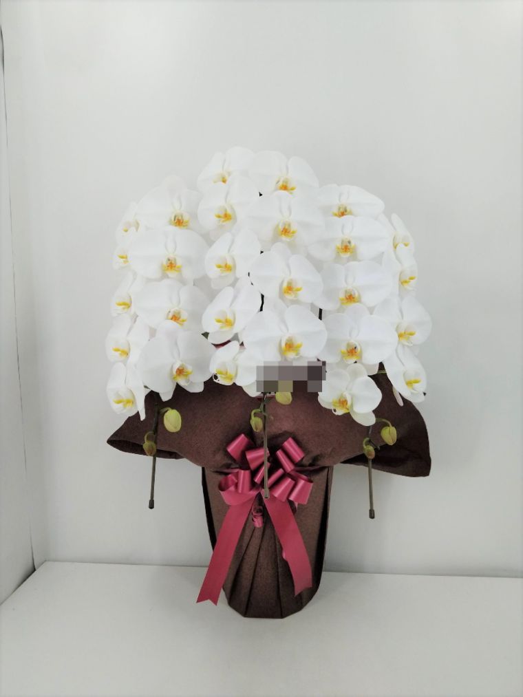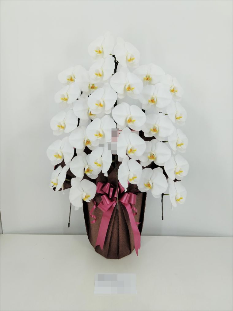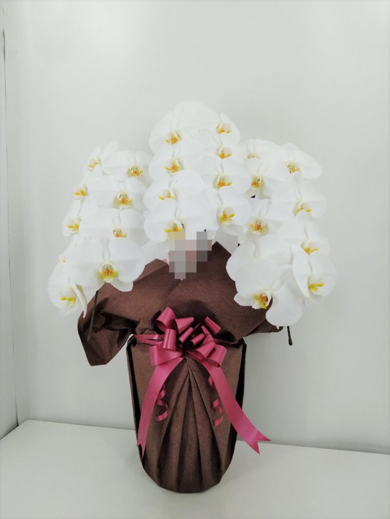 胡蝶蘭の実際にお届けした写真です。花秘書では発送前に写真をメールで送信致しますので安心して大切な顧客や取引様へのギフトにご利用頂けます。