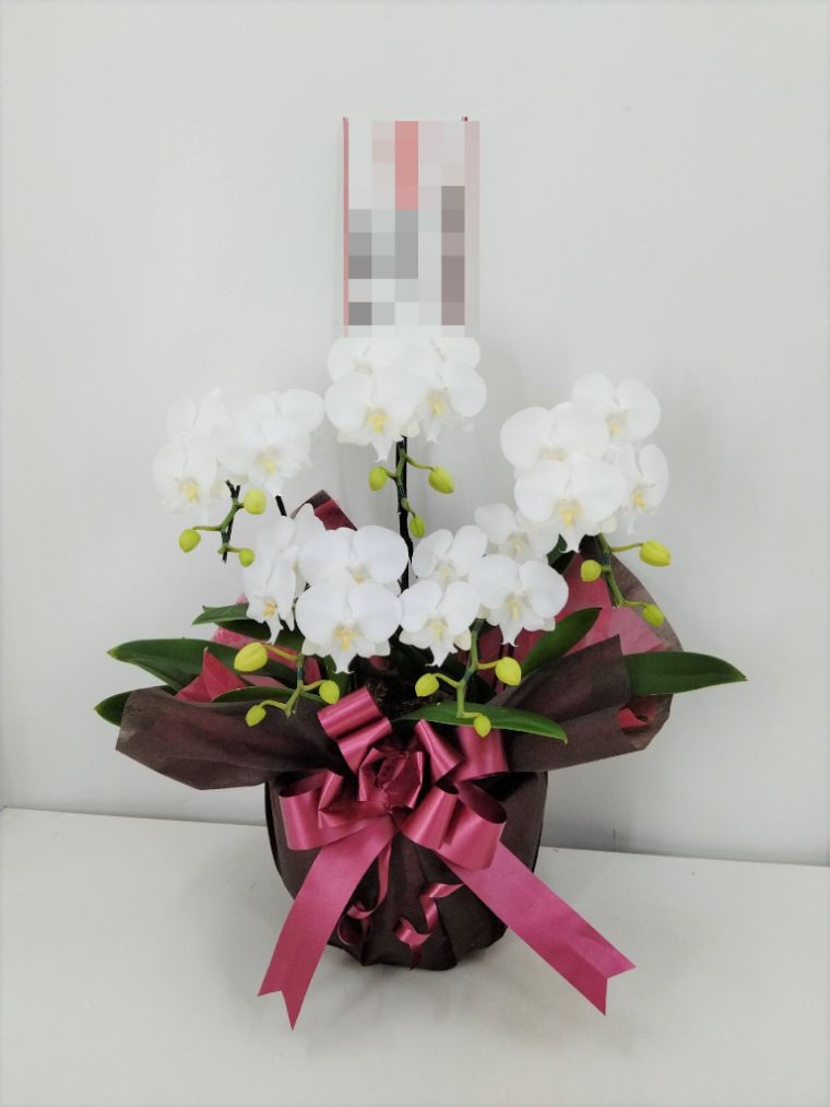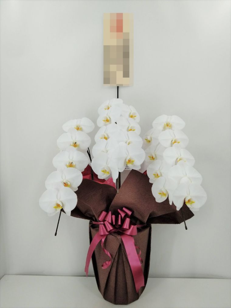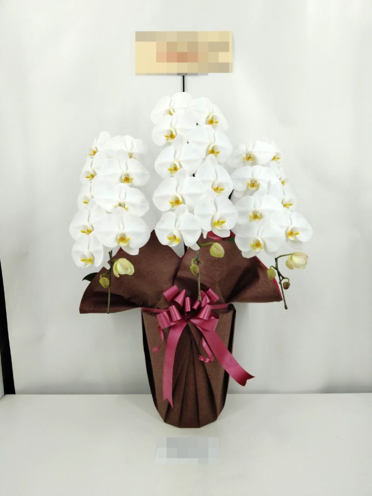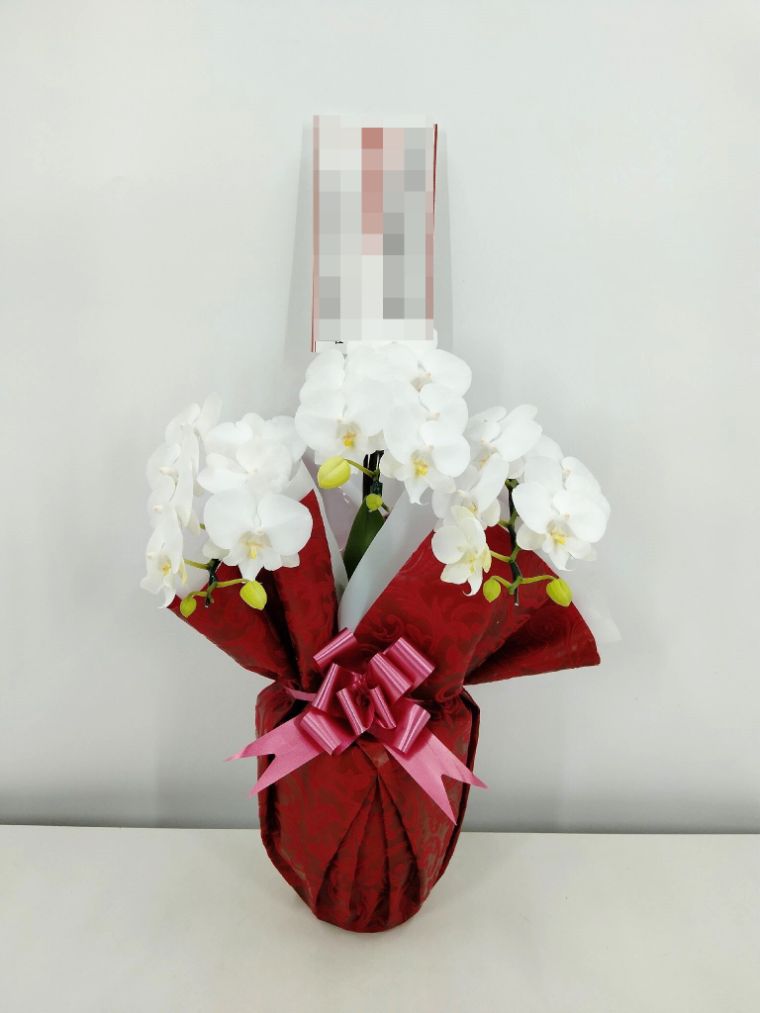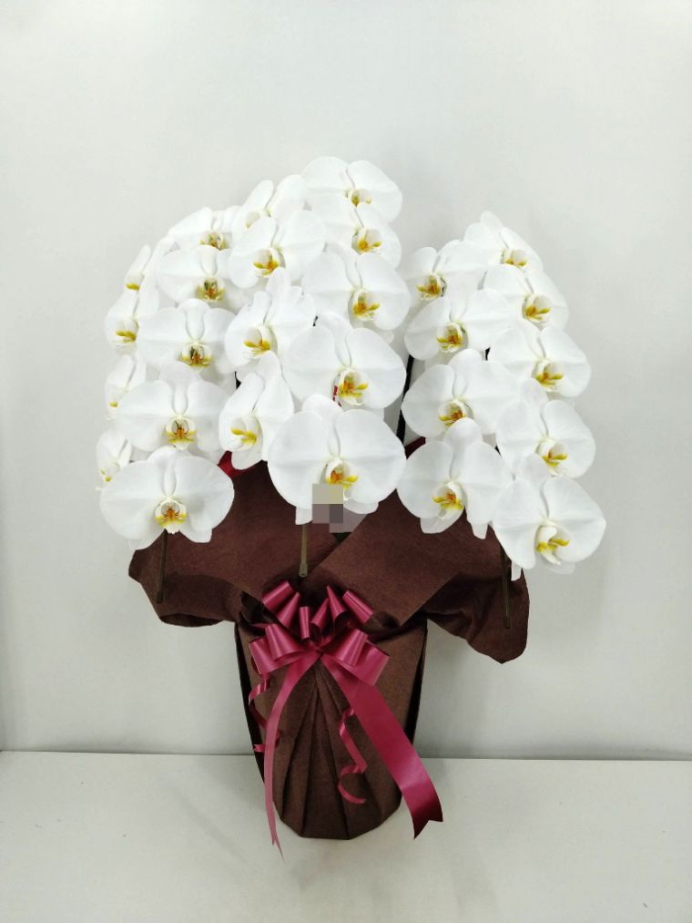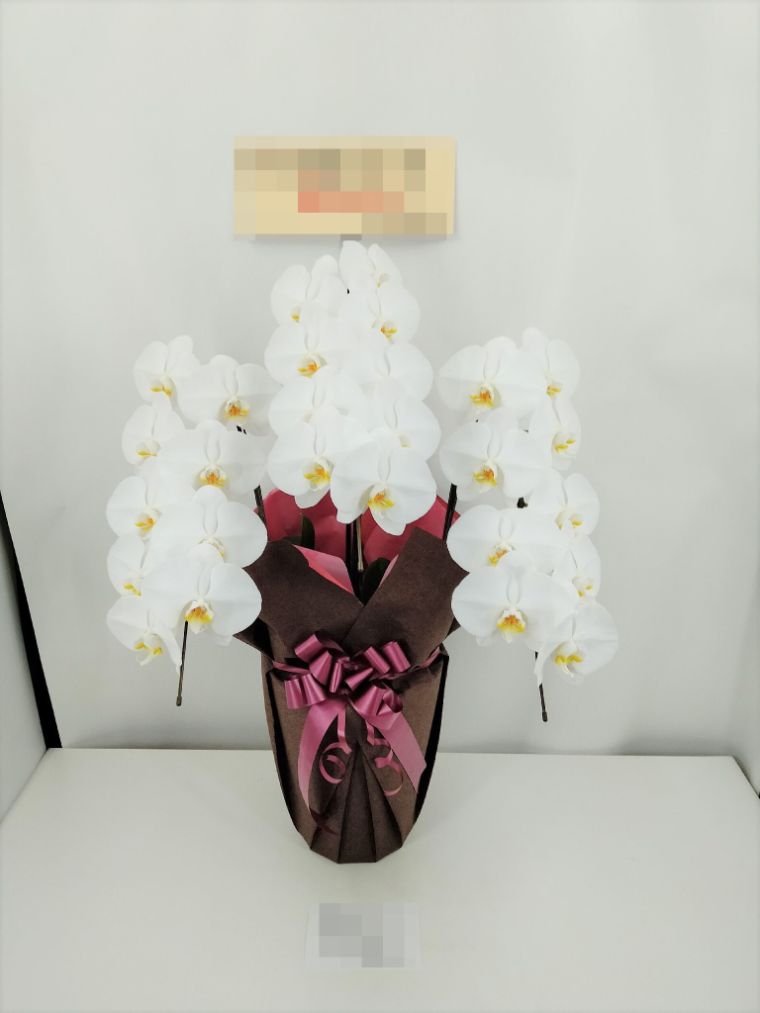 胡蝶蘭の実際にお届けした写真です。花秘書では発送前に写真をメールで送信致しますので安心して大切な顧客や取引様へのギフトにご利用頂けます。