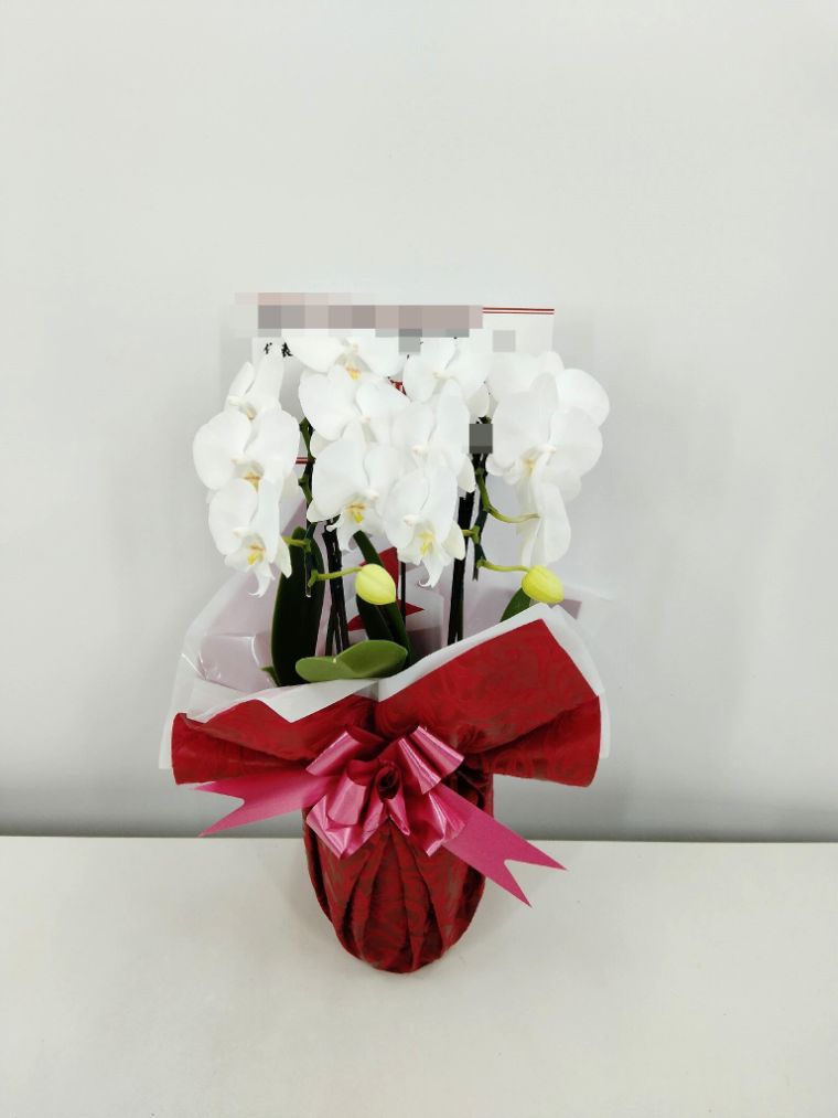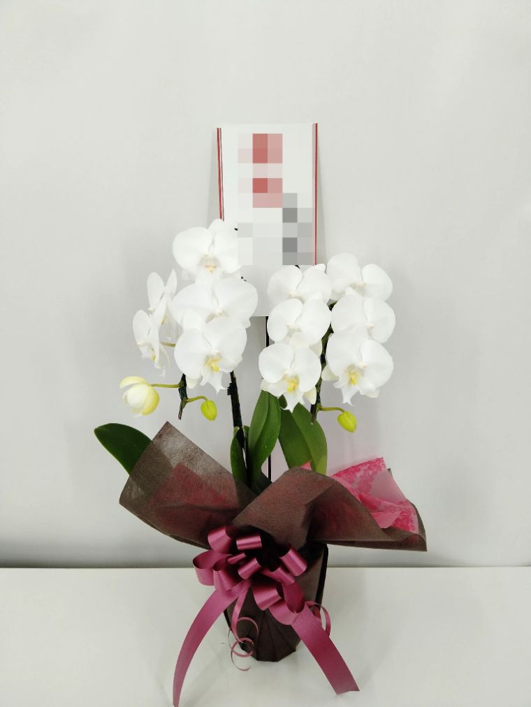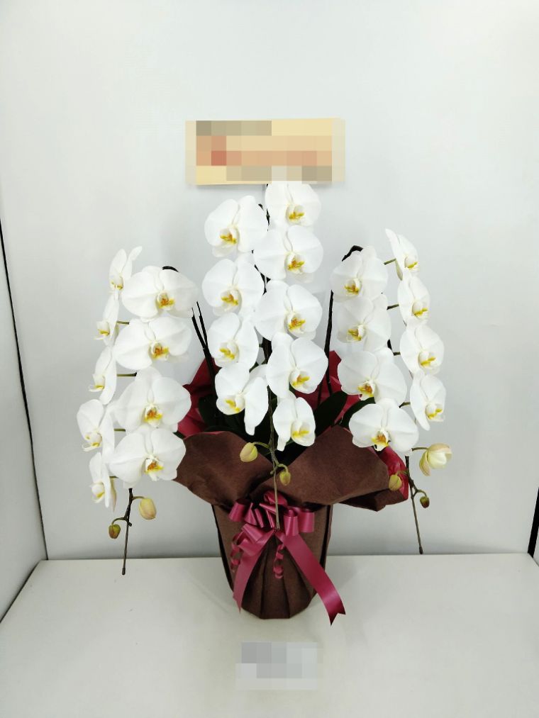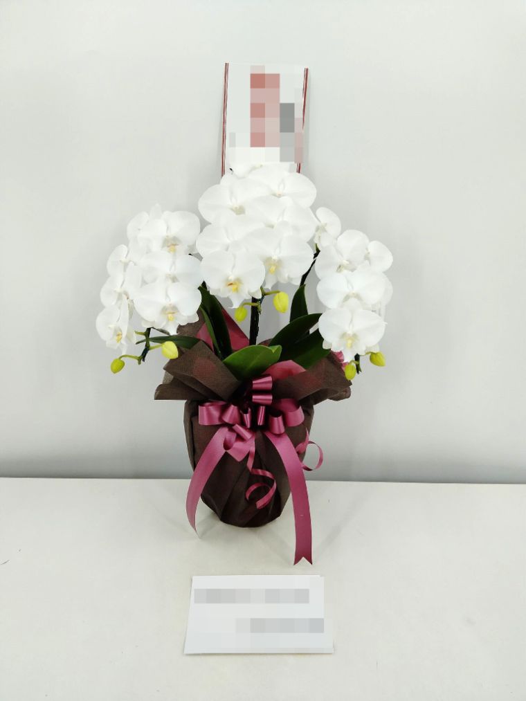 胡蝶蘭の実際にお届けした写真です。花秘書では発送前に写真をメールで送信致しますので安心して大切な顧客や取引様へのギフトにご利用頂けます。