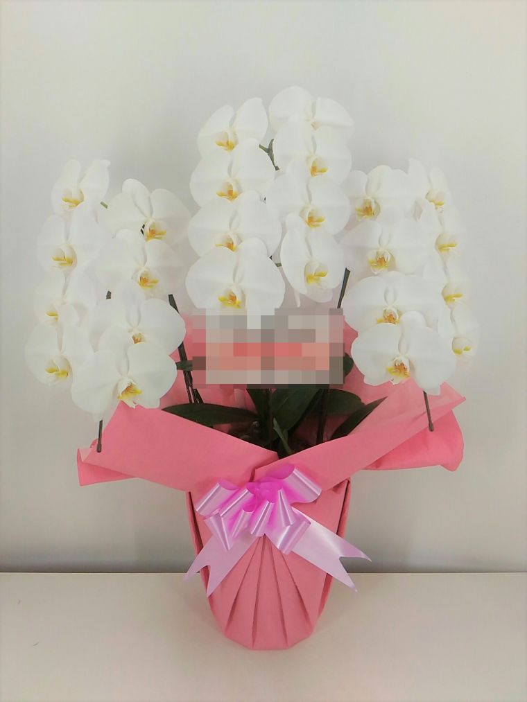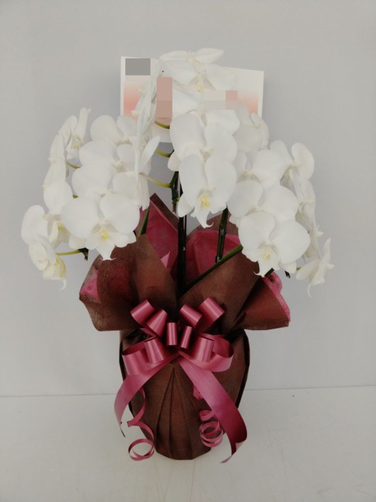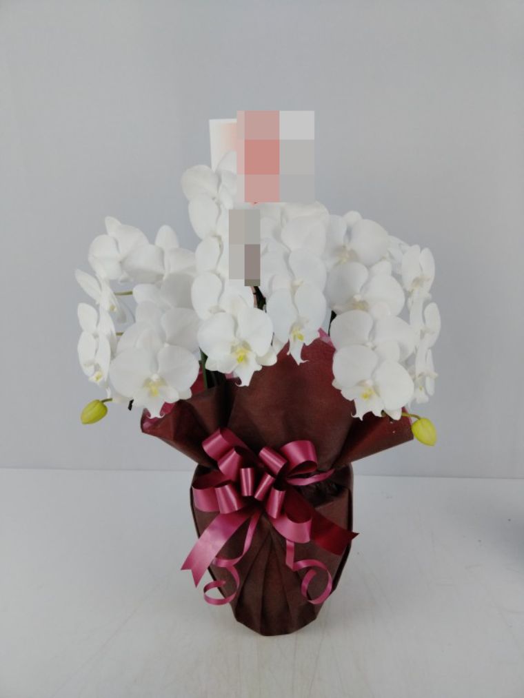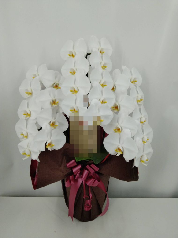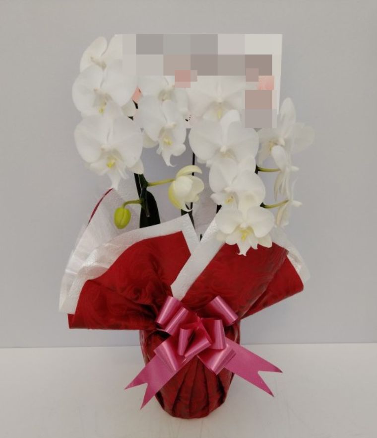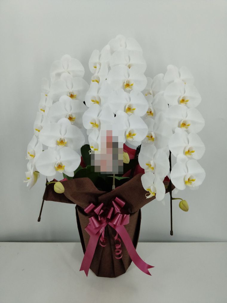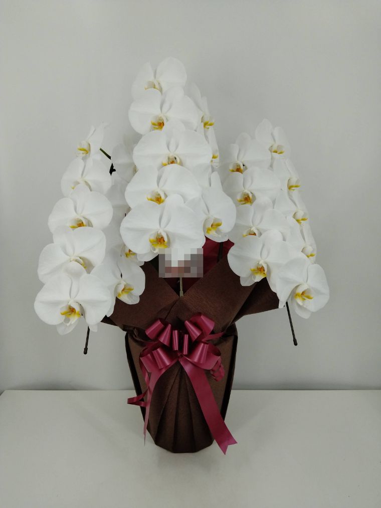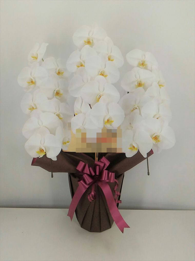 胡蝶蘭の実際にお届けした写真です。花秘書では発送前に写真をメールで送信致しますので安心して大切な顧客や取引様へのギフトにご利用頂けます。