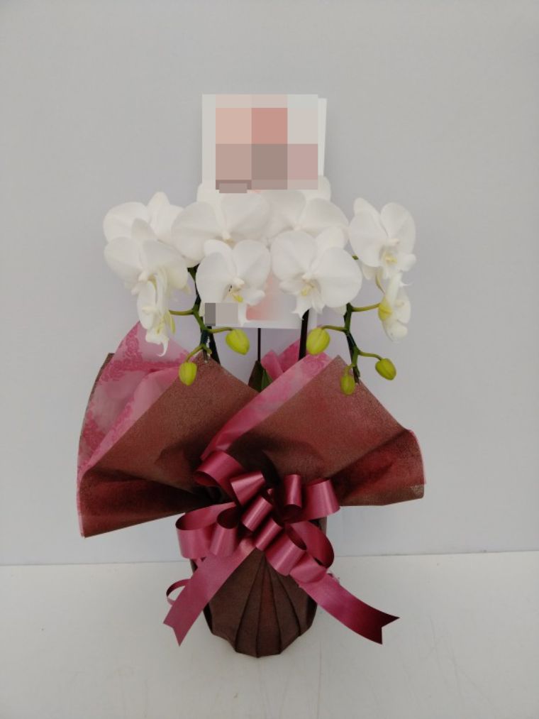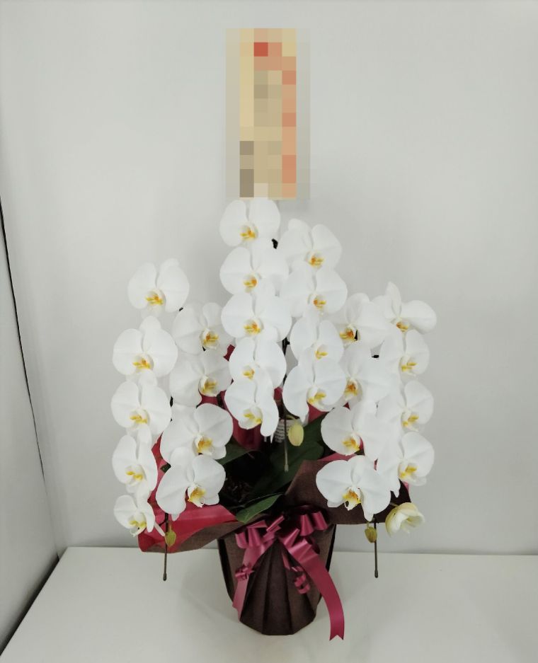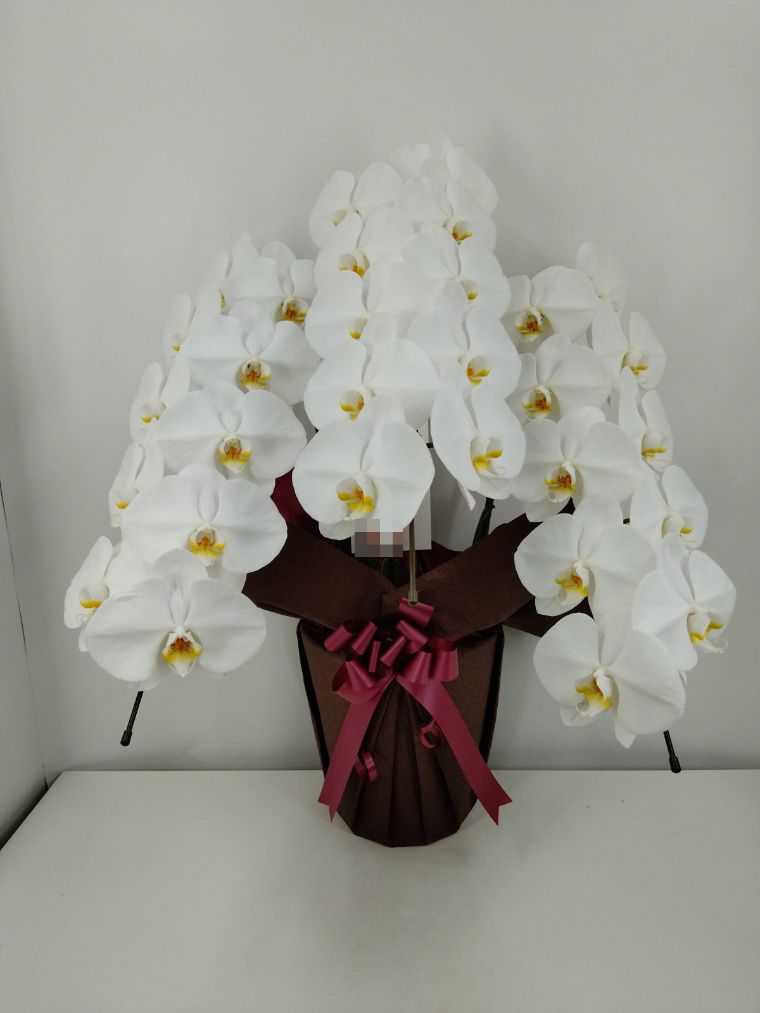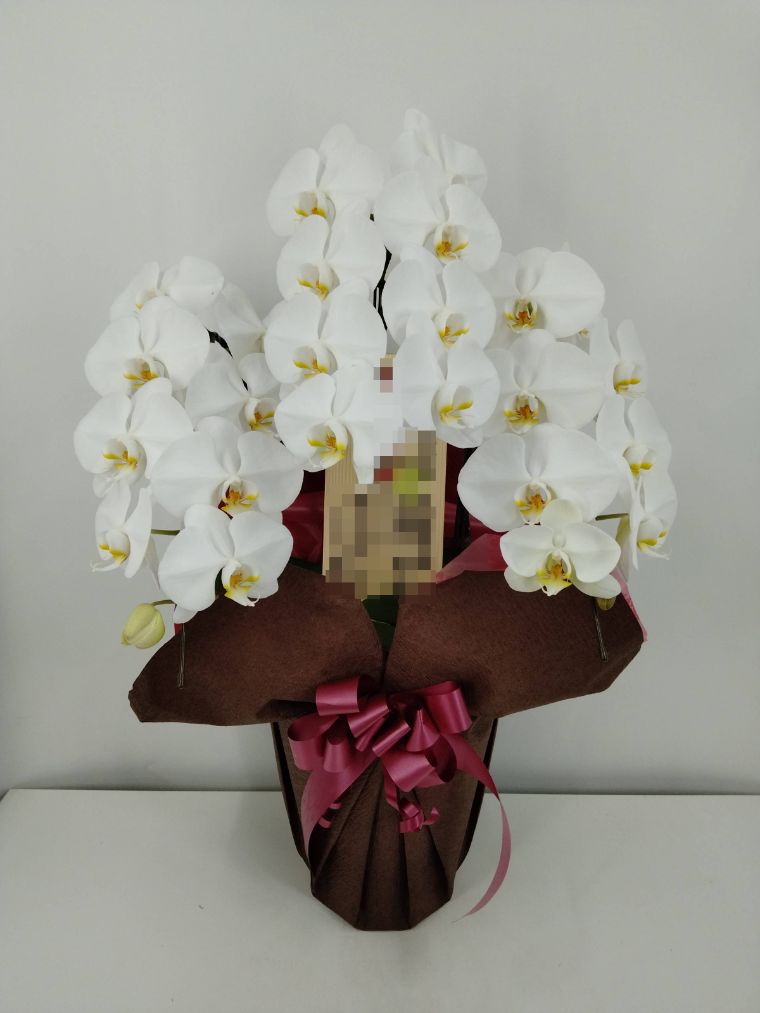 胡蝶蘭の実際にお届けした写真です。花秘書では発送前に写真をメールで送信致しますので安心して大切な顧客や取引様へのギフトにご利用頂けます。