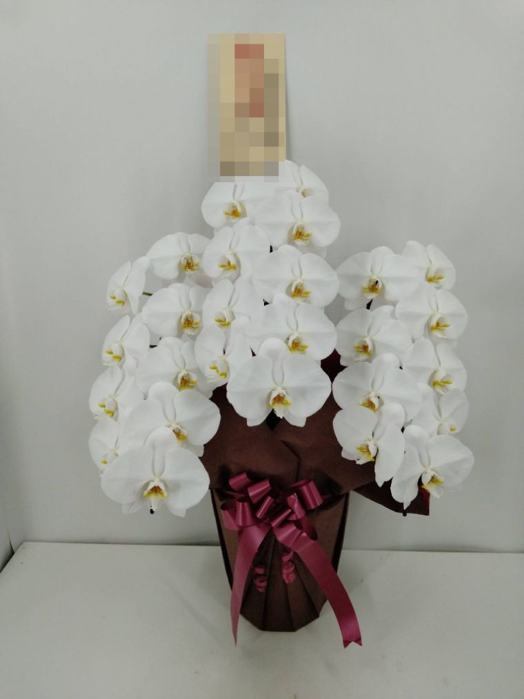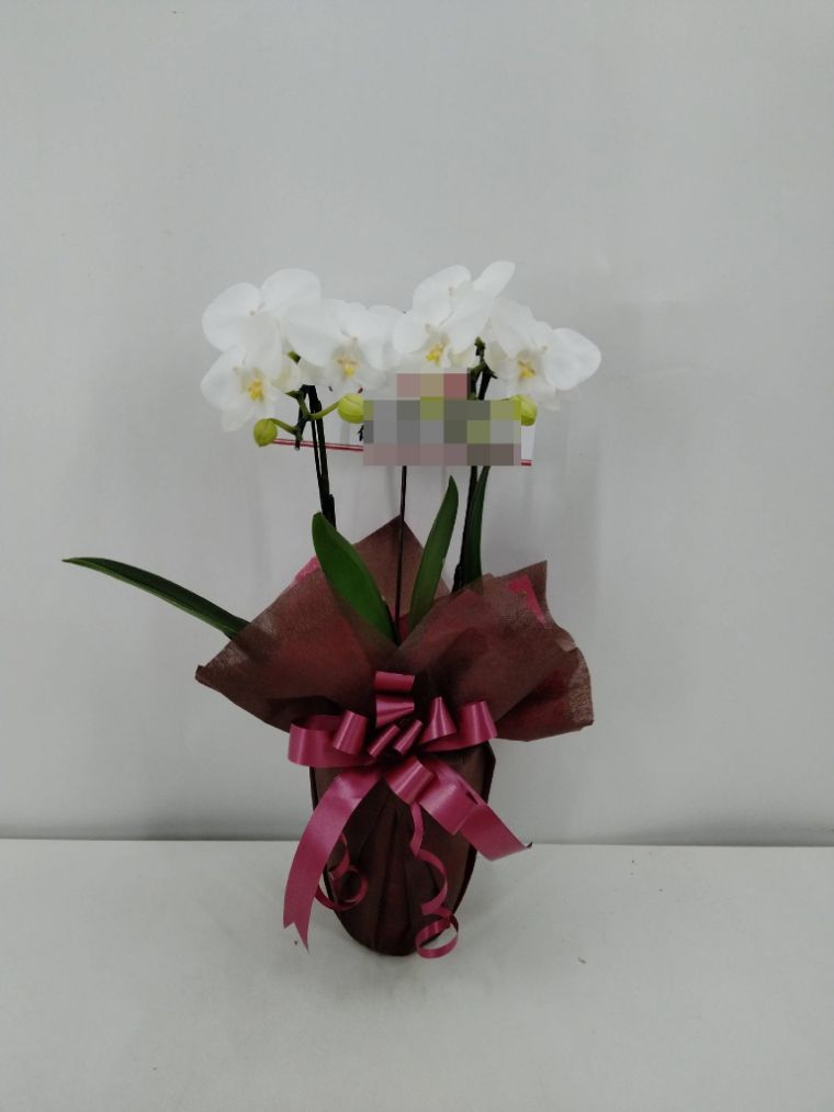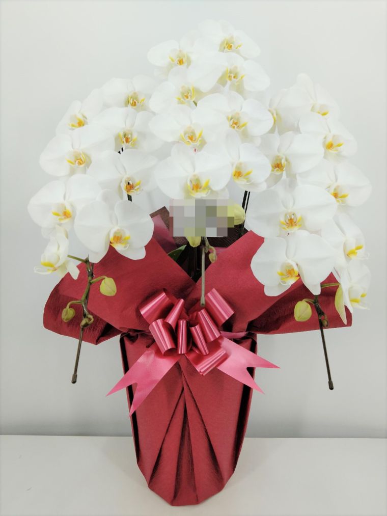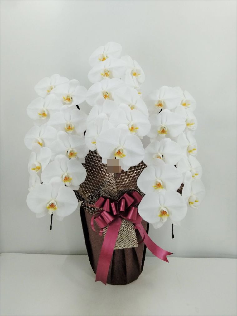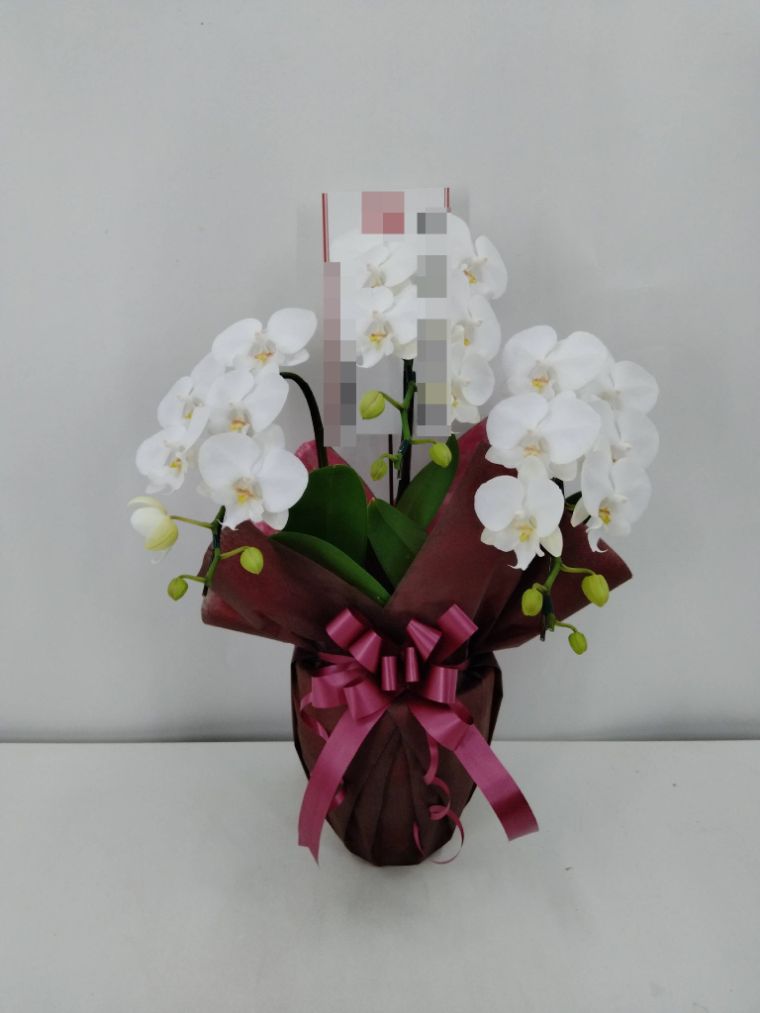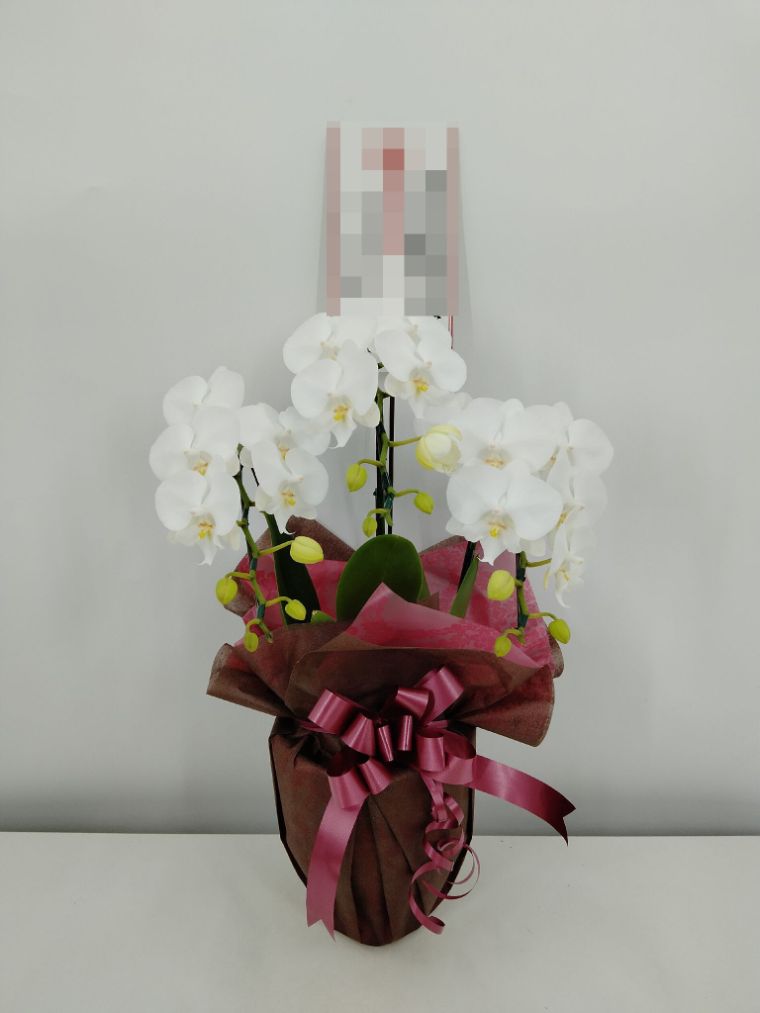 胡蝶蘭の実際にお届けした写真です。花秘書では発送前に写真をメールで送信致しますので安心して大切な顧客や取引様へのギフトにご利用頂けます。