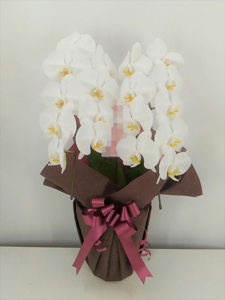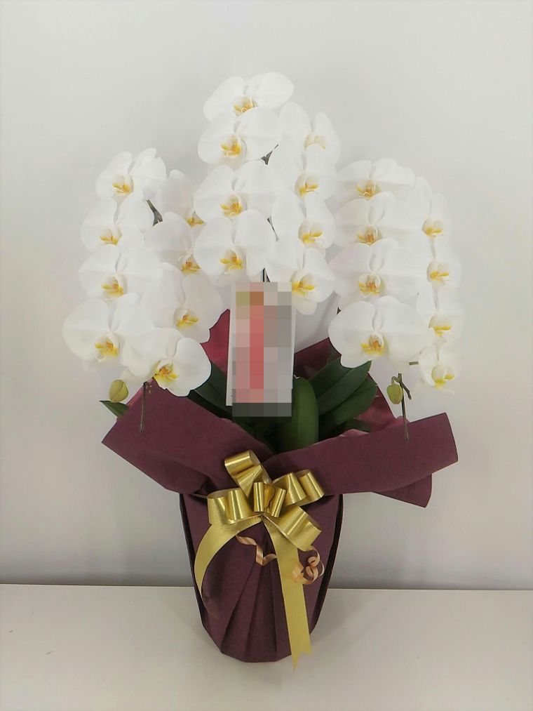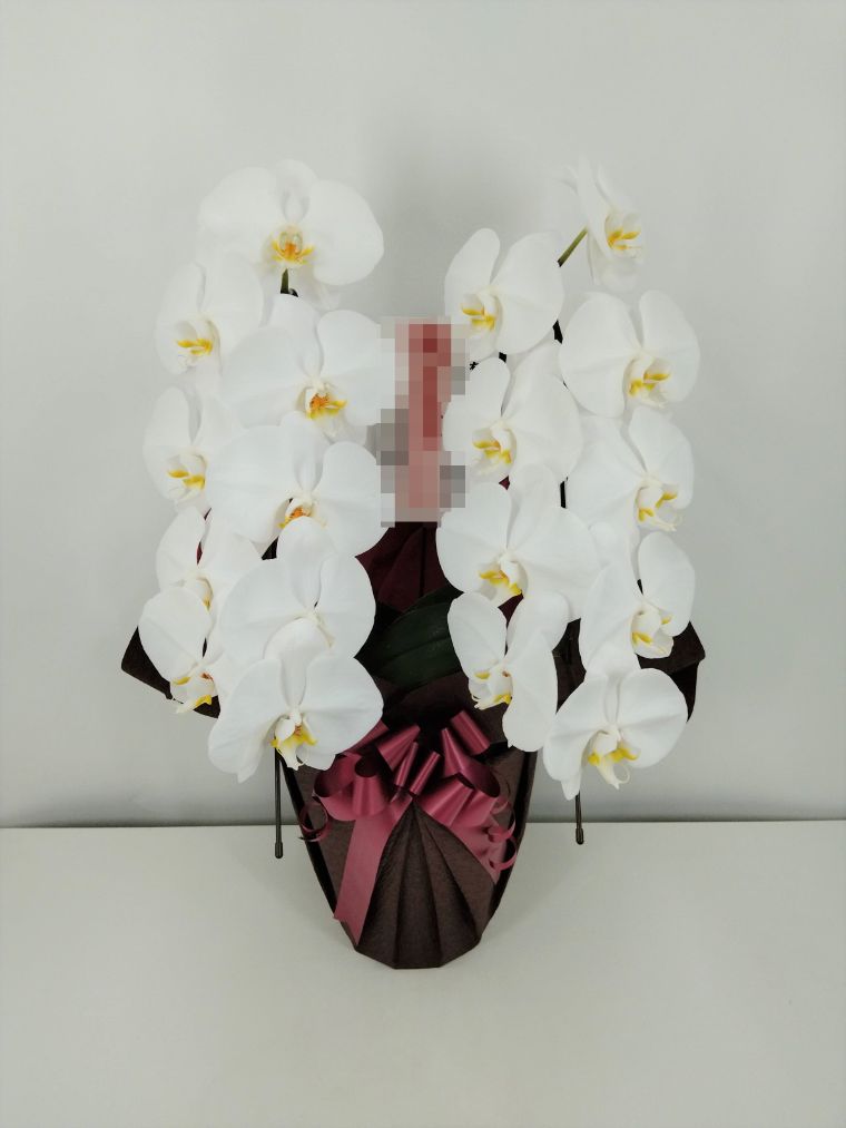 胡蝶蘭の実際にお届けした写真です。花秘書では発送前に写真をメールで送信致しますので安心して大切な顧客や取引様へのギフトにご利用頂けます。
