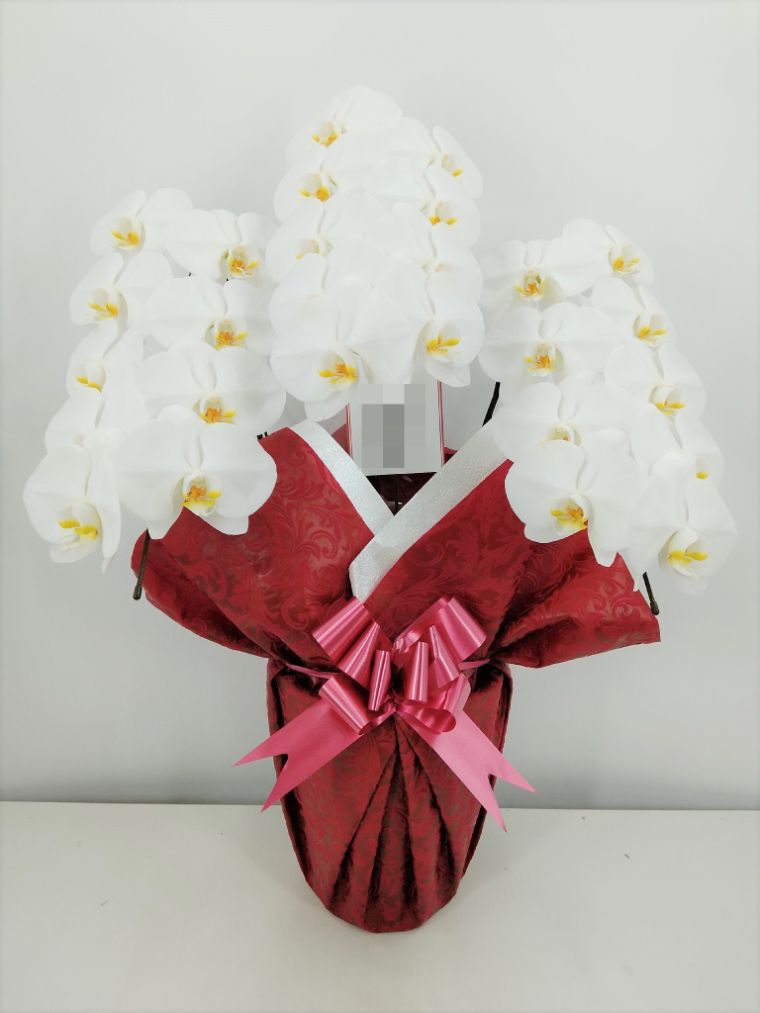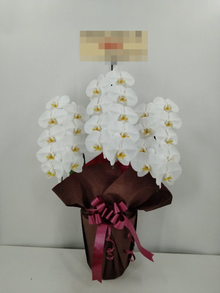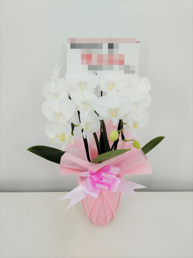 胡蝶蘭の実際にお届けした写真です。花秘書では発送前に写真をメールで送信致しますので安心して大切な顧客や取引様へのギフトにご利用頂けます。