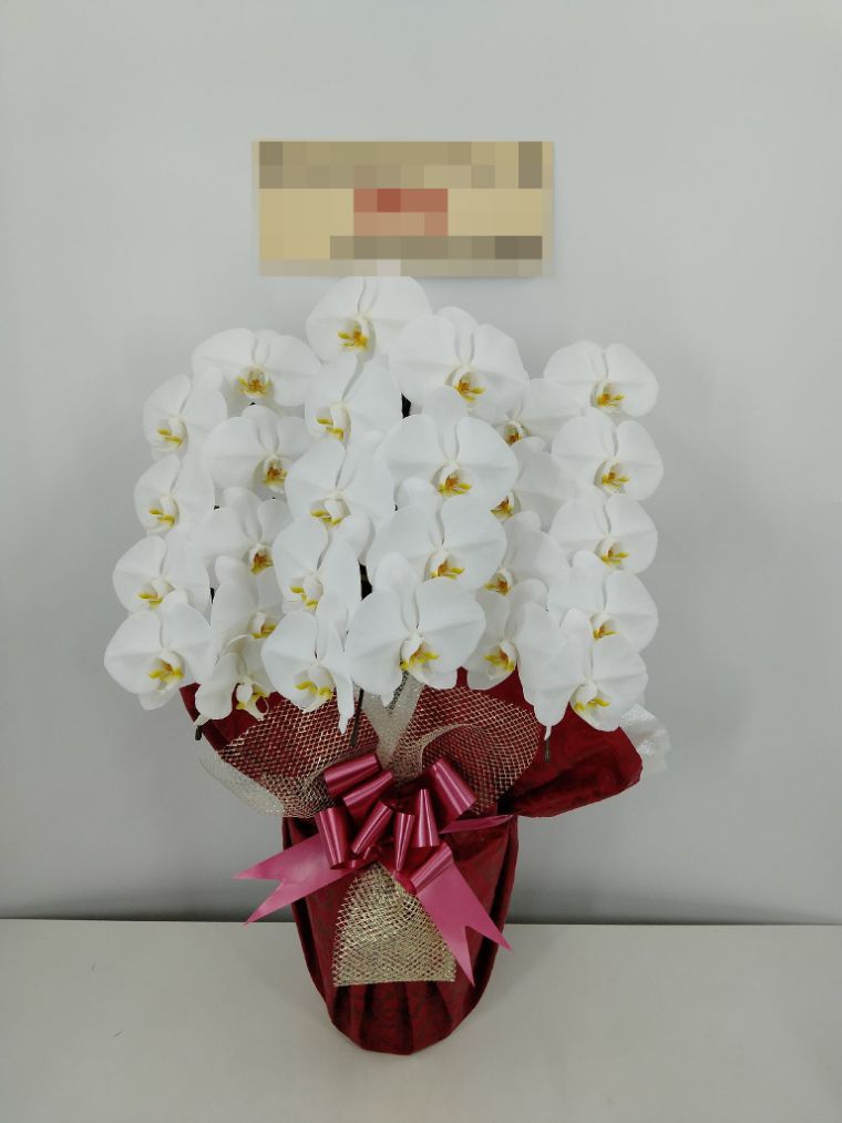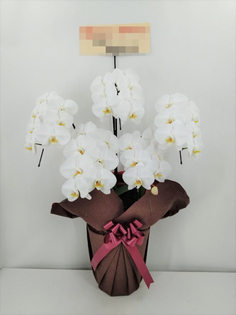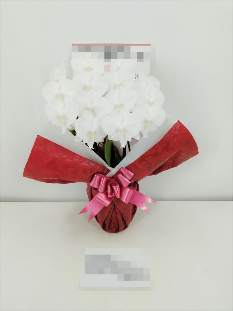 胡蝶蘭の実際にお届けした写真です。花秘書では発送前に写真をメールで送信致しますので安心して大切な顧客や取引様へのギフトにご利用頂けます。