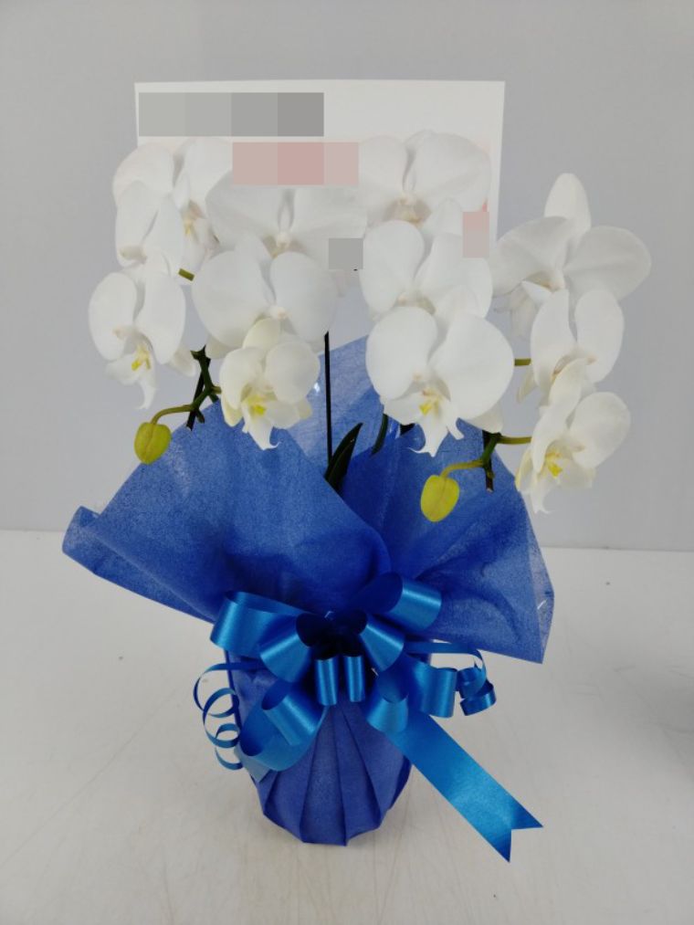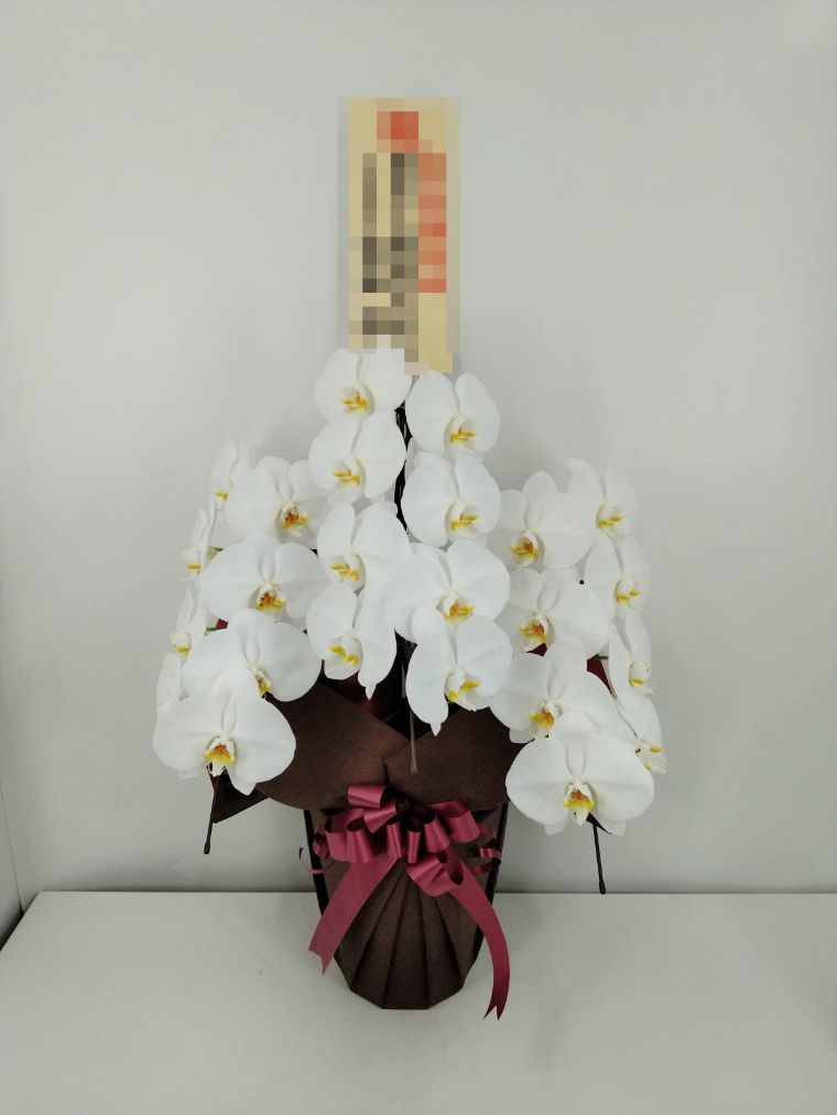 胡蝶蘭の実際にお届けした写真です。花秘書では発送前に写真をメールで送信致しますので安心して大切な顧客や取引様へのギフトにご利用頂けます。