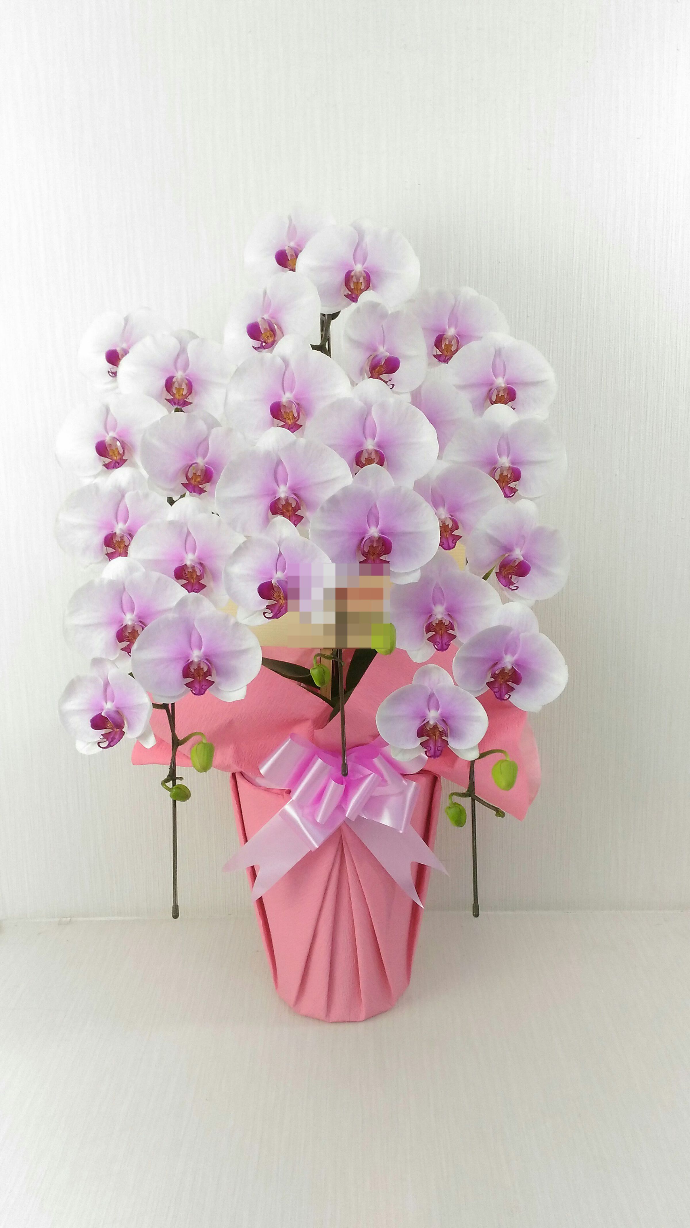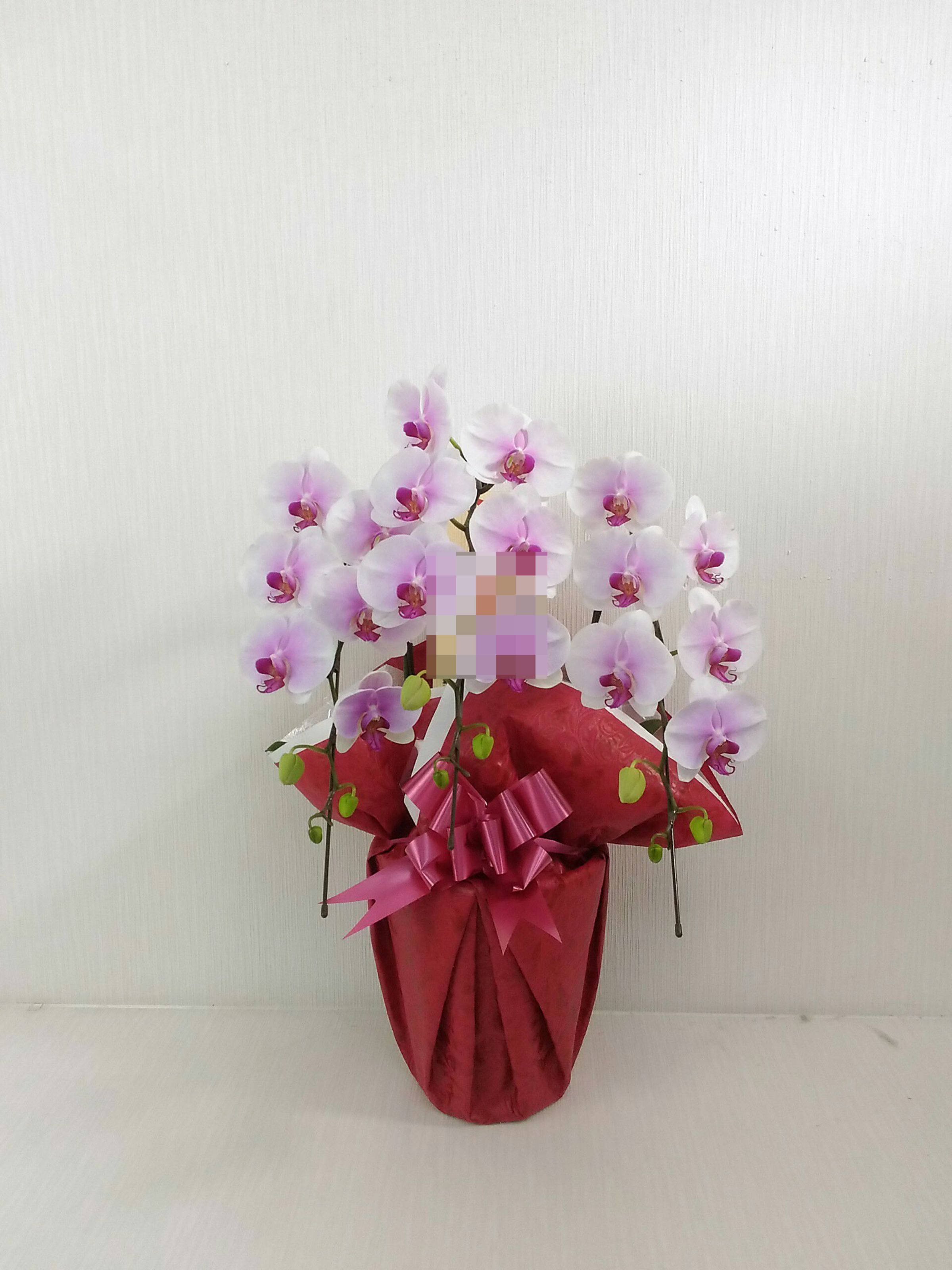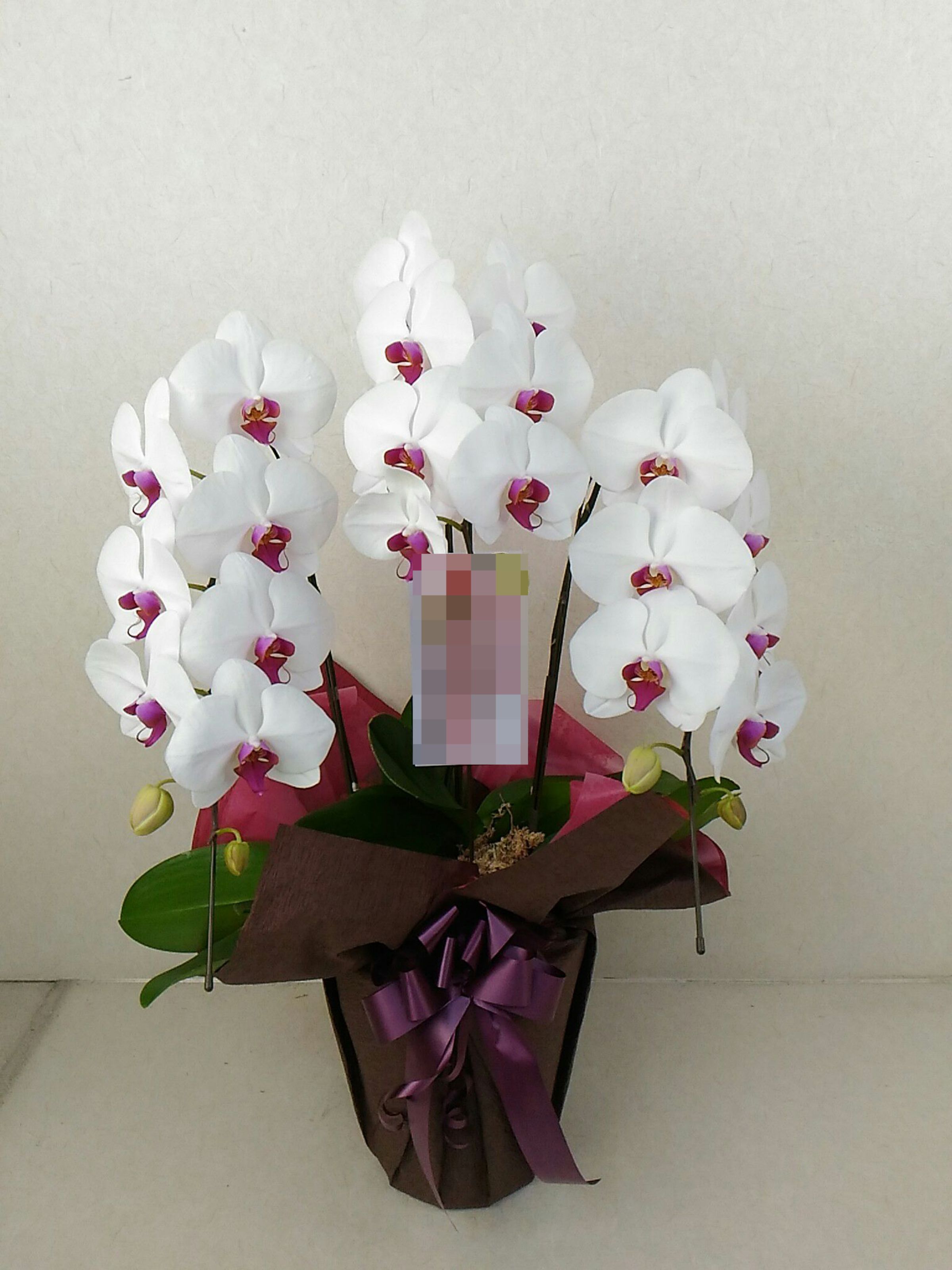 胡蝶蘭の実際にお届けした写真です。花秘書では発送前に写真をメールで送信致しますので安心して大切な顧客や取引様へのギフトにご利用頂けます。