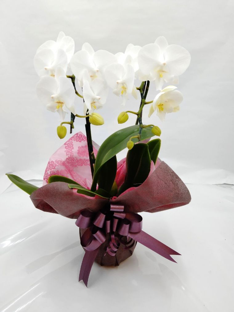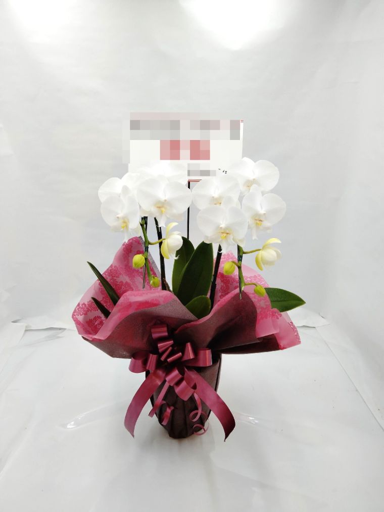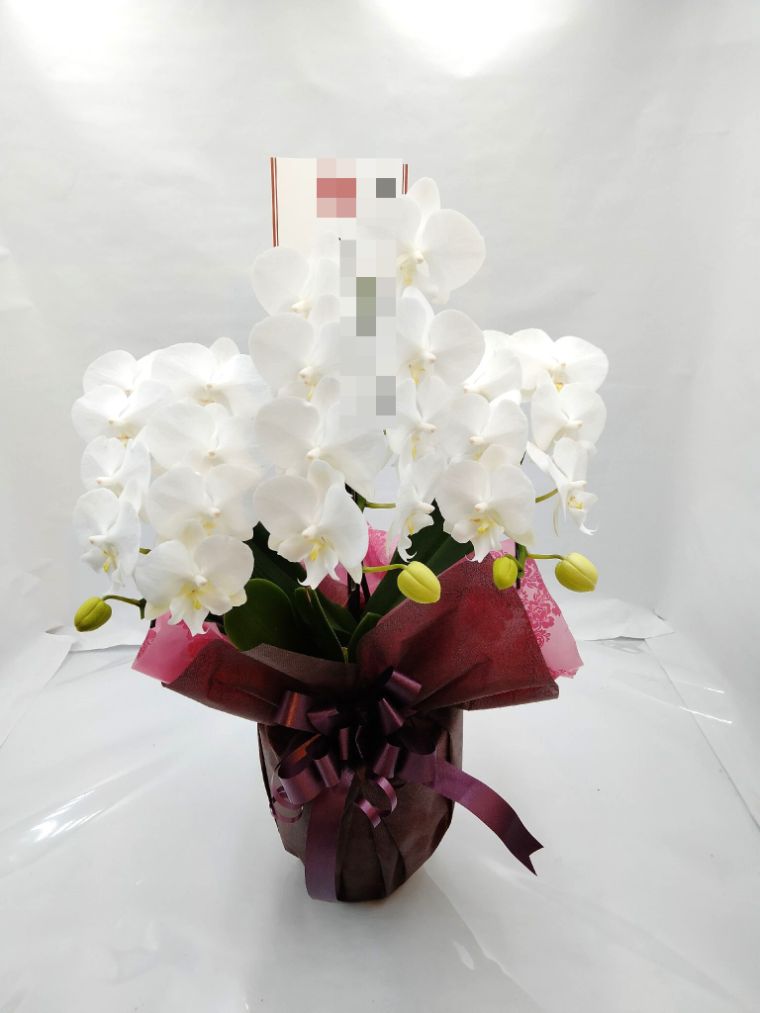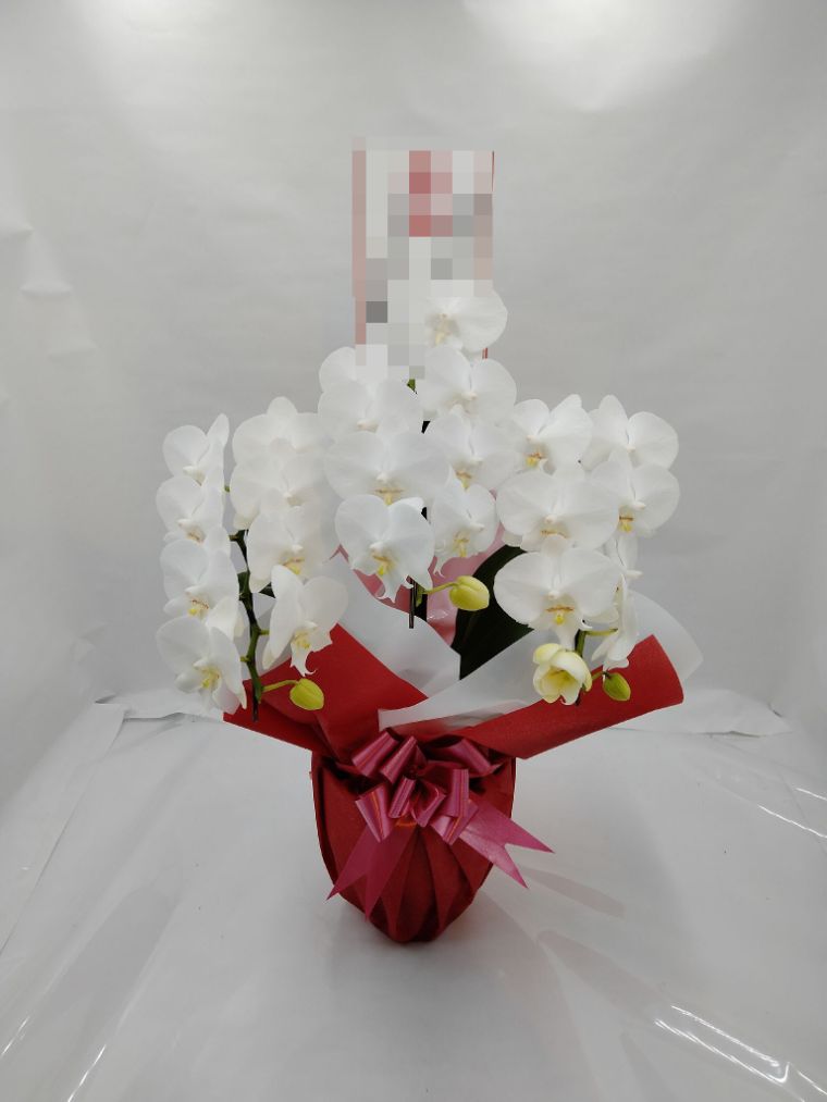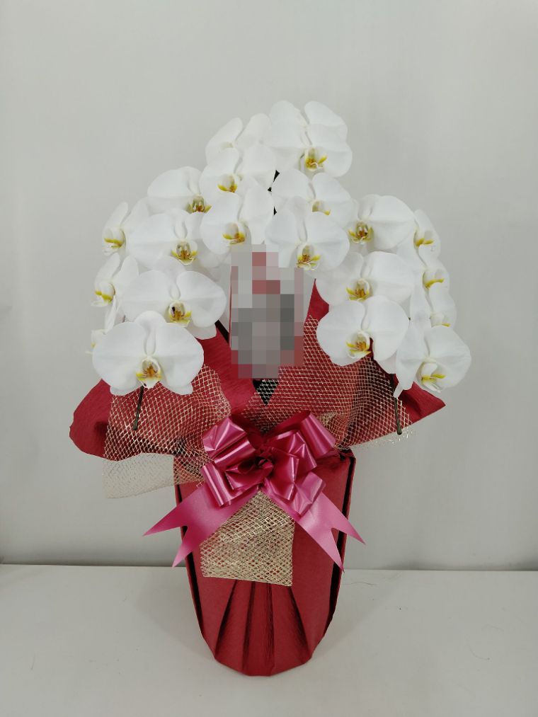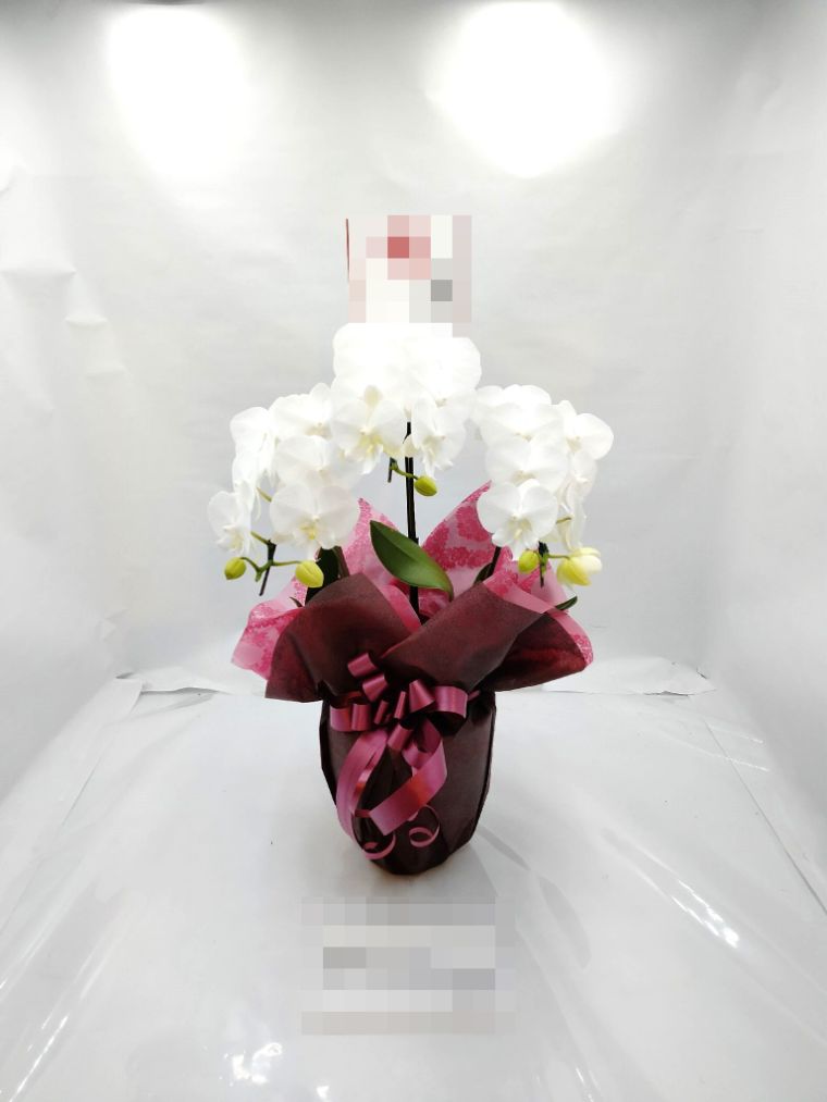 胡蝶蘭の実際にお届けした写真です。花秘書では発送前に写真をメールで送信致しますので安心して大切な顧客や取引様へのギフトにご利用頂けます。