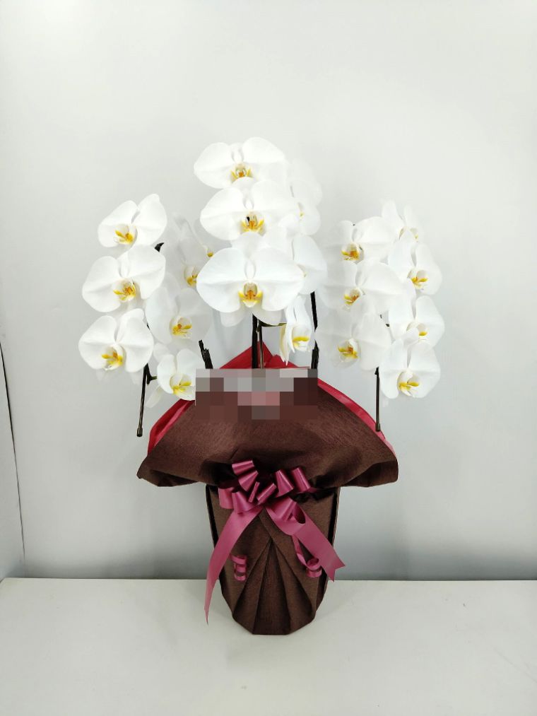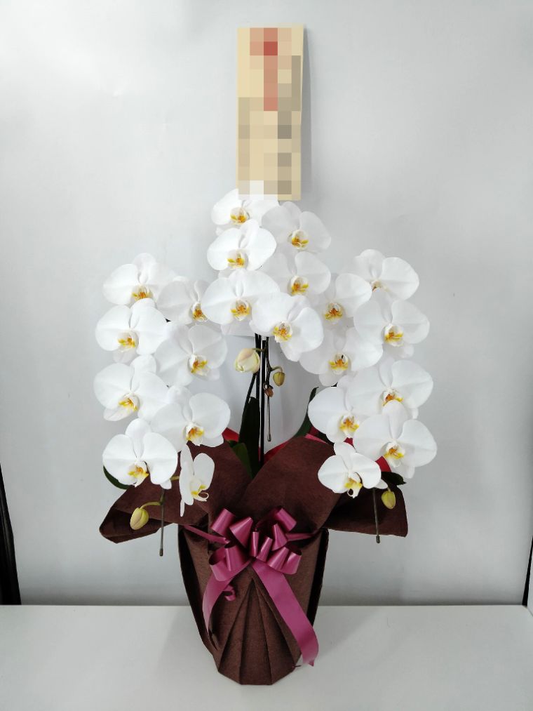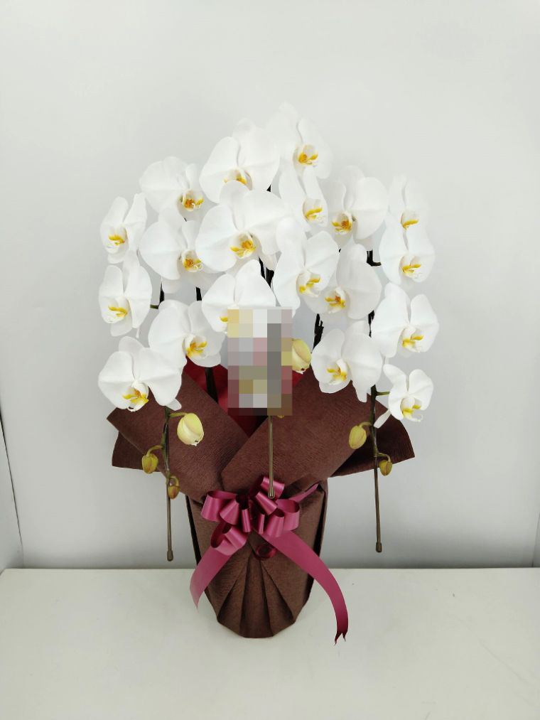 胡蝶蘭の実際にお届けした写真です。花秘書では発送前に写真をメールで送信致しますので安心して大切な顧客や取引様へのギフトにご利用頂けます。
