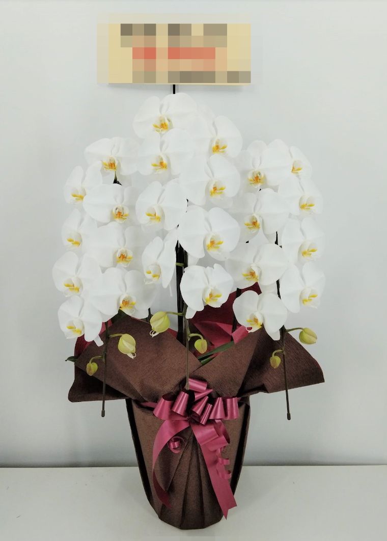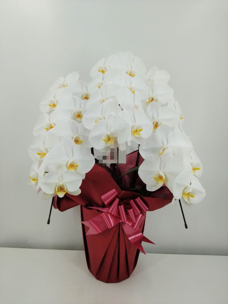 胡蝶蘭の実際にお届けした写真です。花秘書では発送前に写真をメールで送信致しますので安心して大切な顧客や取引様へのギフトにご利用頂けます。