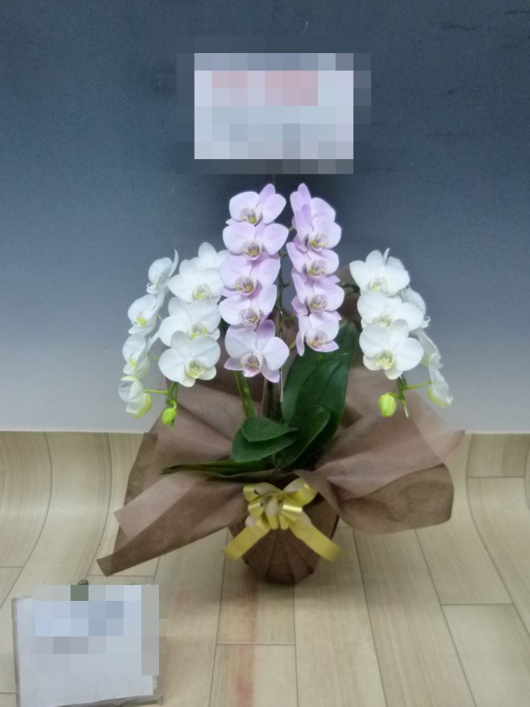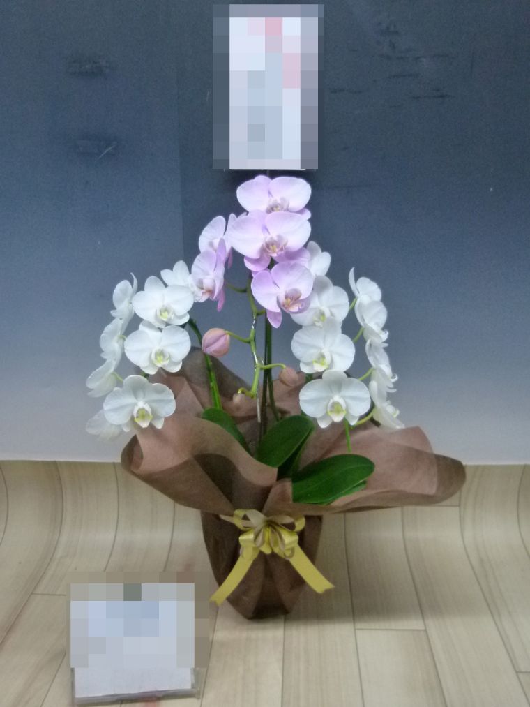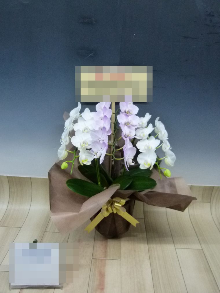 胡蝶蘭の実際にお届けした写真です。花秘書では発送前に写真をメールで送信致しますので安心して大切な顧客や取引様へのギフトにご利用頂けます。