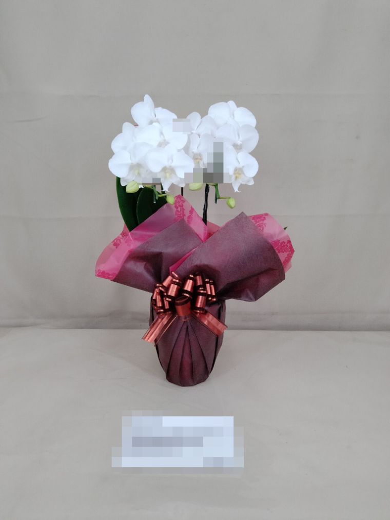 胡蝶蘭の実際にお届けした写真です。花秘書では発送前に写真をメールで送信致しますので安心して大切な顧客や取引様へのギフトにご利用頂けます。