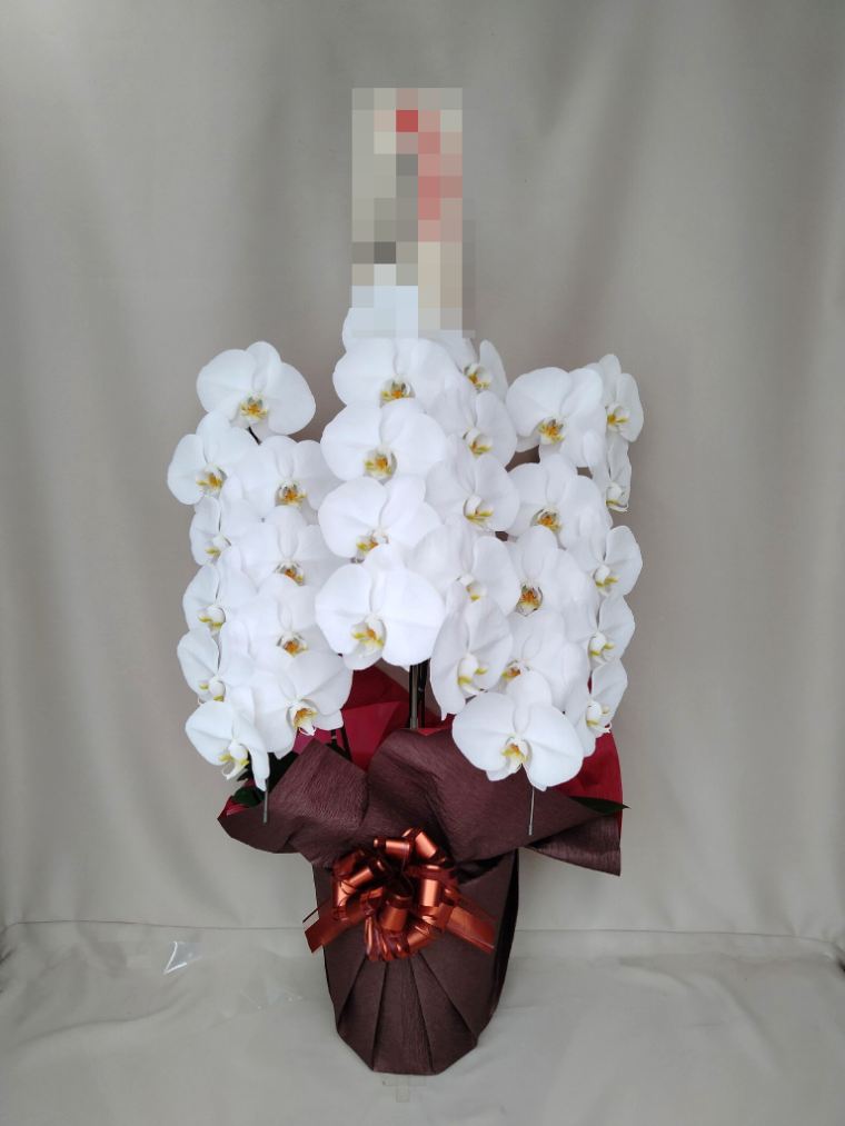 胡蝶蘭の実際にお届けした写真です。花秘書では発送前に写真をメールで送信致しますので安心して大切な顧客や取引様へのギフトにご利用頂けます。