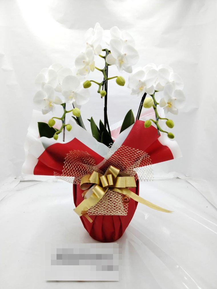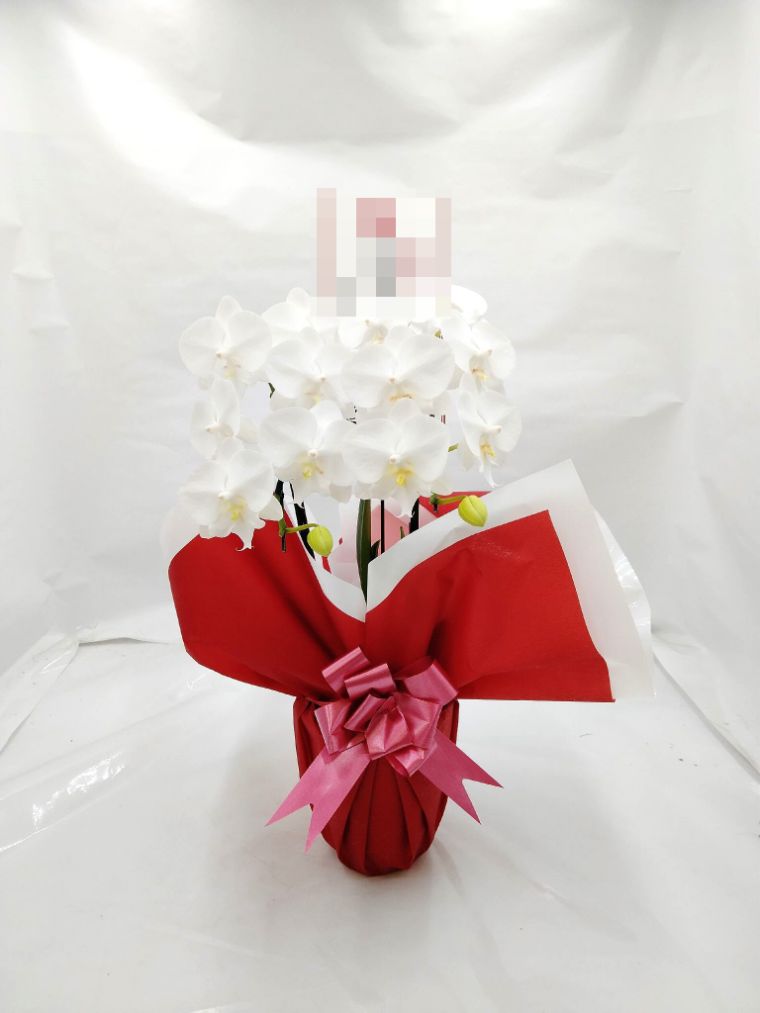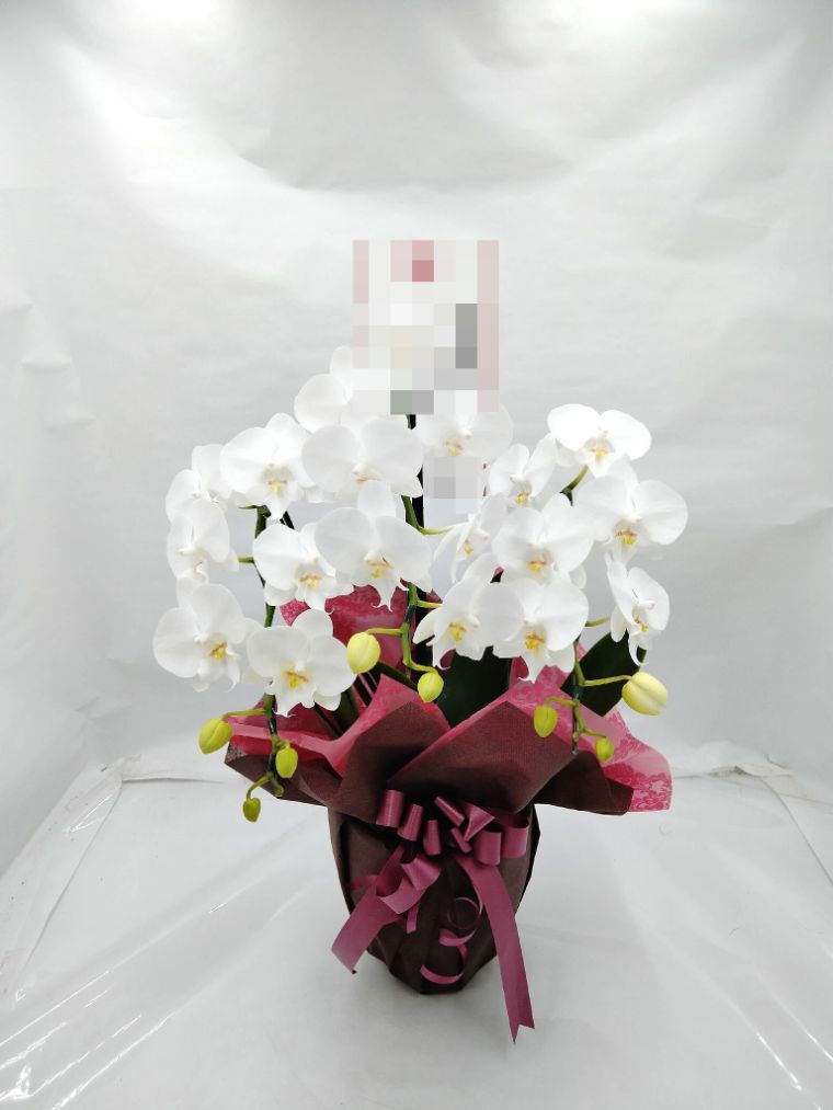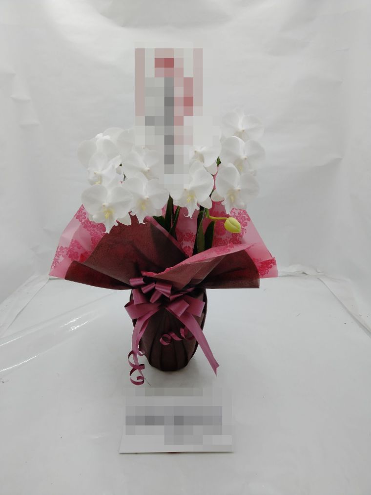 胡蝶蘭の実際にお届けした写真です。花秘書では発送前に写真をメールで送信致しますので安心して大切な顧客や取引様へのギフトにご利用頂けます。