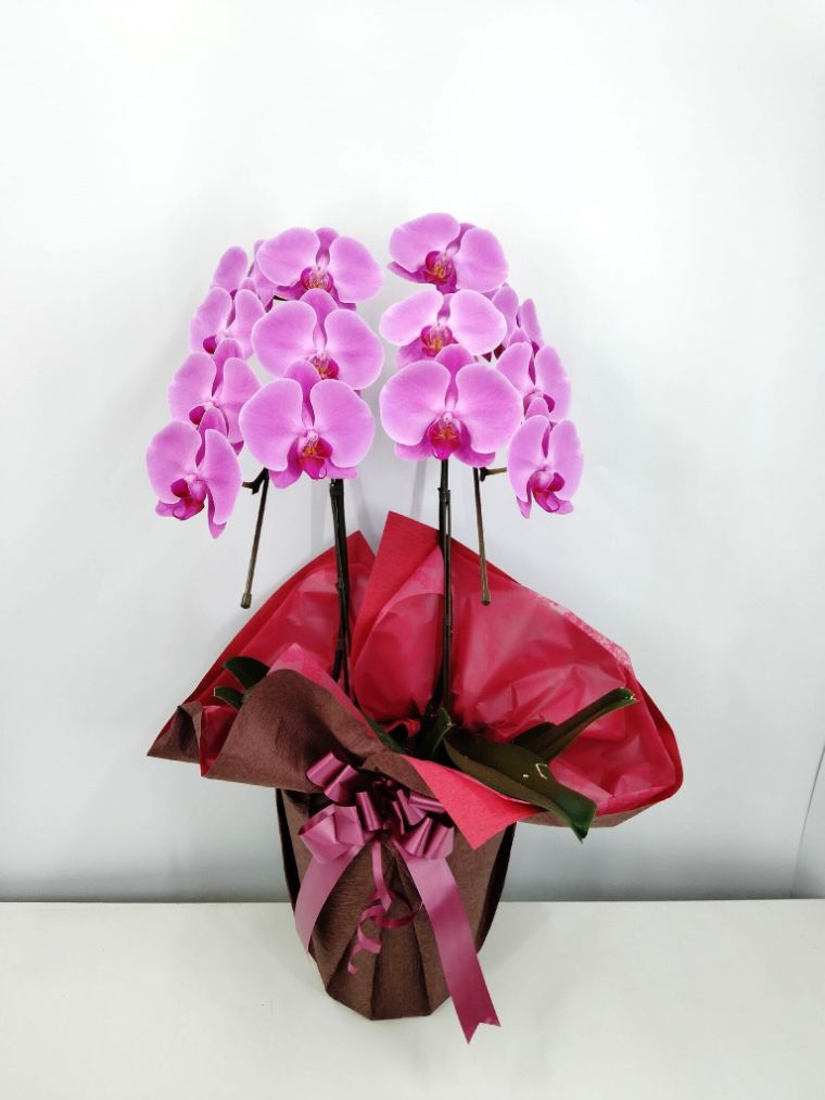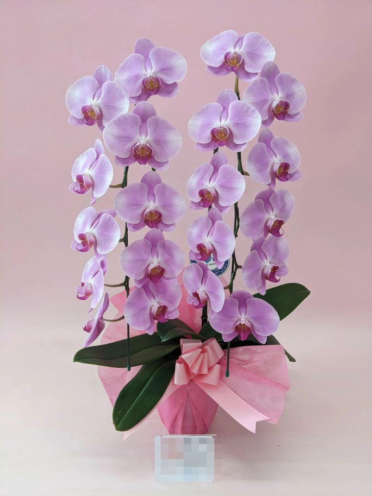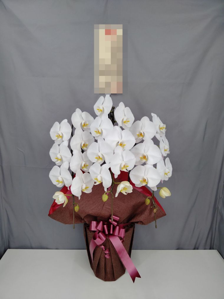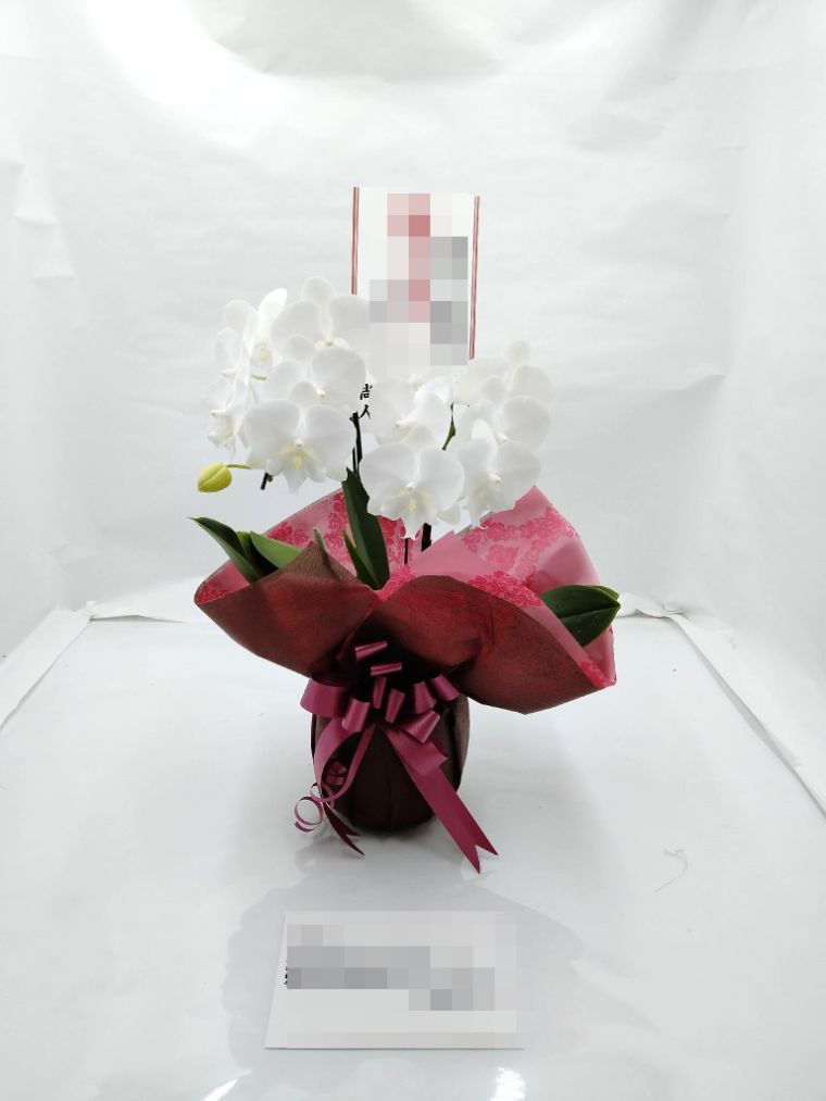 胡蝶蘭の実際にお届けした写真です。花秘書では発送前に写真をメールで送信致しますので安心して大切な顧客や取引様へのギフトにご利用頂けます。