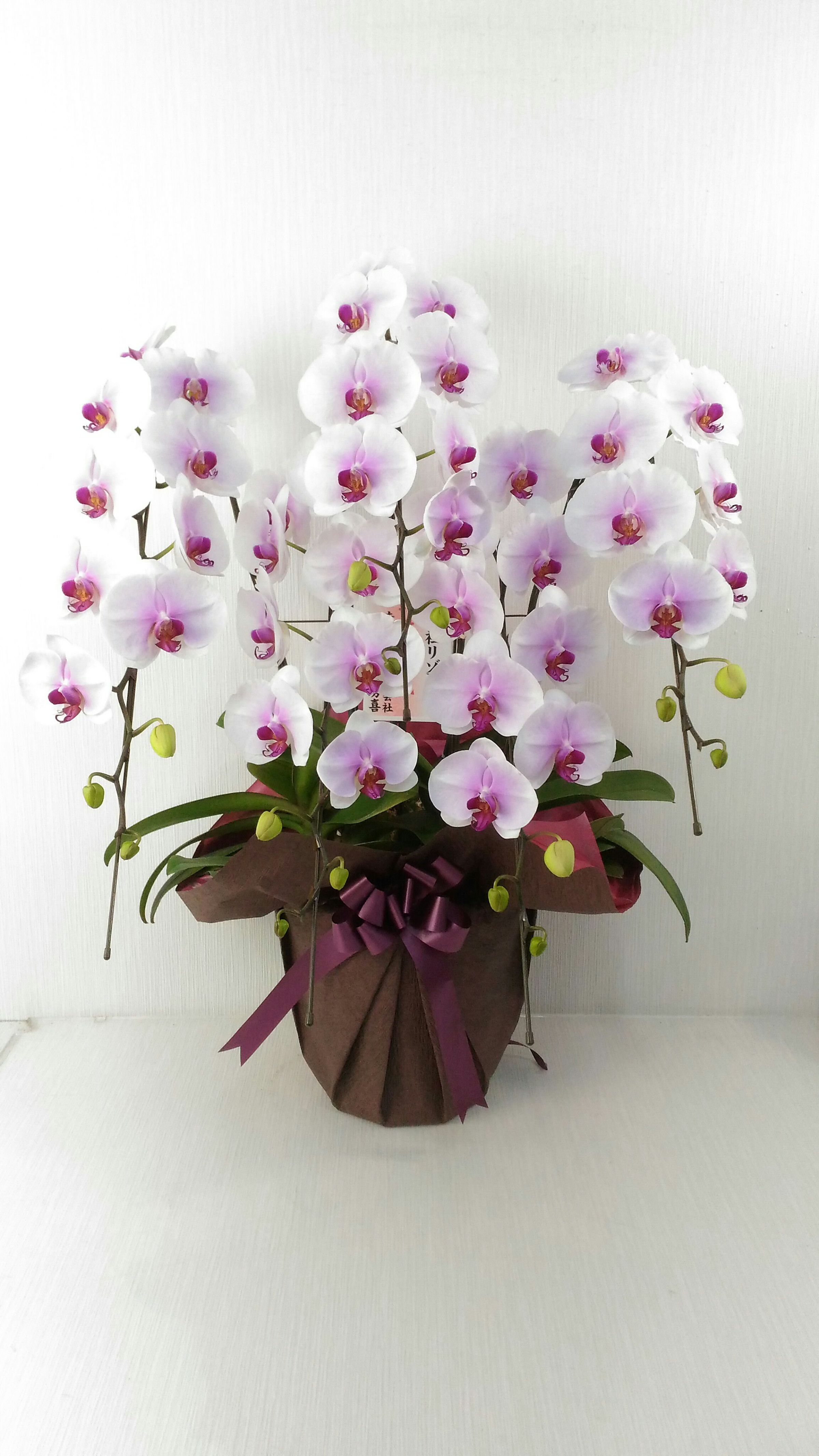 胡蝶蘭の実際にお届けした写真です。花秘書では発送前に写真をメールで送信致しますので安心して大切な顧客や取引様へのギフトにご利用頂けます。