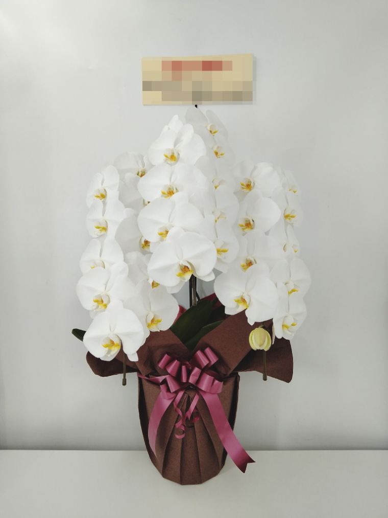 胡蝶蘭の実際にお届けした写真です。花秘書では発送前に写真をメールで送信致しますので安心して大切な顧客や取引様へのギフトにご利用頂けます。