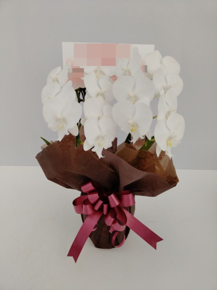 胡蝶蘭の実際にお届けした写真です。花秘書では発送前に写真をメールで送信致しますので安心して大切な顧客や取引様へのギフトにご利用頂けます。