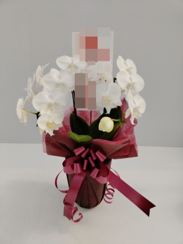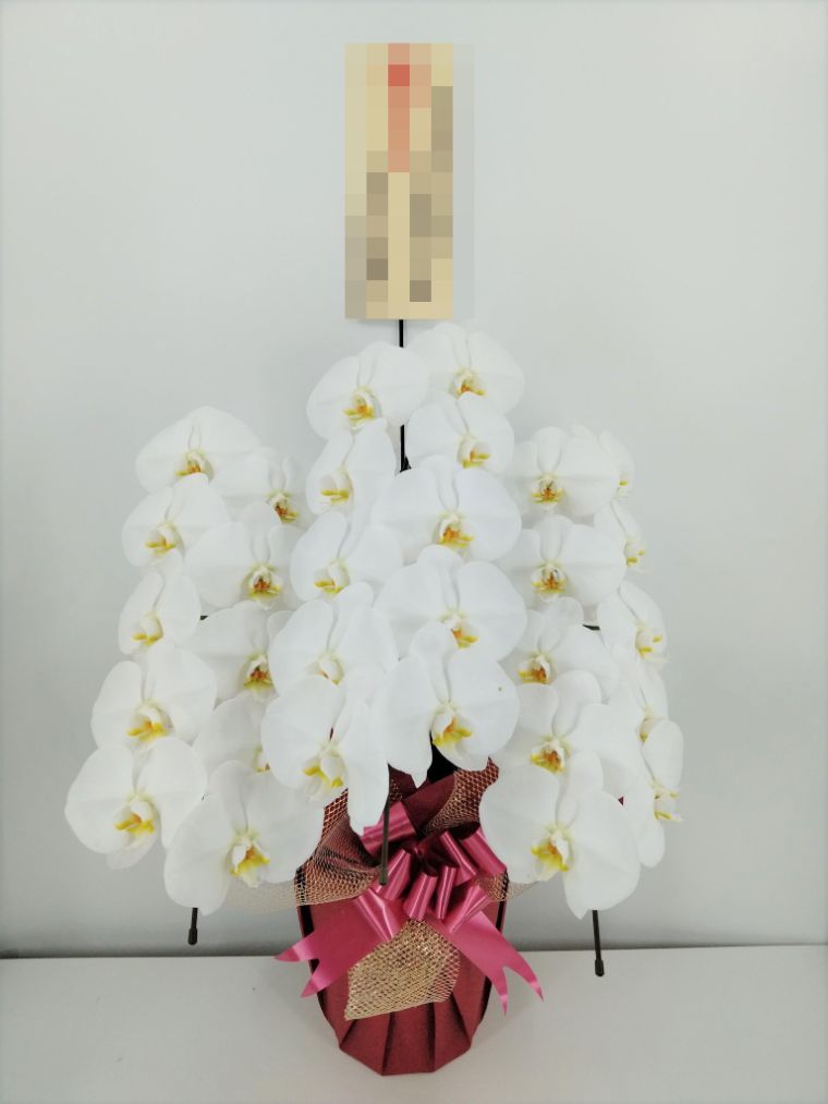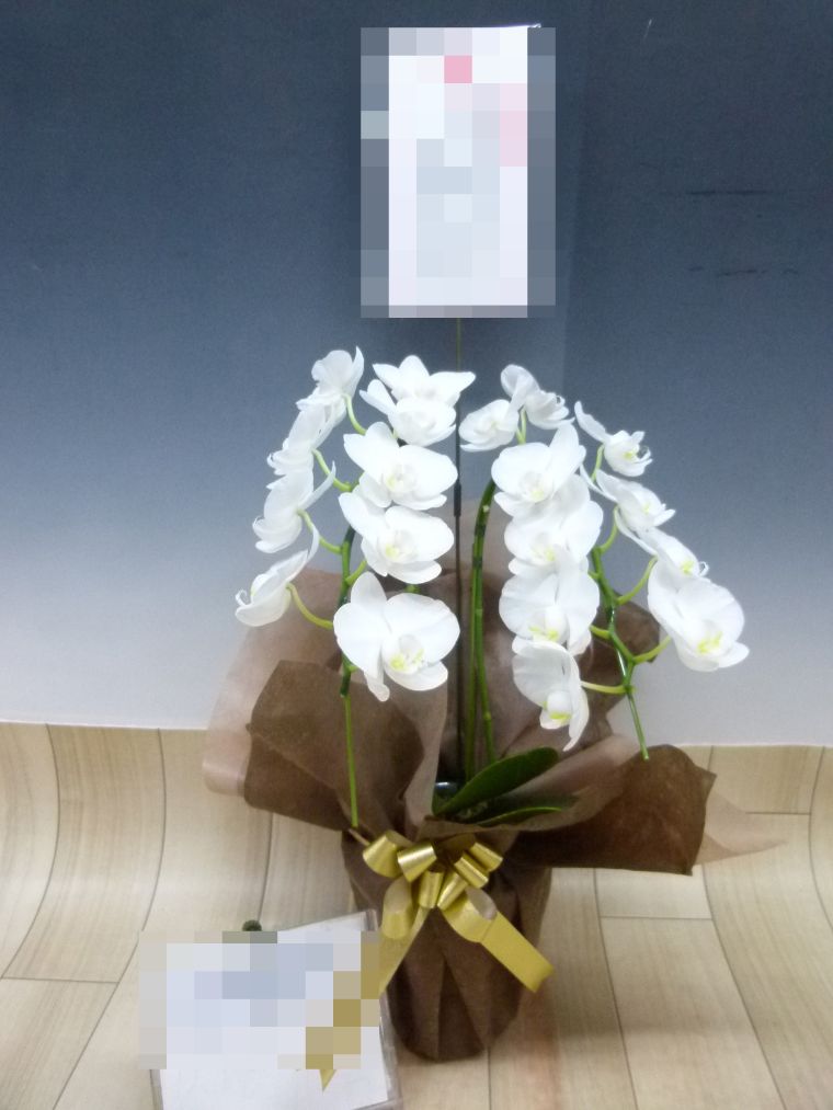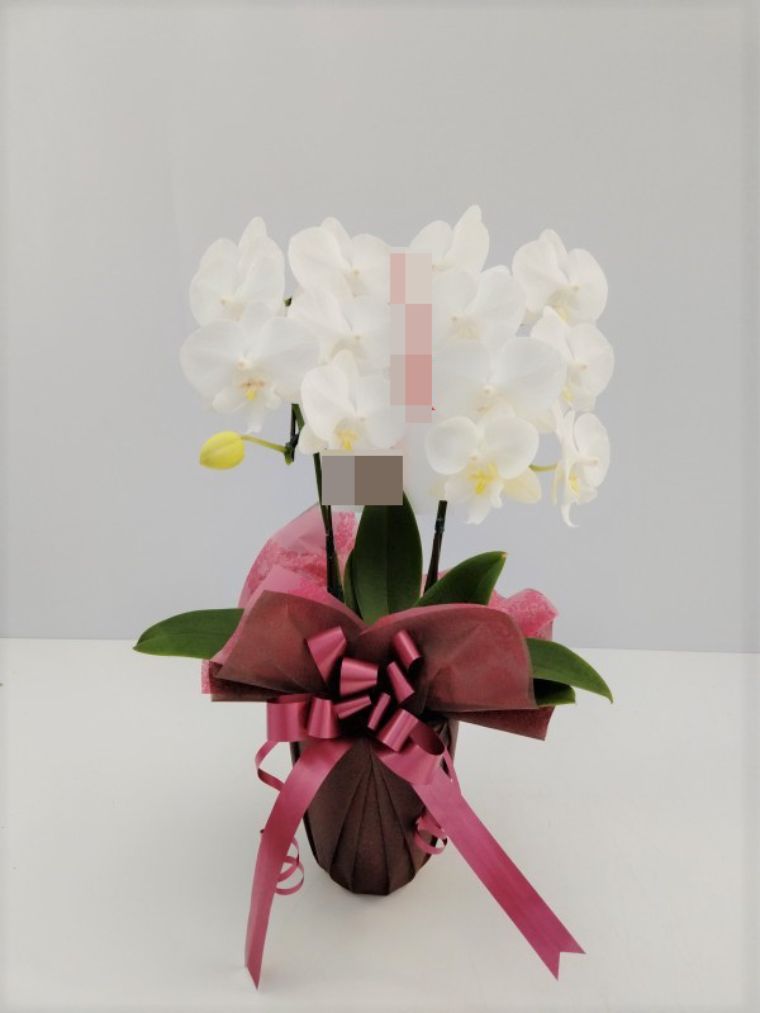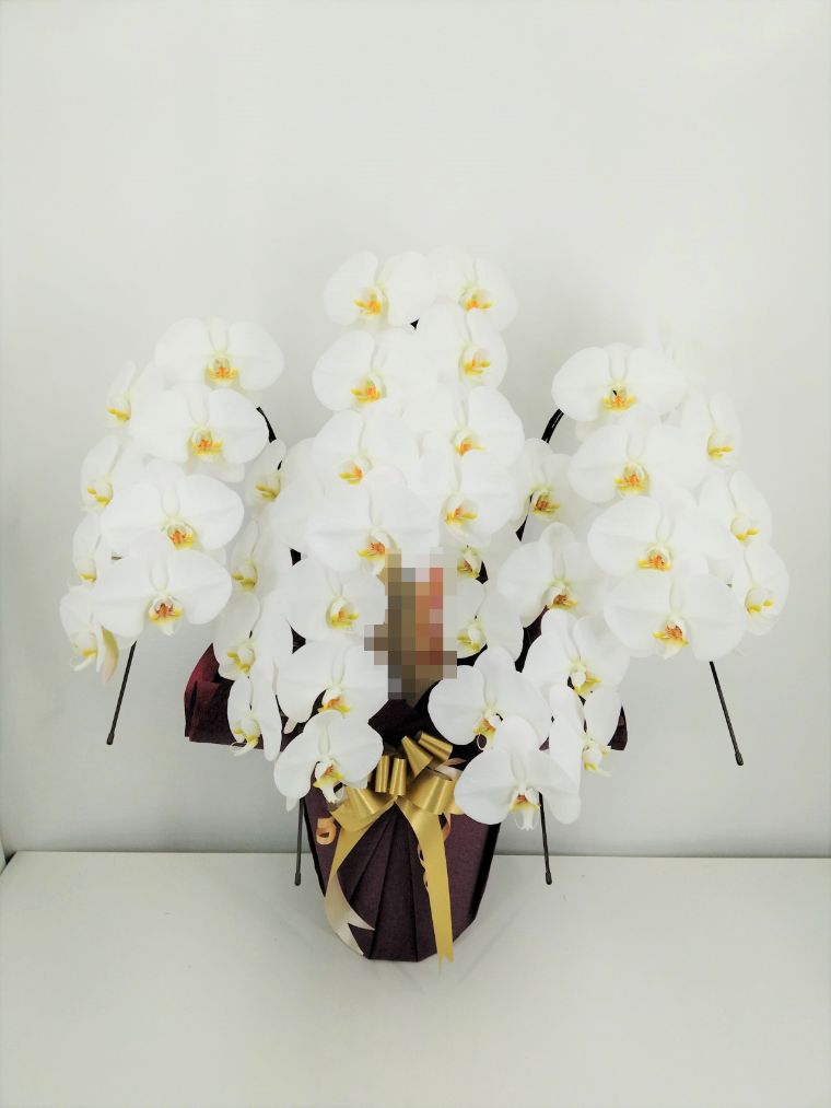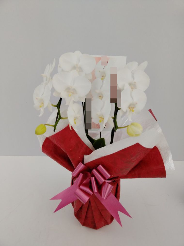 胡蝶蘭の実際にお届けした写真です。花秘書では発送前に写真をメールで送信致しますので安心して大切な顧客や取引様へのギフトにご利用頂けます。