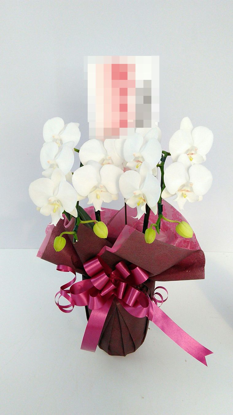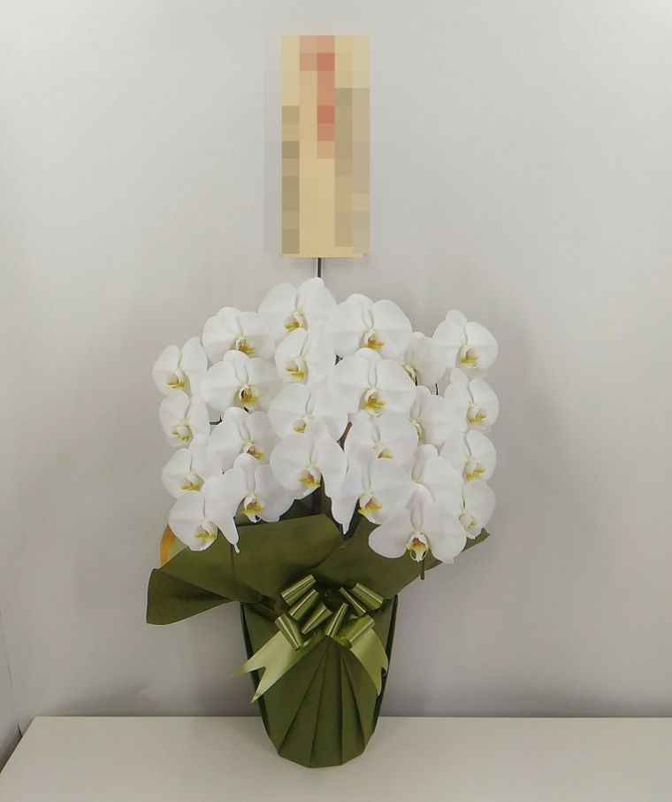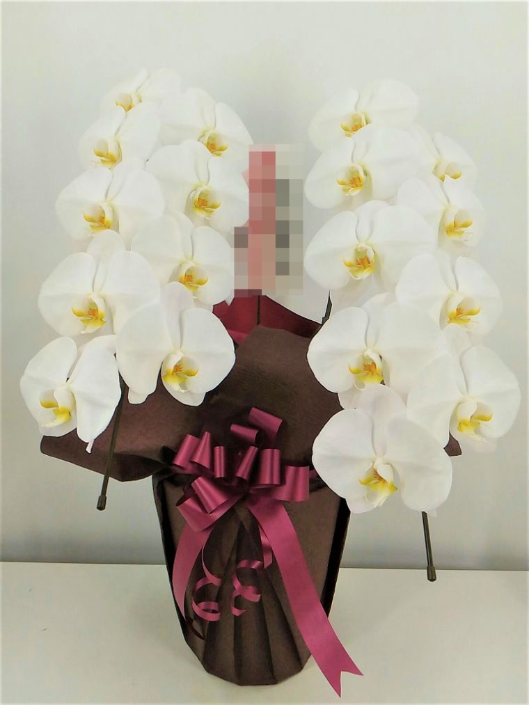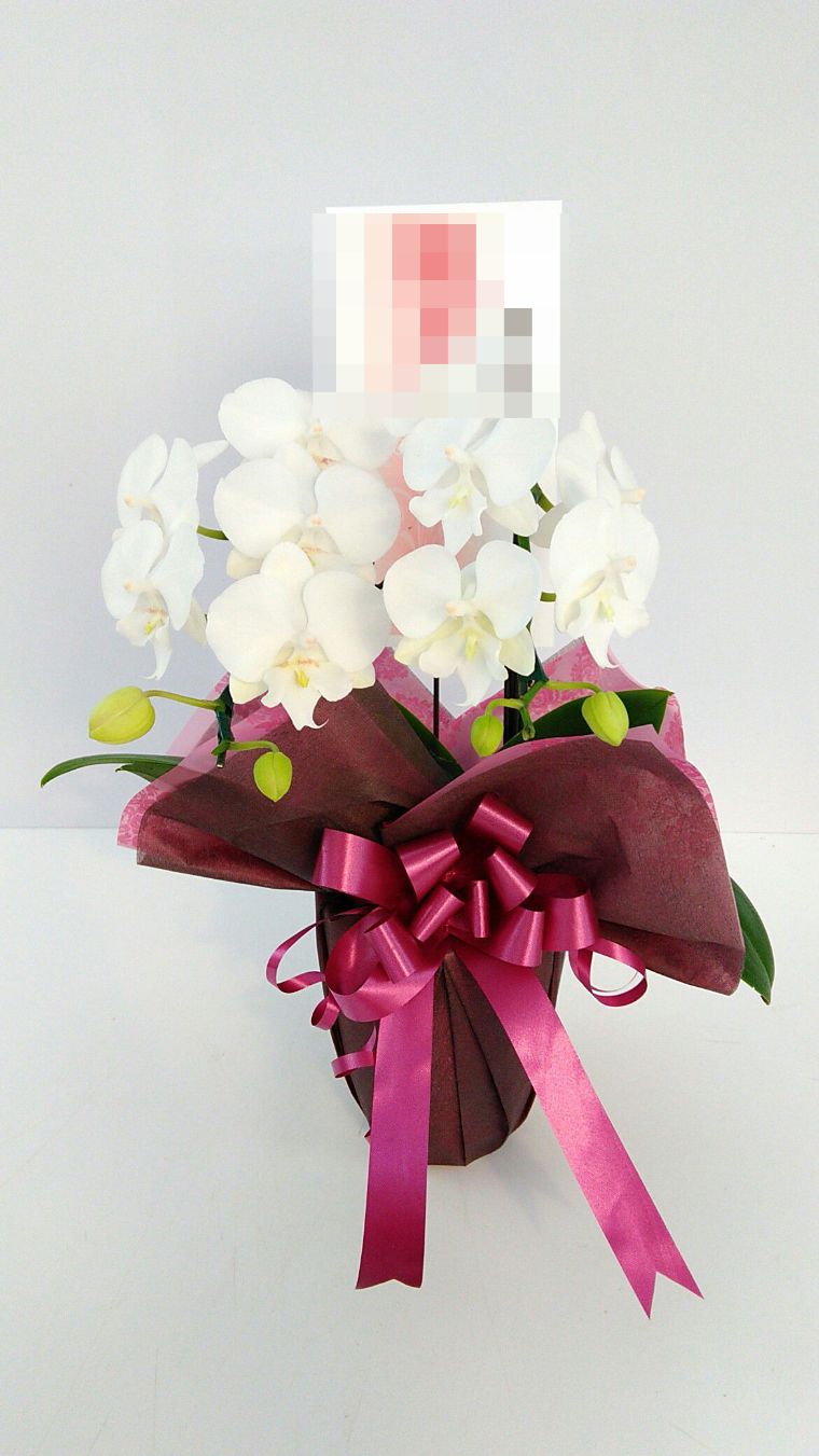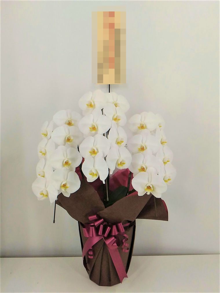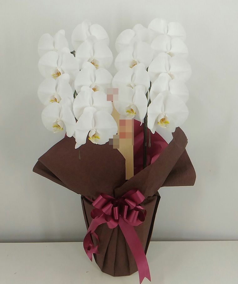 胡蝶蘭の実際にお届けした写真です。花秘書では発送前に写真をメールで送信致しますので安心して大切な顧客や取引様へのギフトにご利用頂けます。
