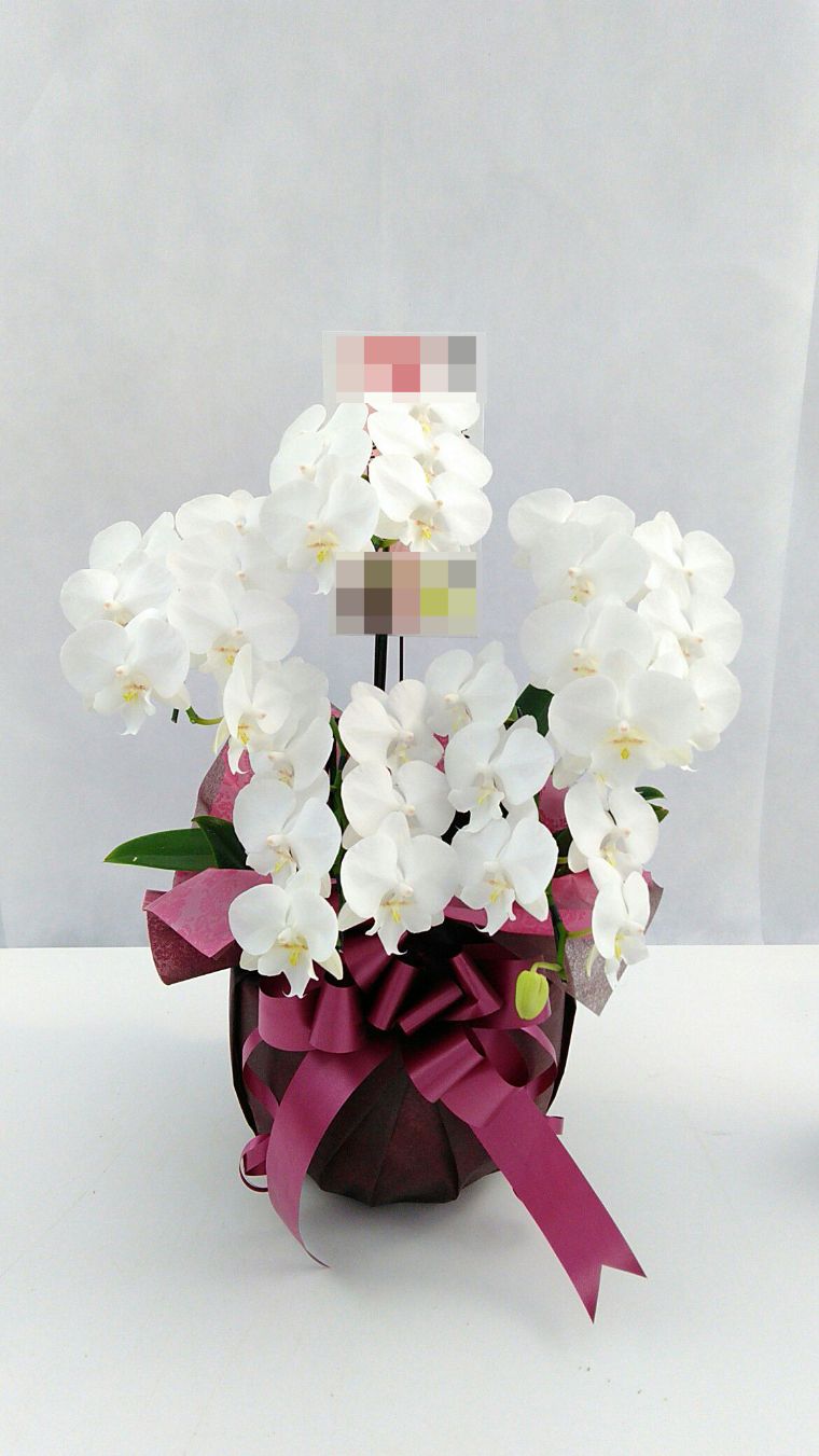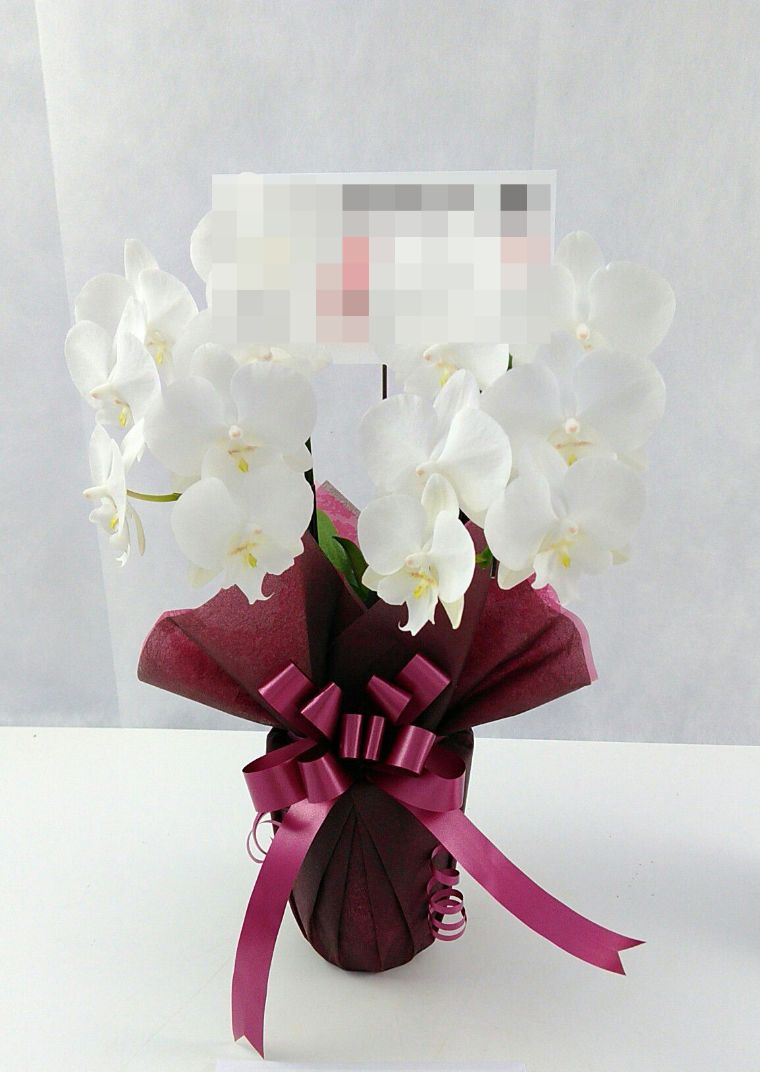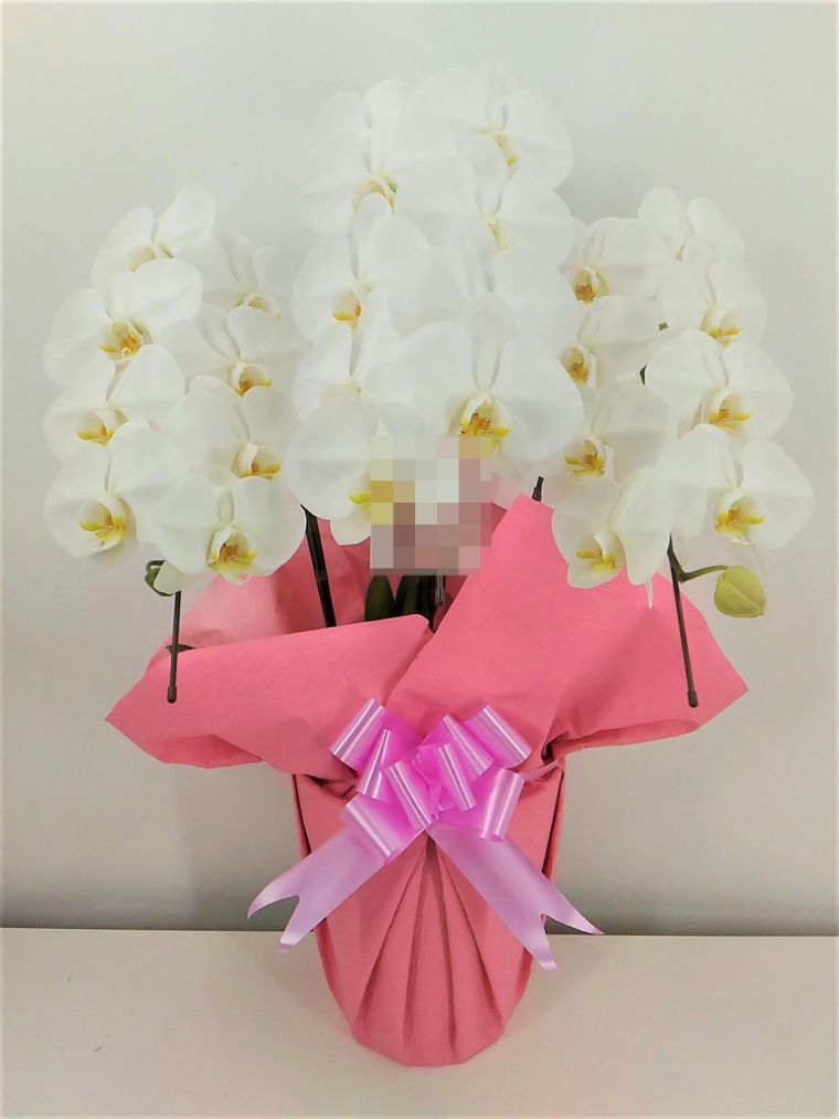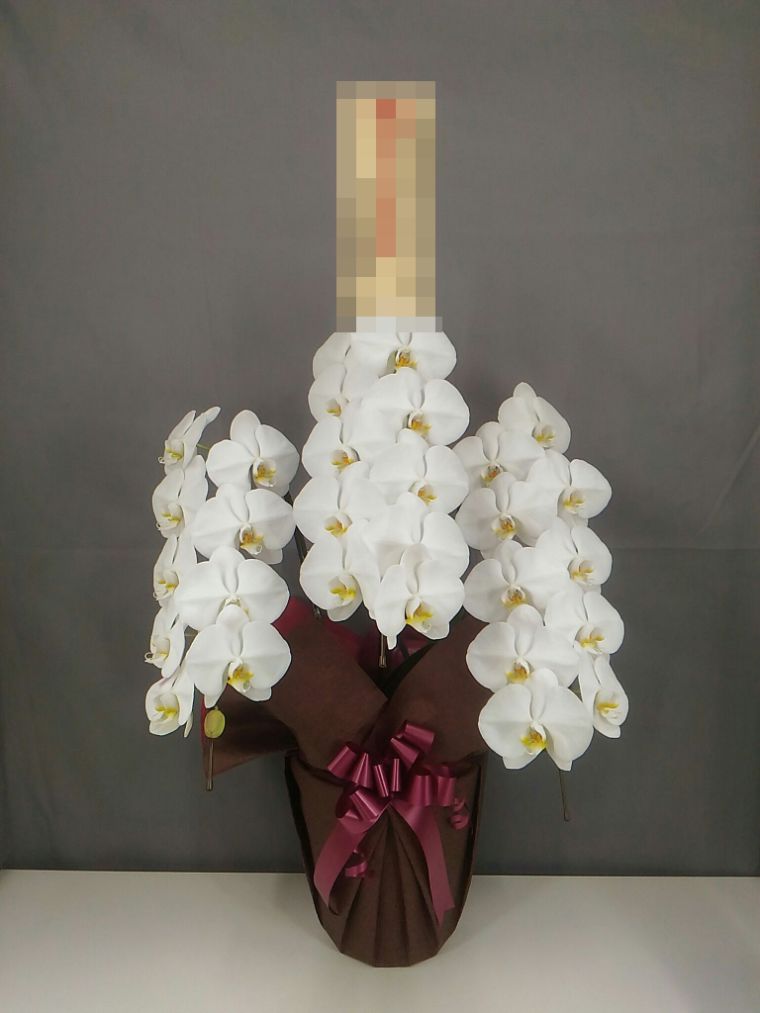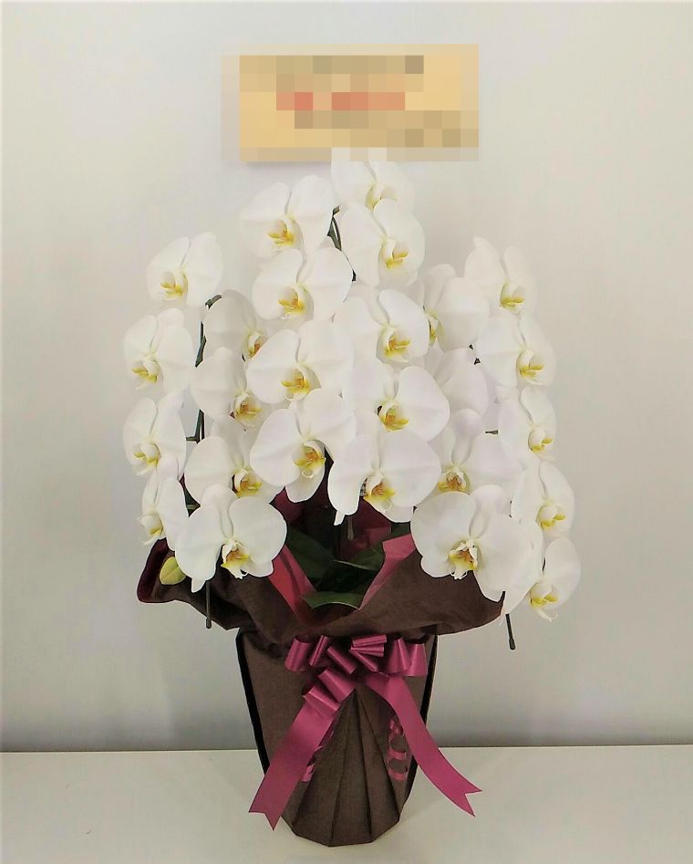 胡蝶蘭の実際にお届けした写真です。花秘書では発送前に写真をメールで送信致しますので安心して大切な顧客や取引様へのギフトにご利用頂けます。