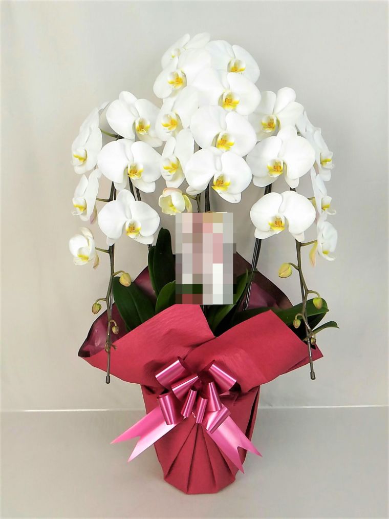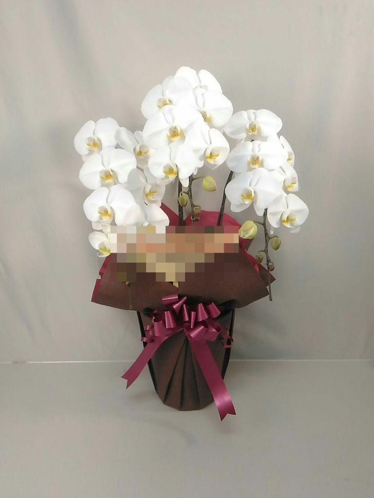 胡蝶蘭の実際にお届けした写真です。花秘書では発送前に写真をメールで送信致しますので安心して大切な顧客や取引様へのギフトにご利用頂けます。