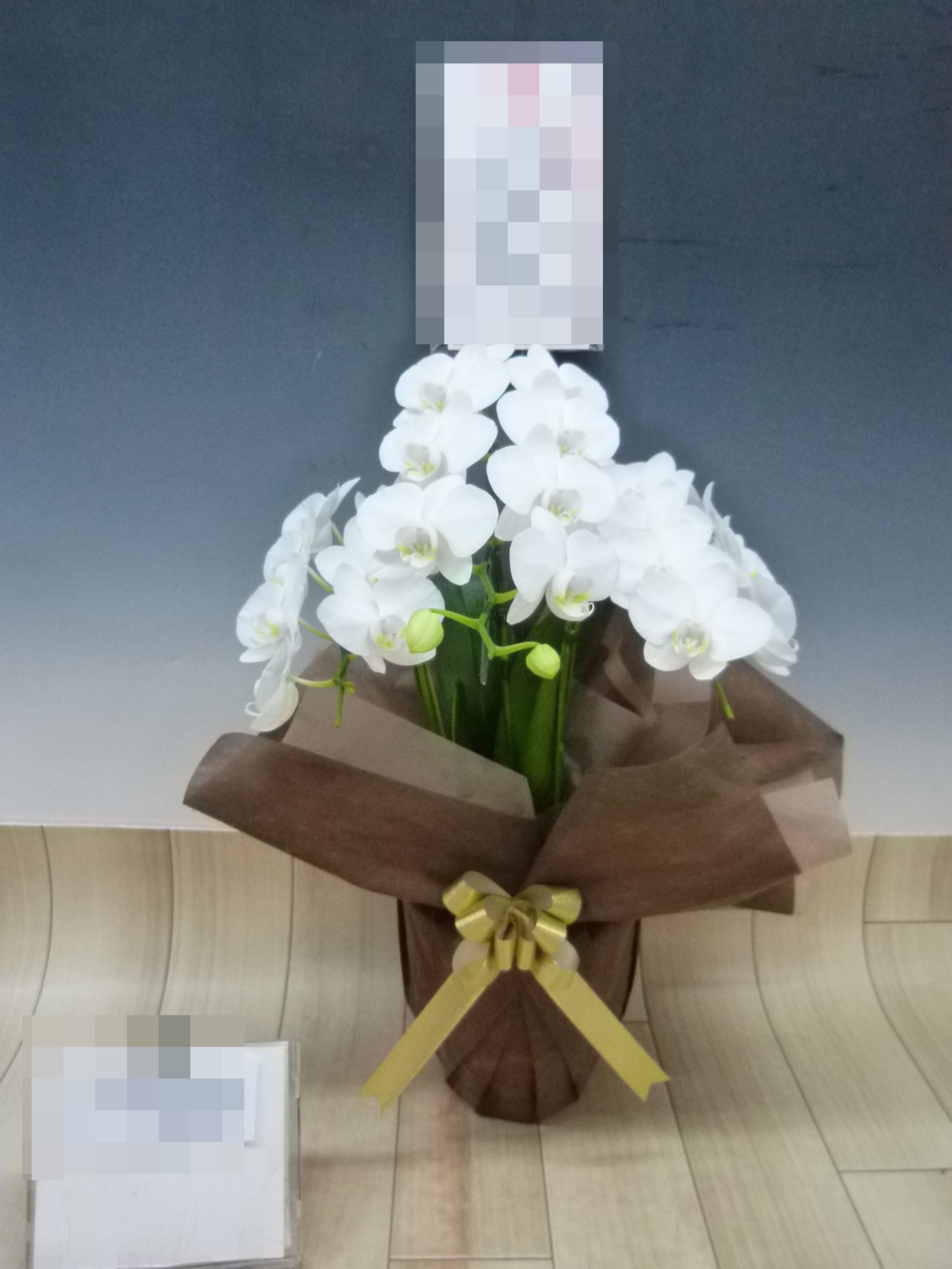 胡蝶蘭の実際にお届けした写真です。花秘書では発送前に写真をメールで送信致しますので安心して大切な顧客や取引様へのギフトにご利用頂けます。