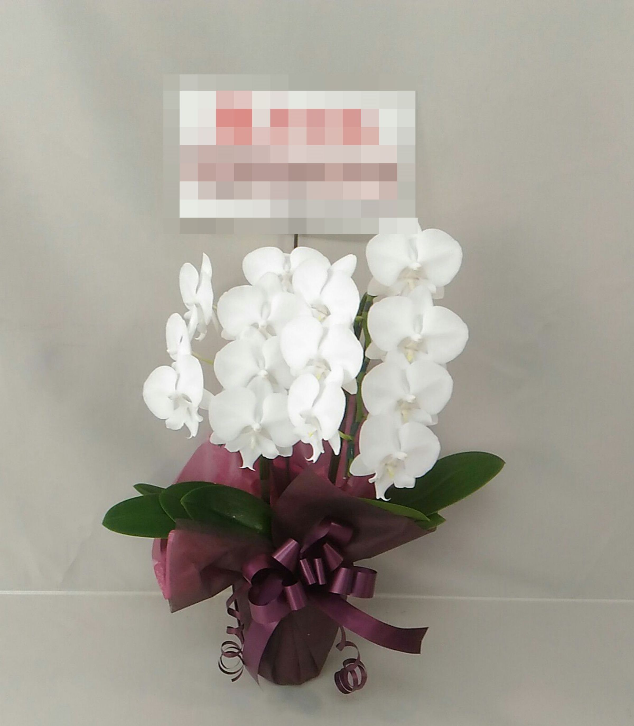 胡蝶蘭の実際にお届けした写真です。花秘書では発送前に写真をメールで送信致しますので安心して大切な顧客や取引様へのギフトにご利用頂けます。