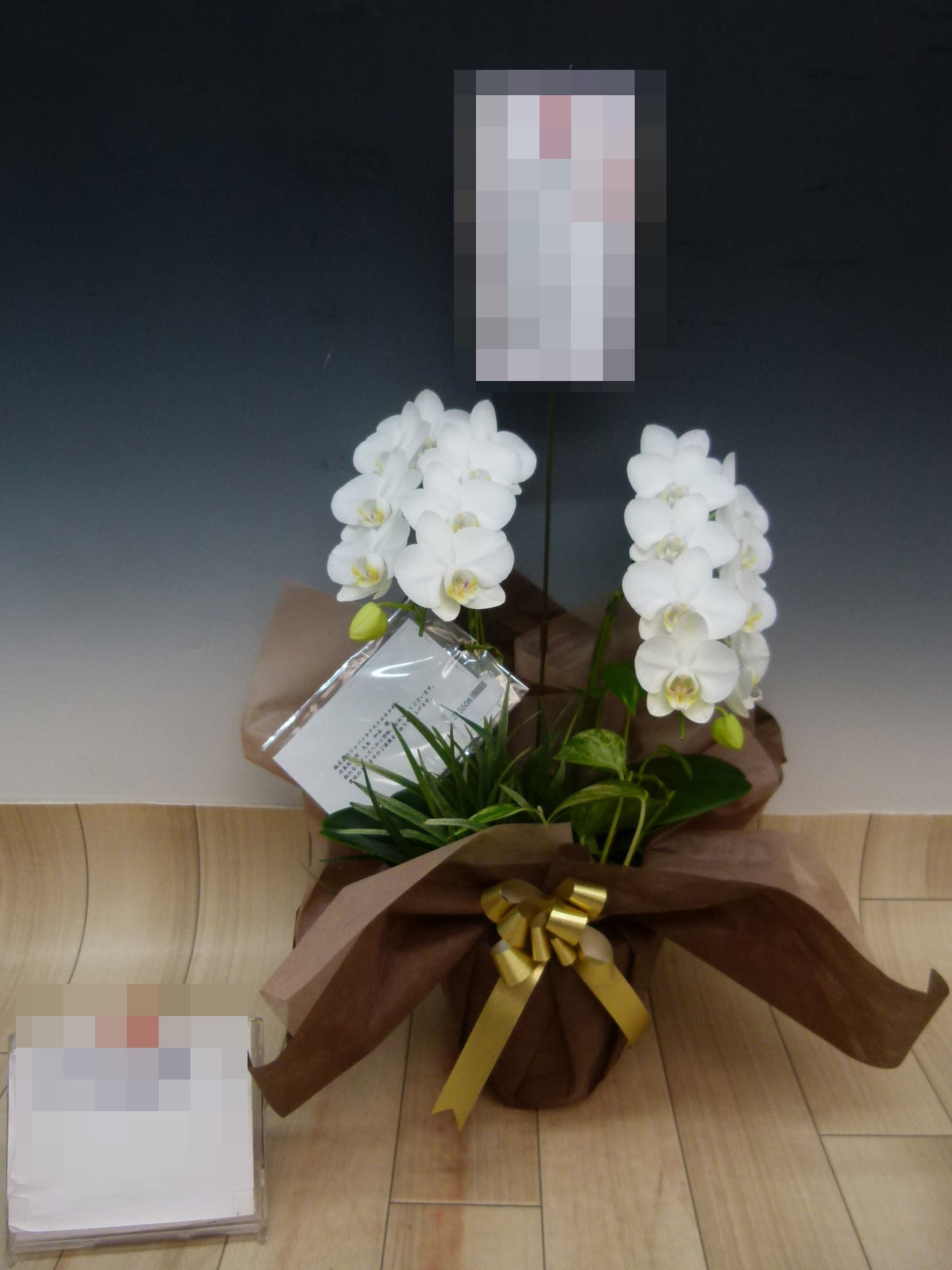 胡蝶蘭の実際にお届けした写真です。花秘書では発送前に写真をメールで送信致しますので安心して大切な顧客や取引様へのギフトにご利用頂けます。