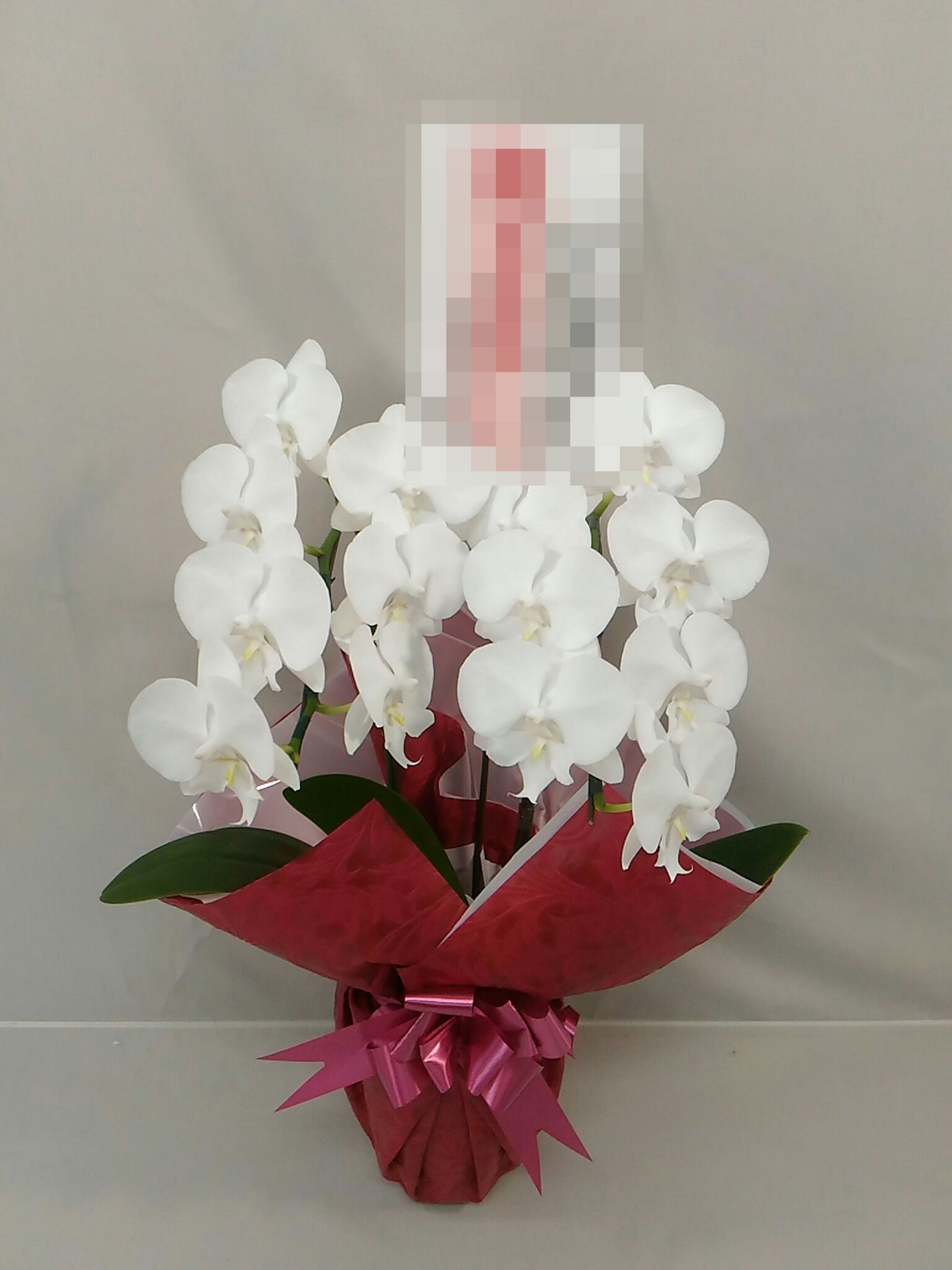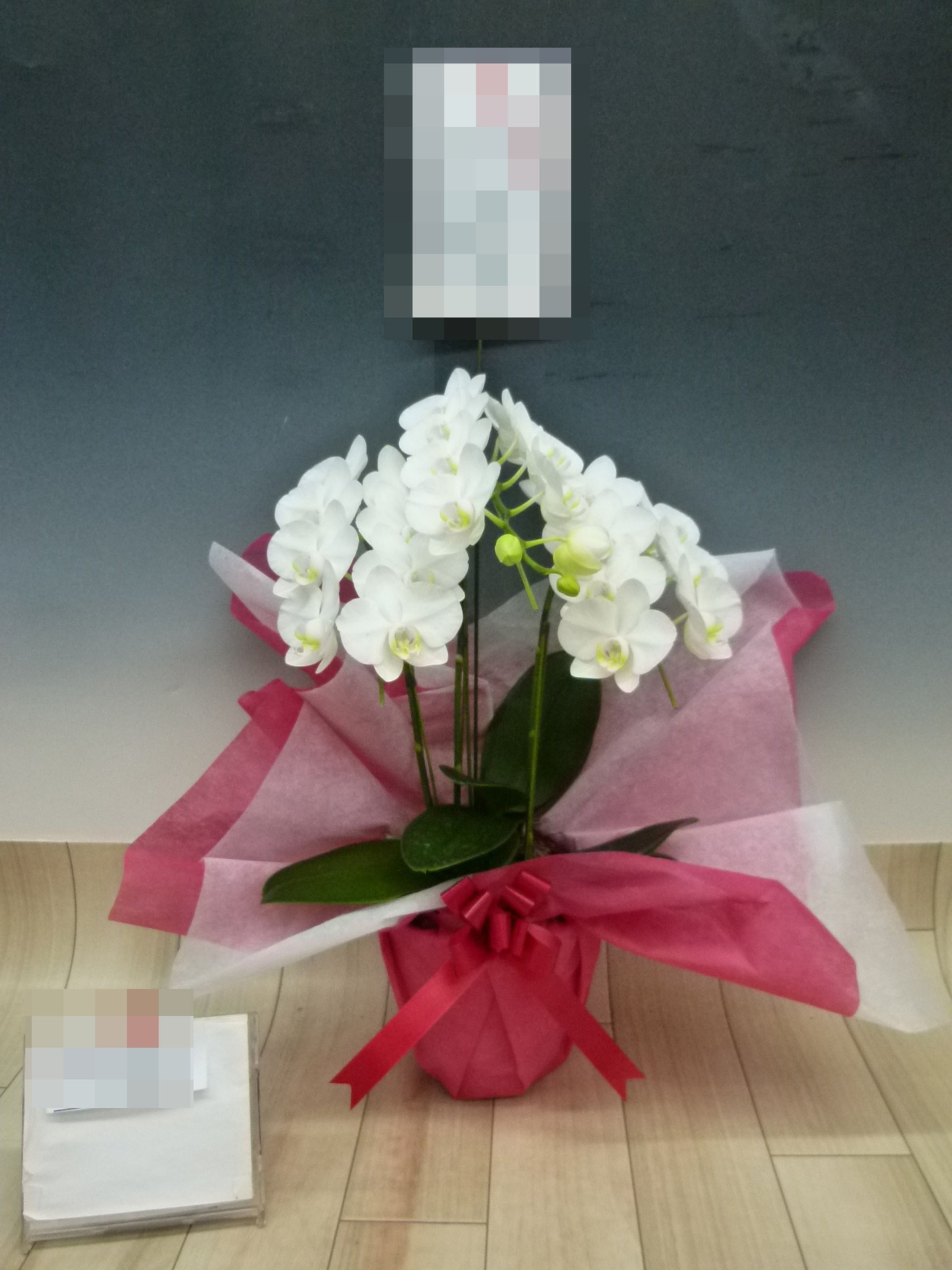 胡蝶蘭の実際にお届けした写真です。花秘書では発送前に写真をメールで送信致しますので安心して大切な顧客や取引様へのギフトにご利用頂けます。