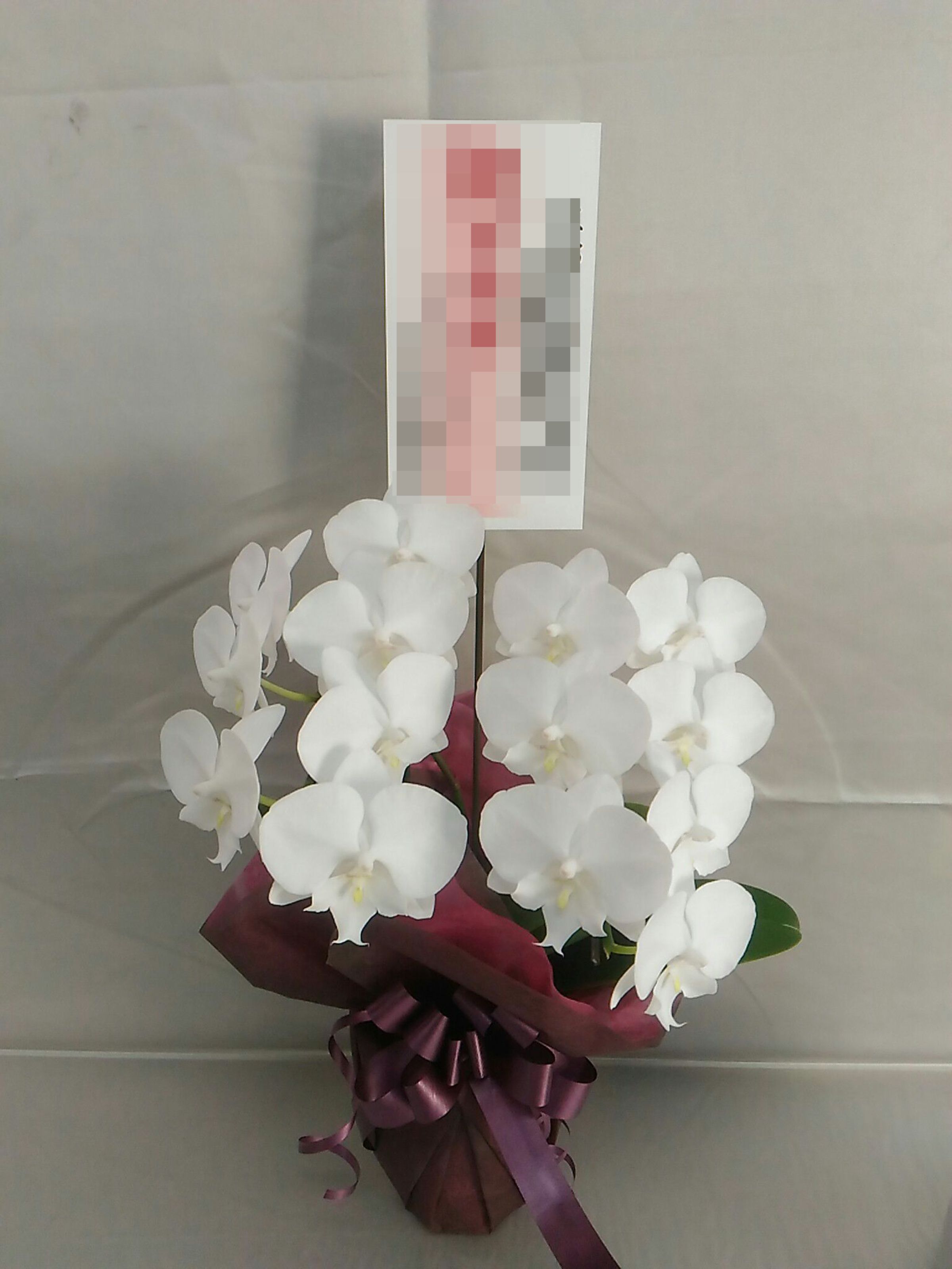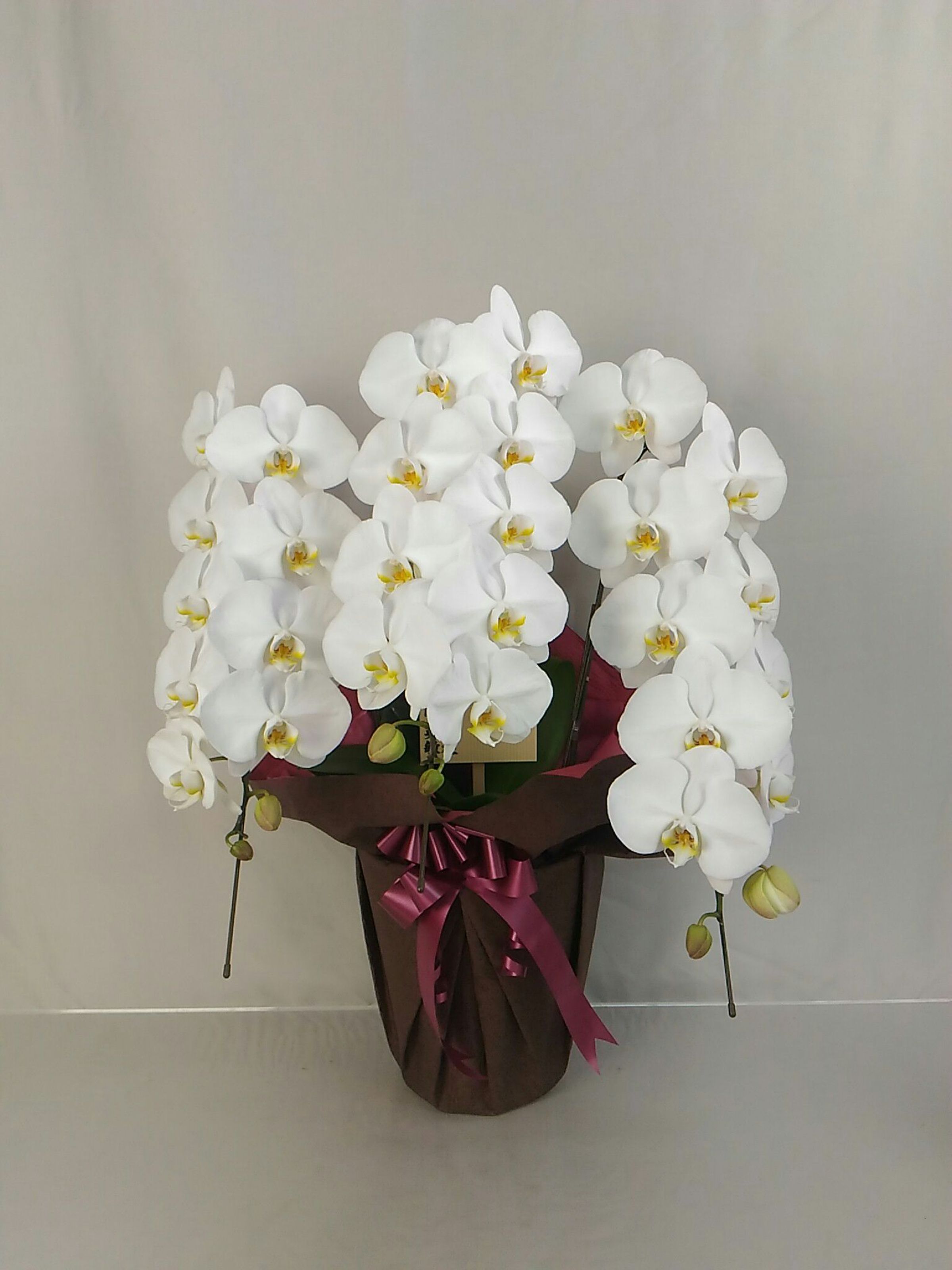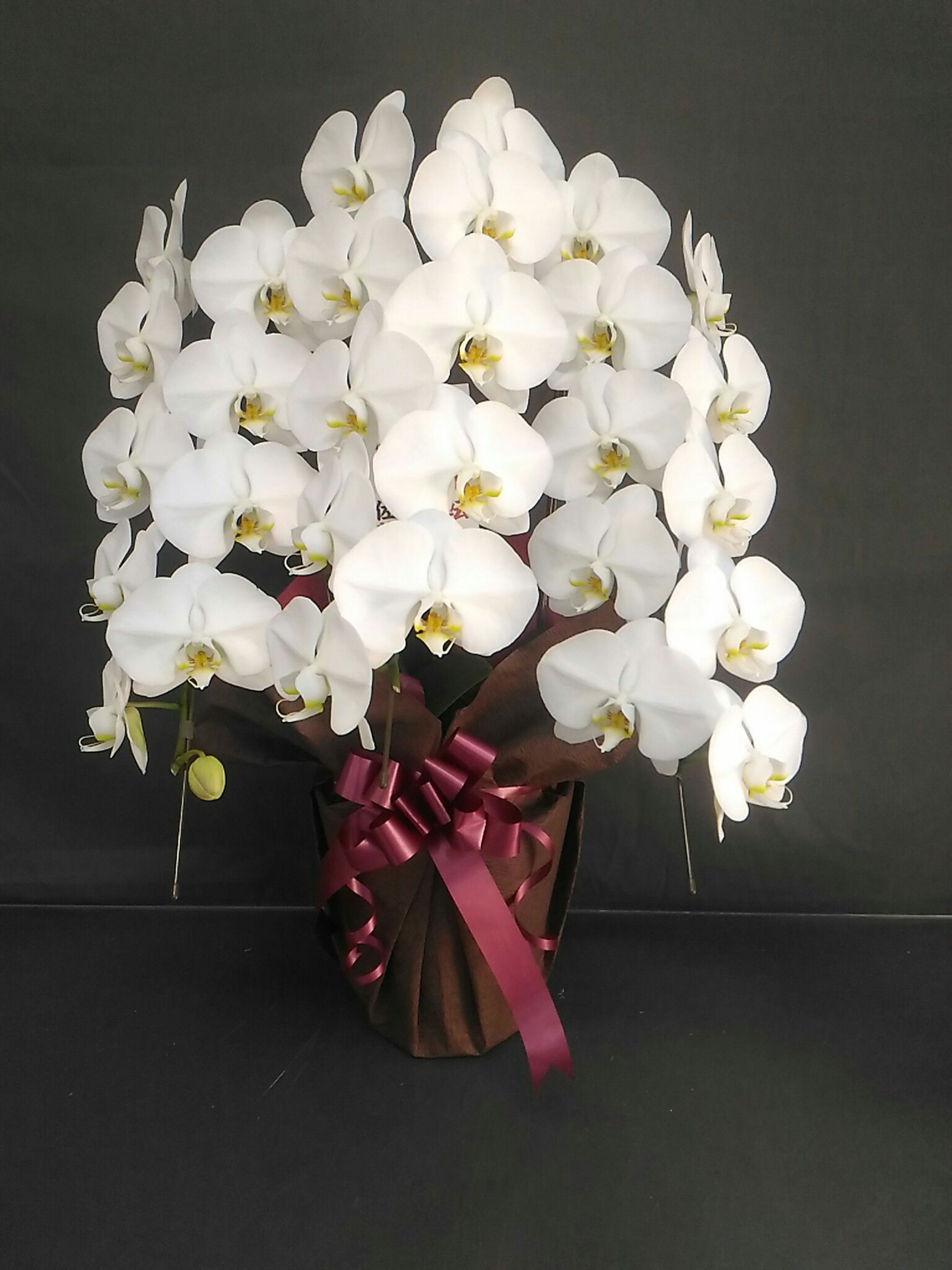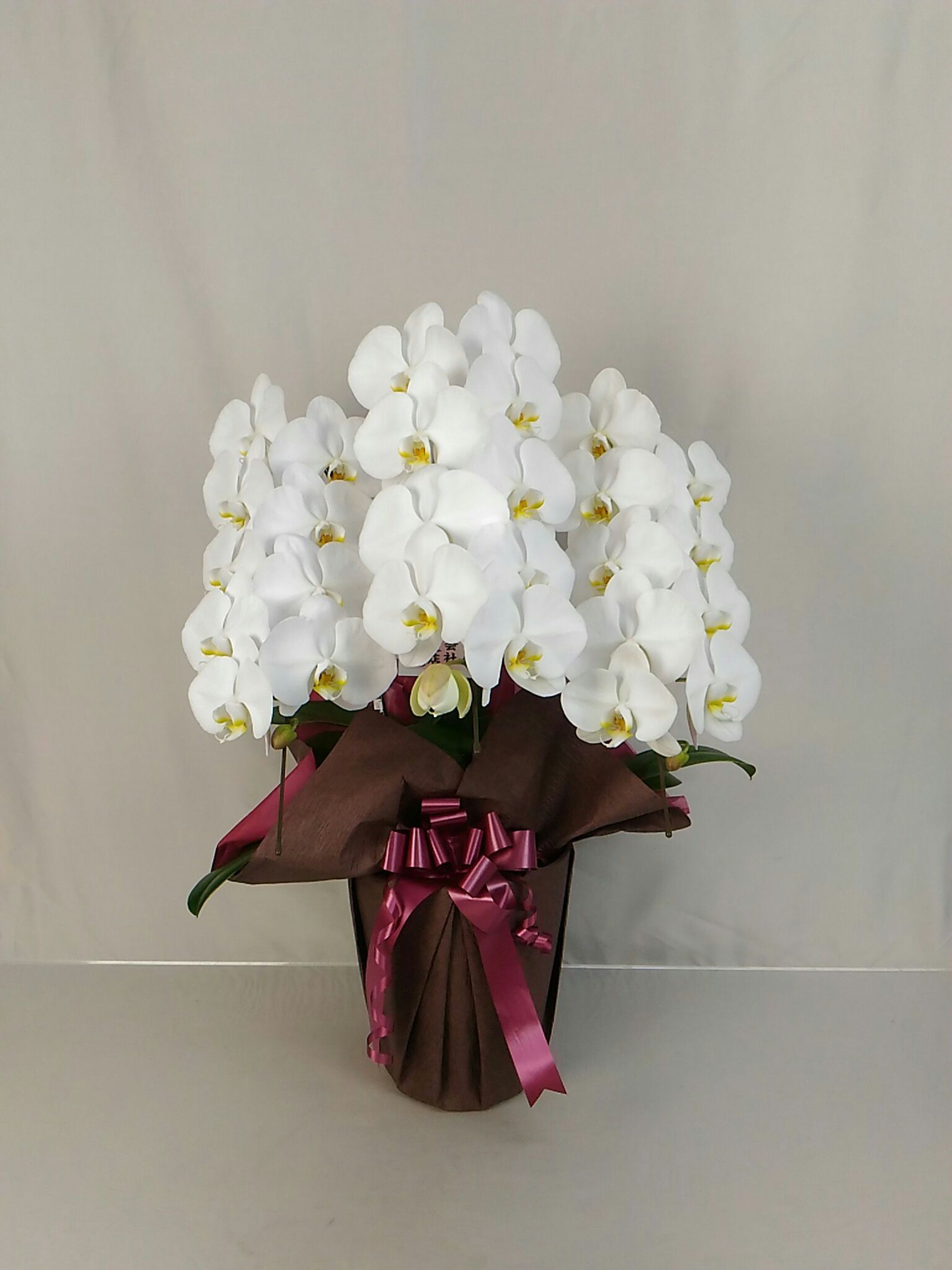 胡蝶蘭の実際にお届けした写真です。花秘書では発送前に写真をメールで送信致しますので安心して大切な顧客や取引様へのギフトにご利用頂けます。