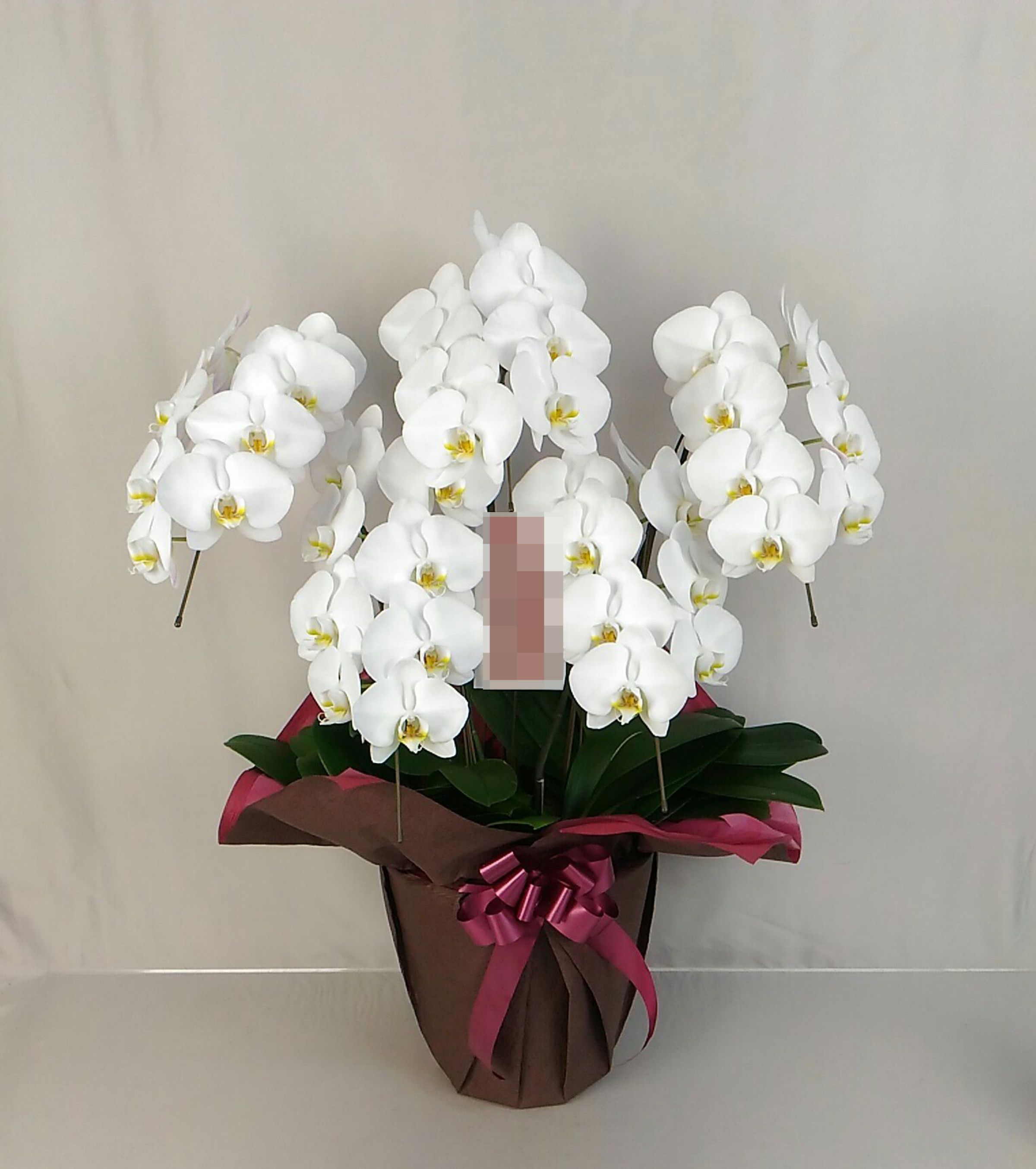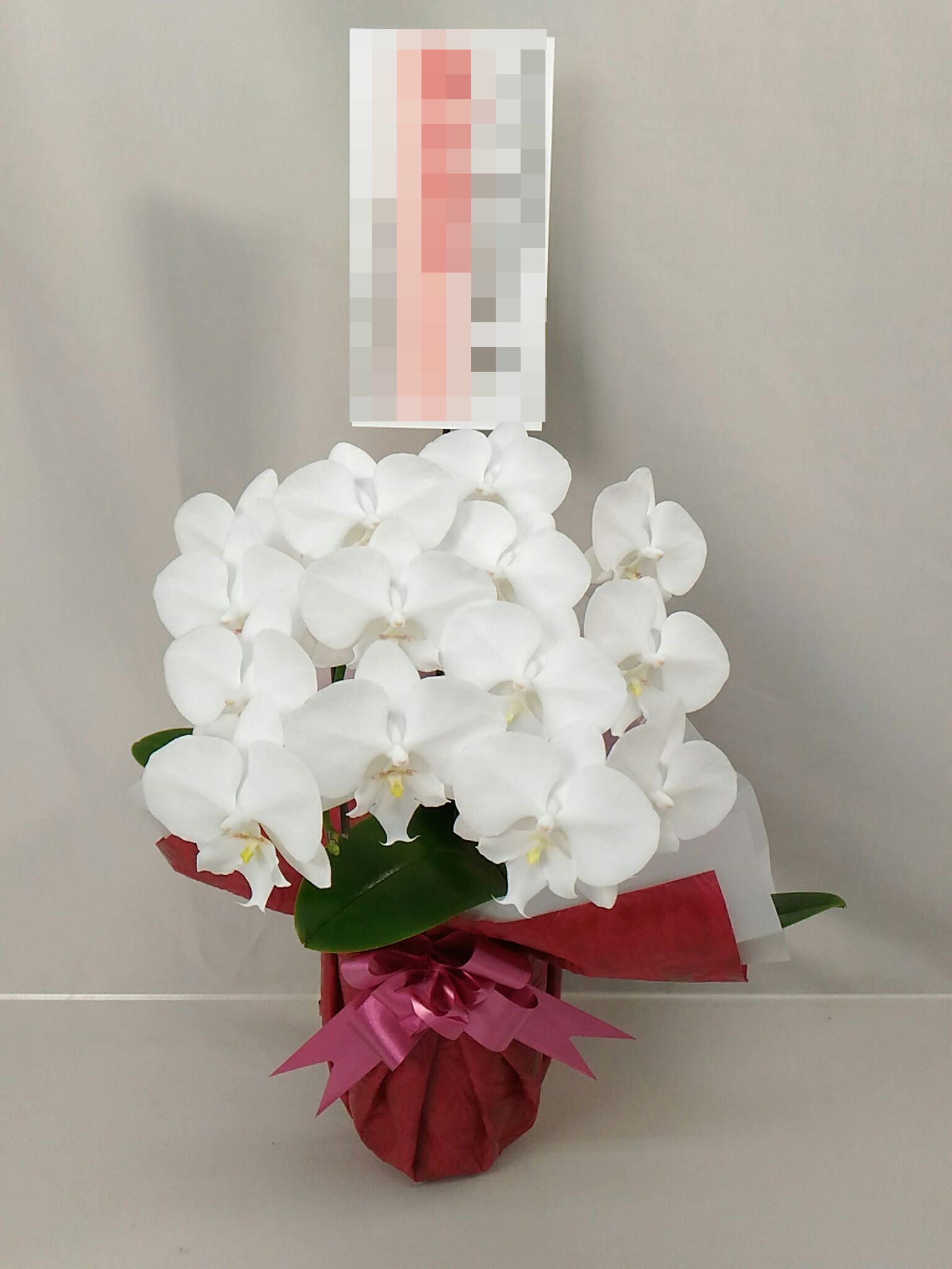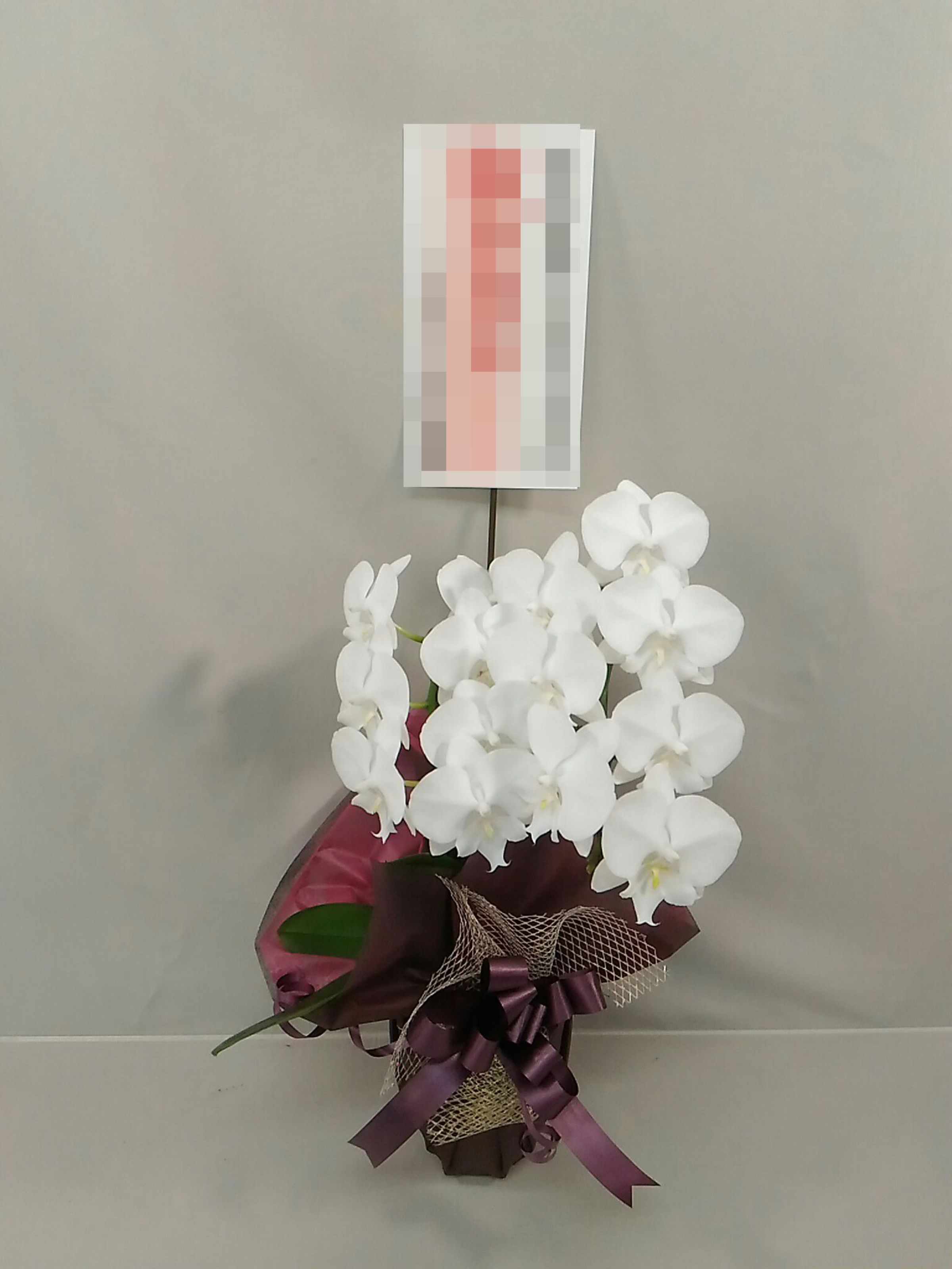 胡蝶蘭の実際にお届けした写真です。花秘書では発送前に写真をメールで送信致しますので安心して大切な顧客や取引様へのギフトにご利用頂けます。