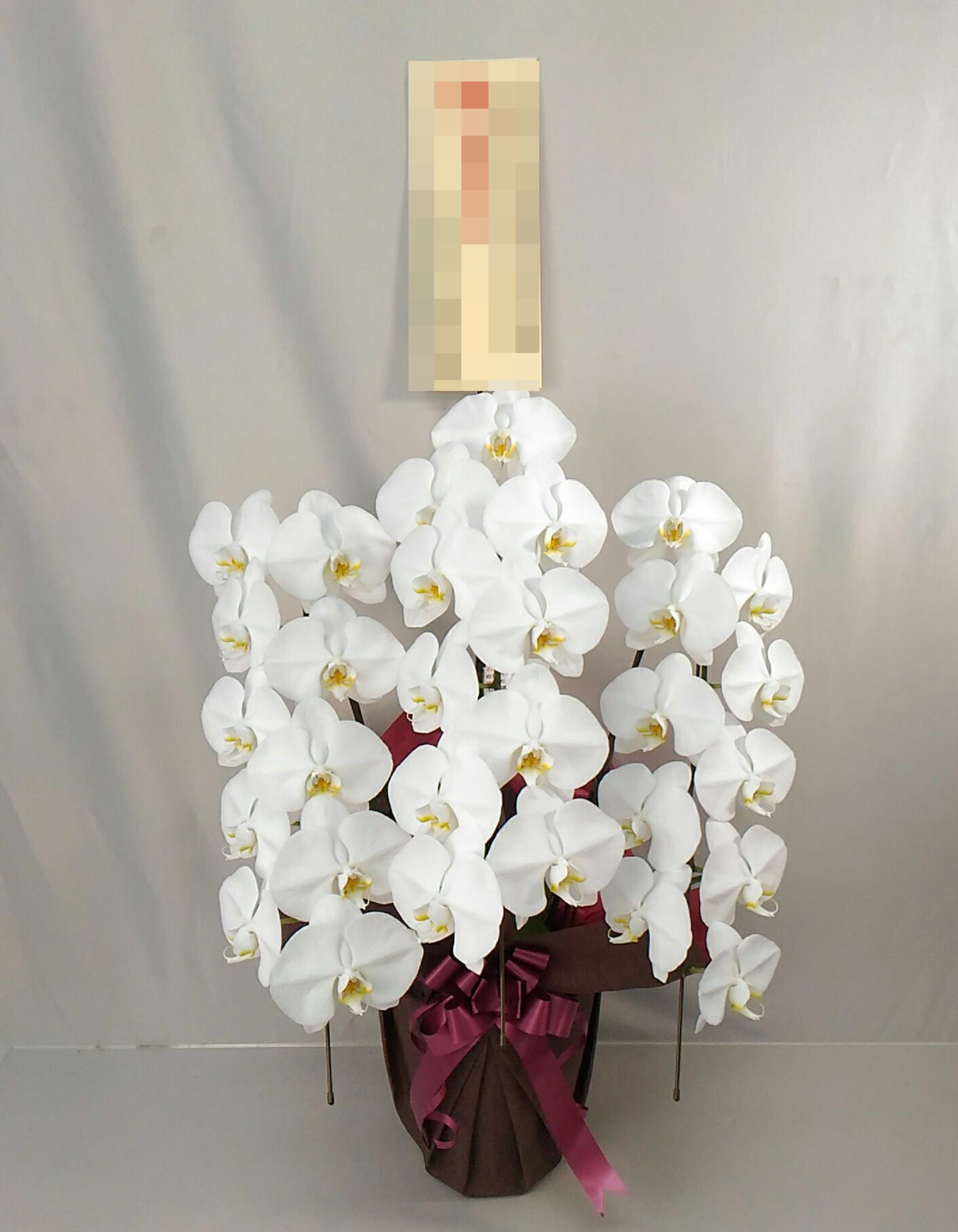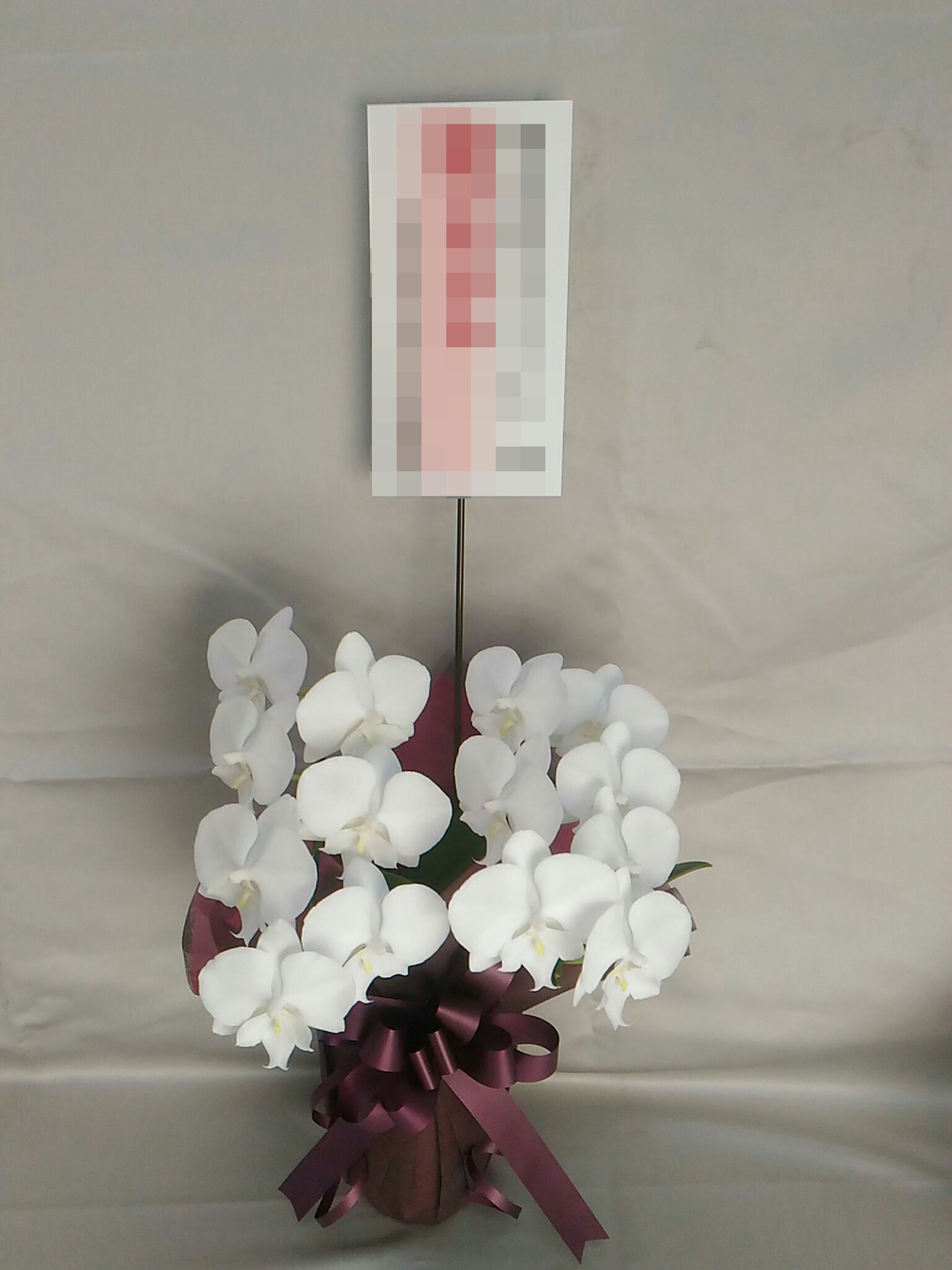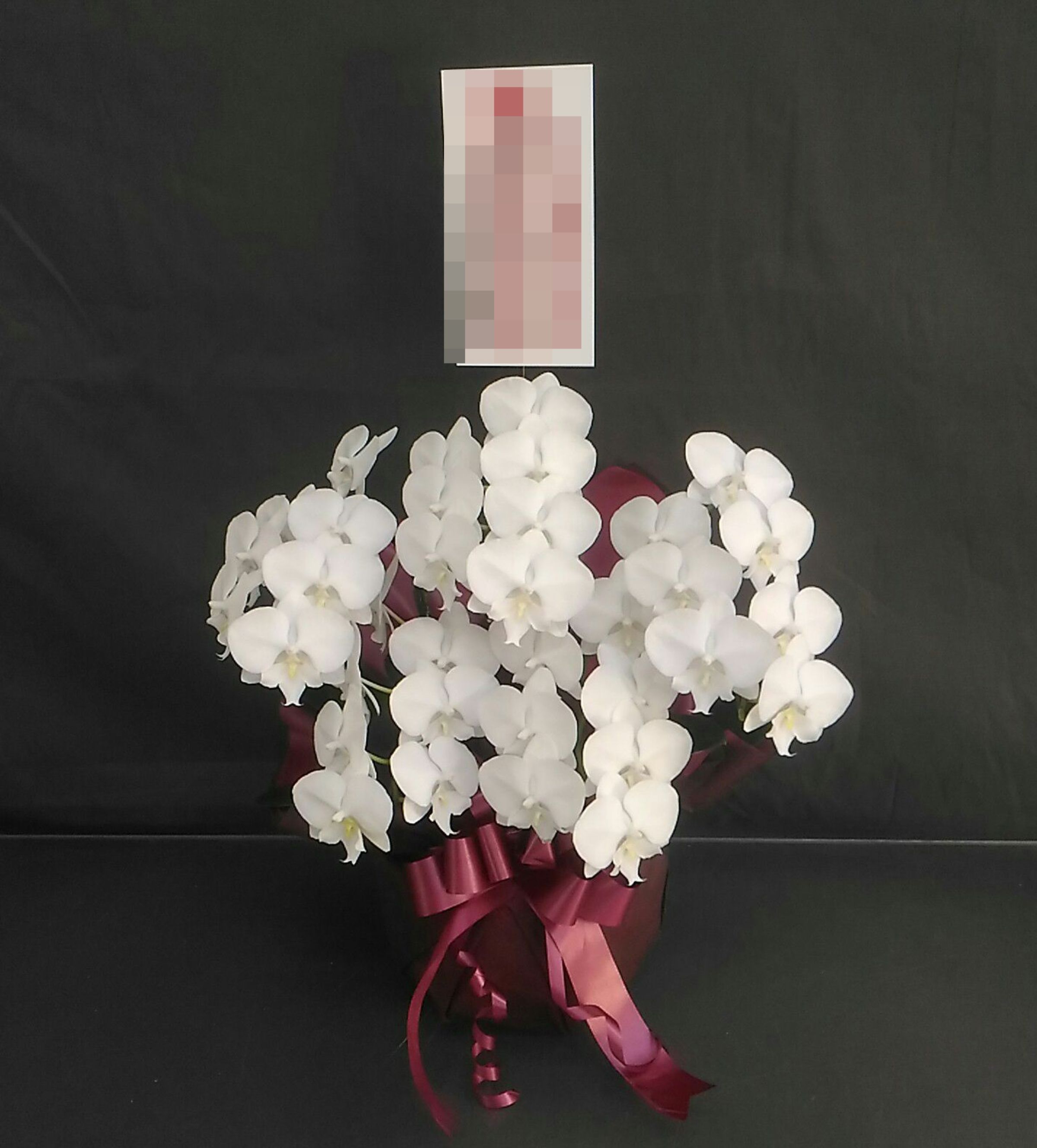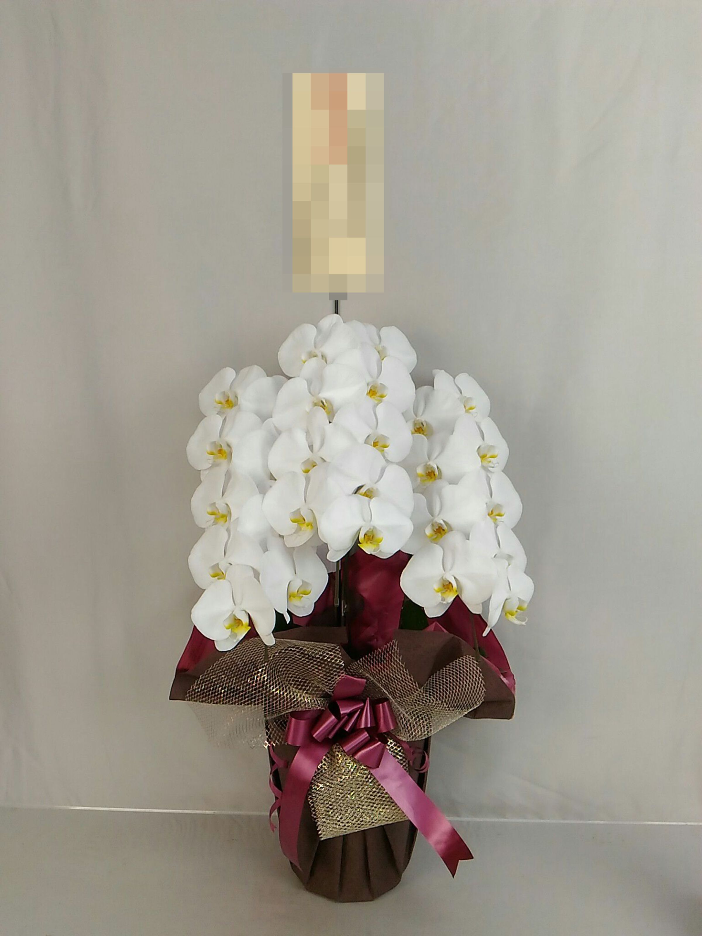 胡蝶蘭の実際にお届けした写真です。花秘書では発送前に写真をメールで送信致しますので安心して大切な顧客や取引様へのギフトにご利用頂けます。